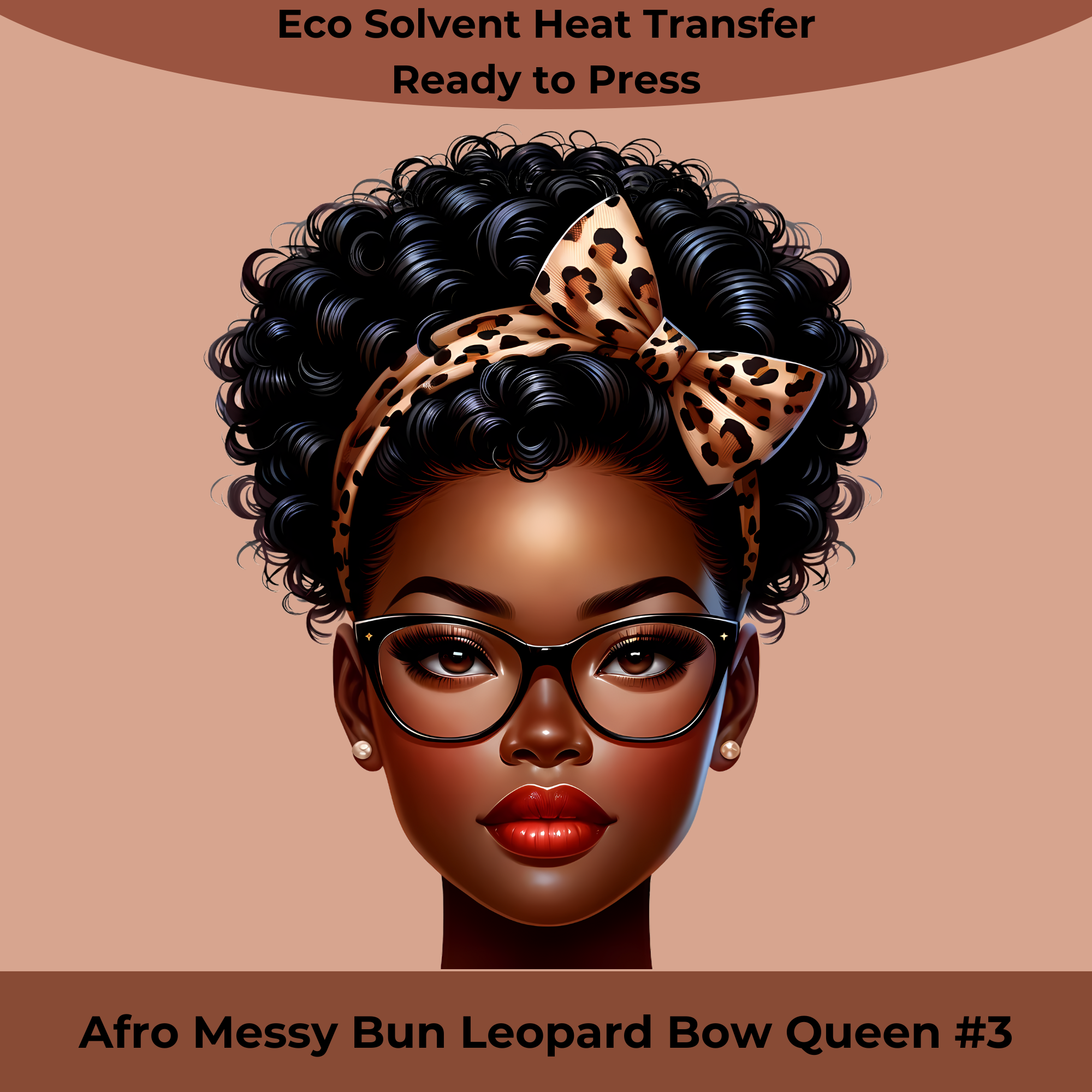 Afro Messy Bun Leopard Queen #3 Eco Solvent Heat Transfer for Apparel