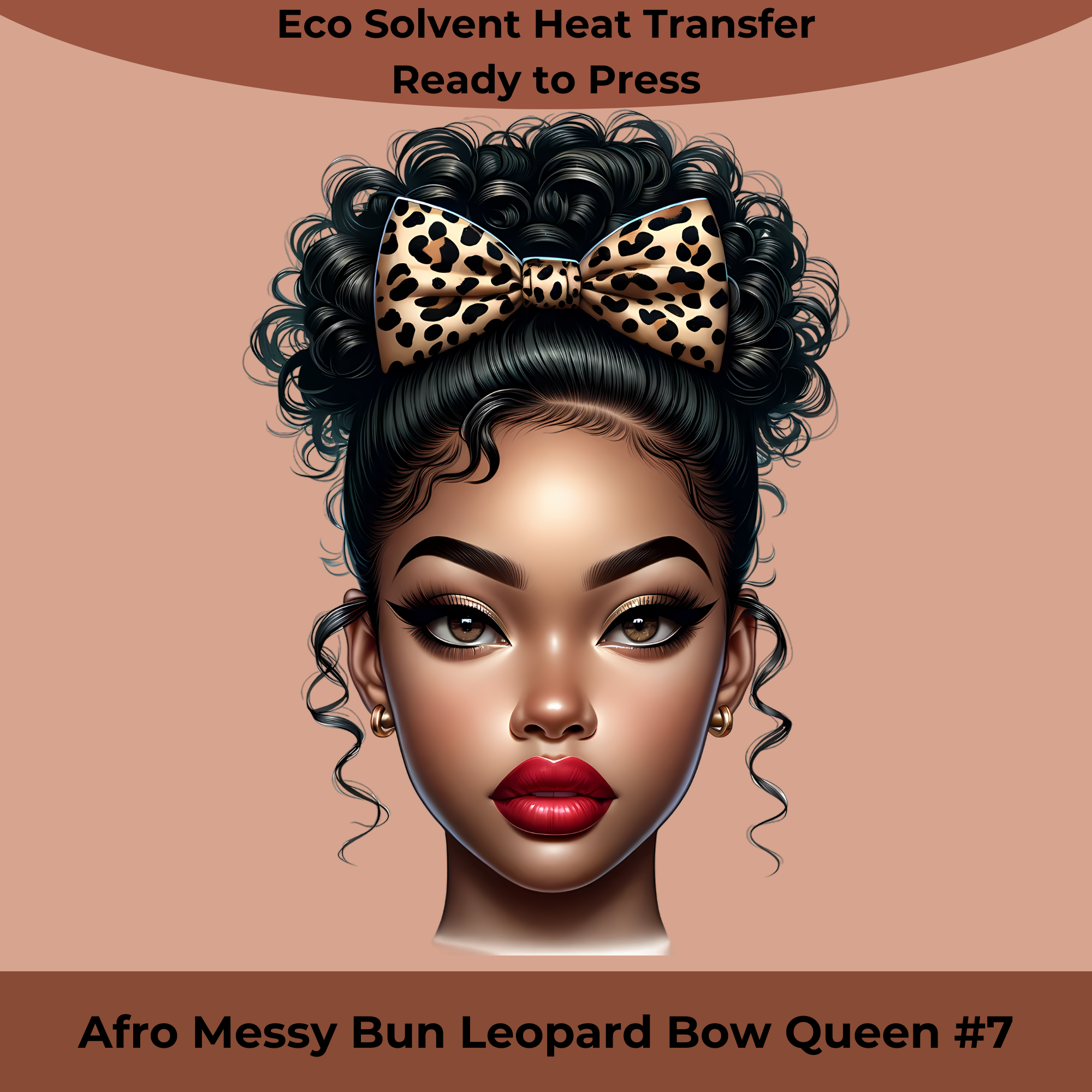 Afro Messy Bun Leopard Queen #7 Eco Solvent Heat Transfer for Apparel