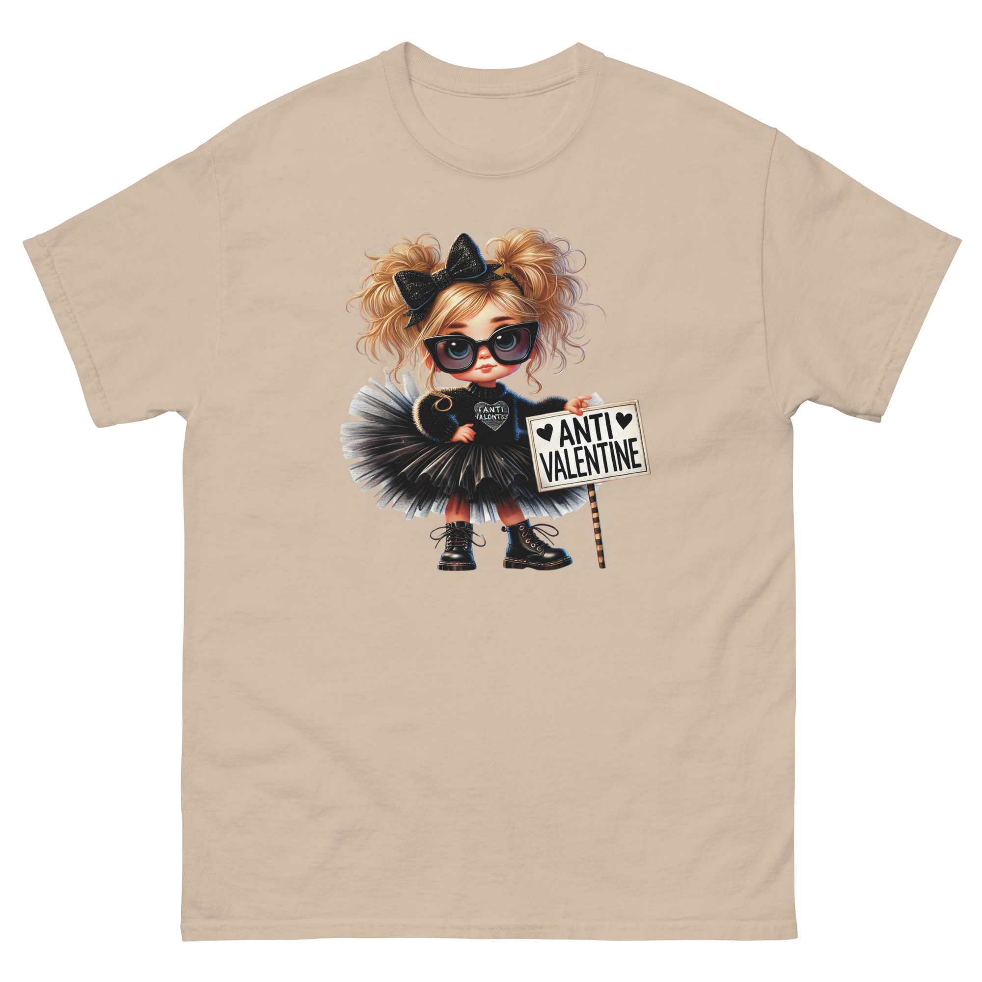 🖤 Celebrate boldness and break the rules with our Anti-Valentine T-Shirt! Featuring an adorable but fierce character in a black tulle skirt, oversized sunglasses, combat boots, and a playful “Anti-Valentine” sign, this tee is perfect for anyone who prefers edge over roses. Whether you’re feeling anti-cupid or just love a little rebellion, this graphic tee is all about owning your vibe! 😎✨