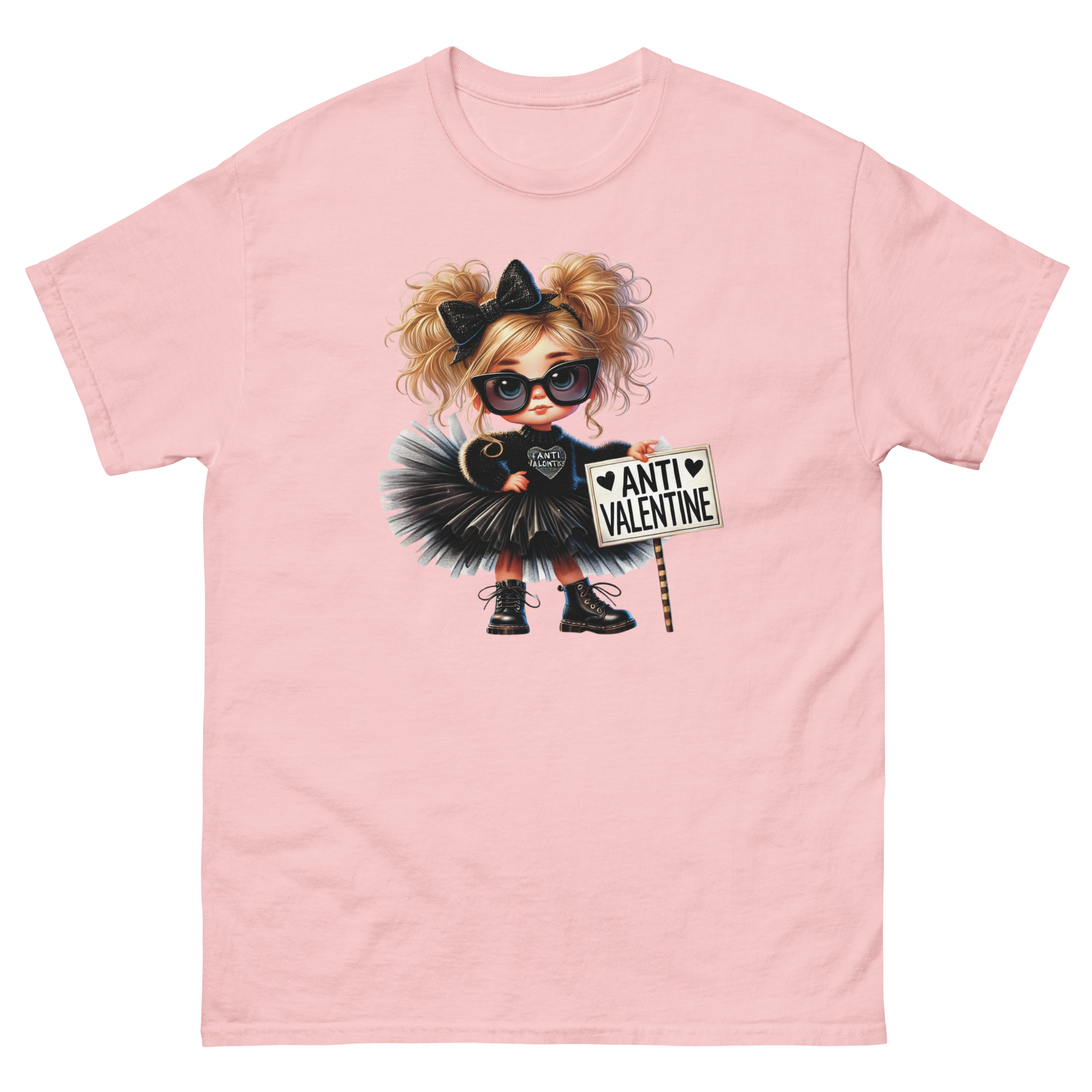 π€ Celebrate boldness and break the rules with our Anti-Valentine T-Shirt! Featuring an adorable but fierce character in a black tulle skirt, oversized sunglasses, combat boots, and a playful βAnti-Valentineβ sign, this tee is perfect for anyone who prefers edge over roses. Whether youβre feeling anti-cupid or just love a little rebellion, this graphic tee is all about owning your vibe! πβ¨