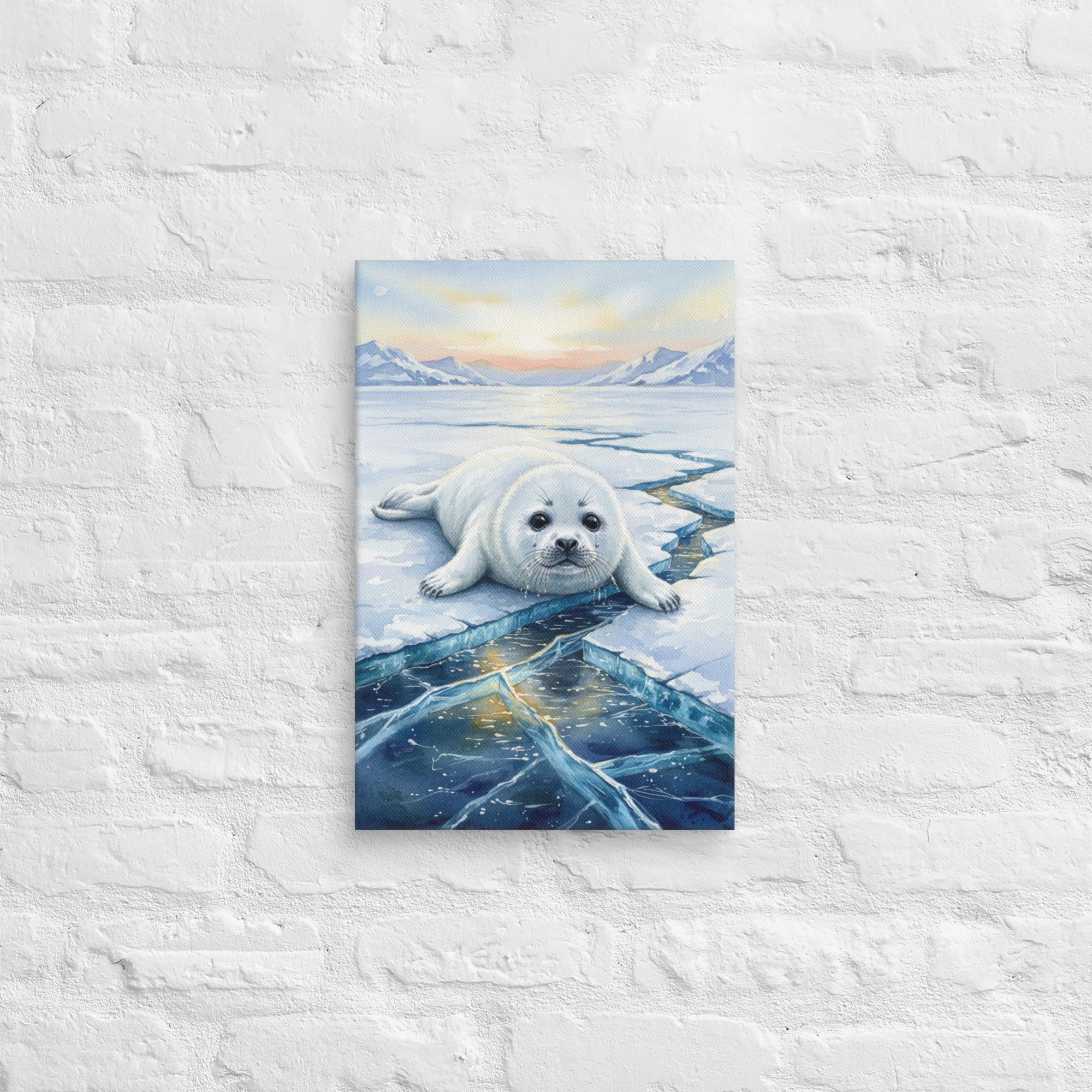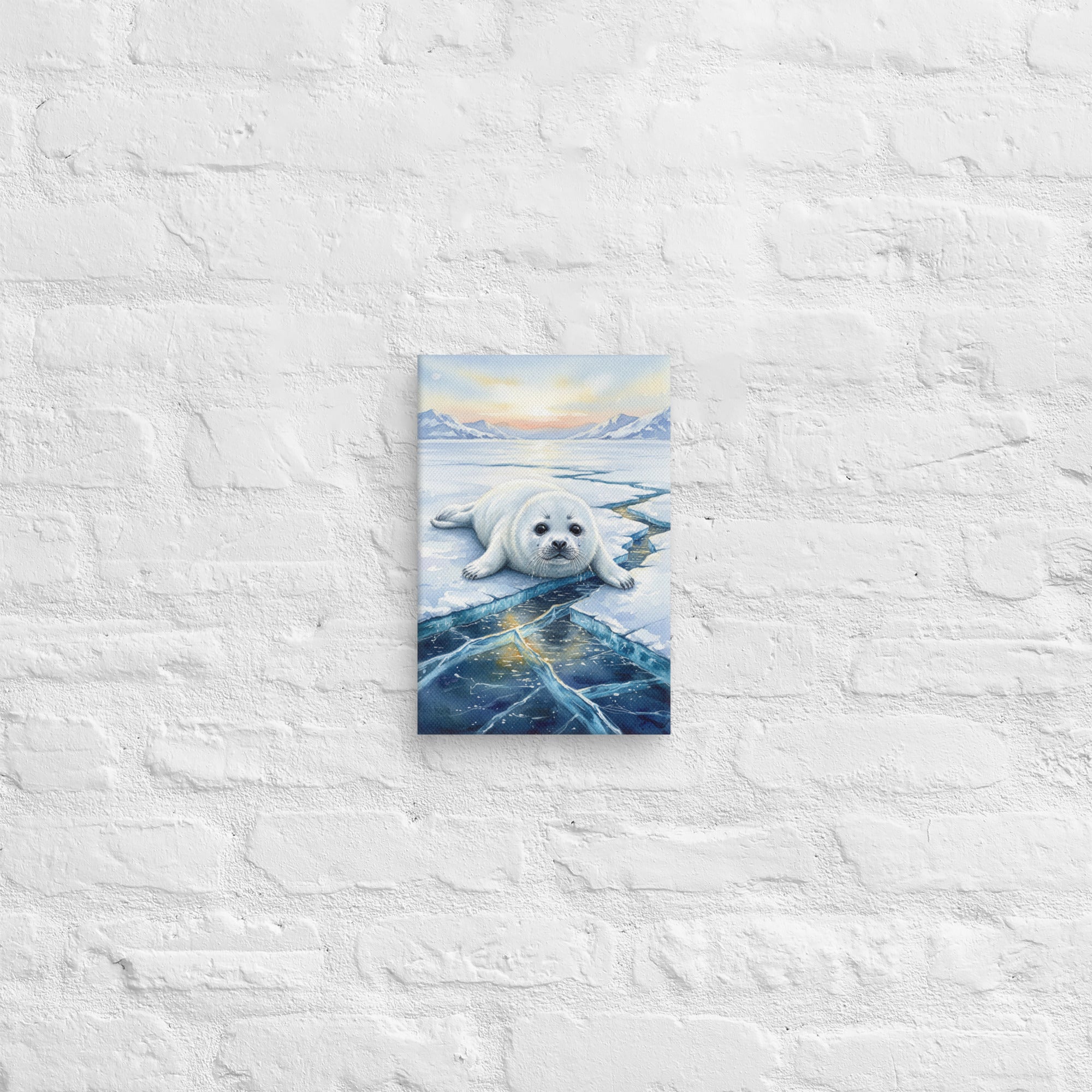 Baby Seal on a Cracked Frozen River - Exclusive Canvas Wall Art