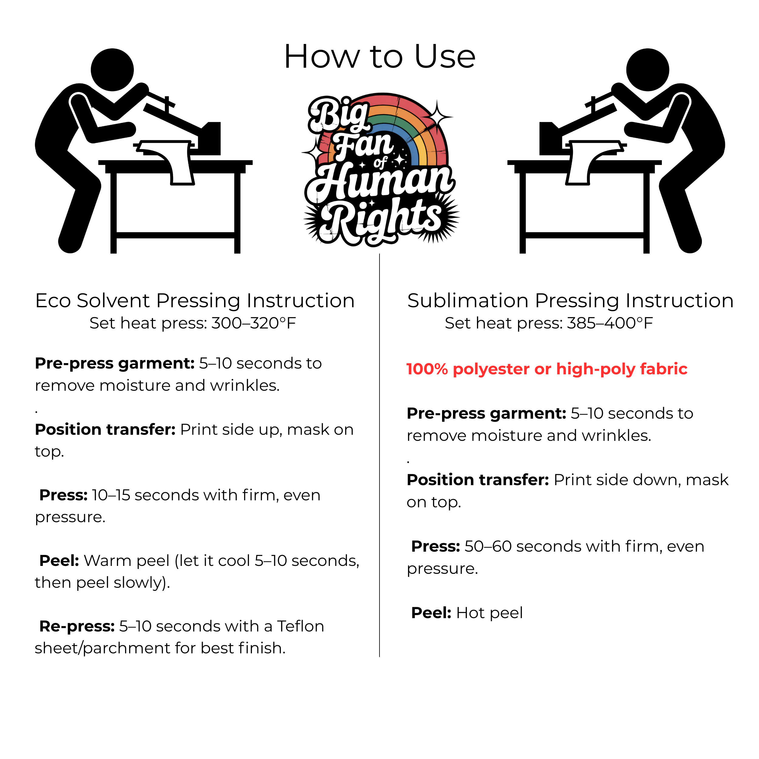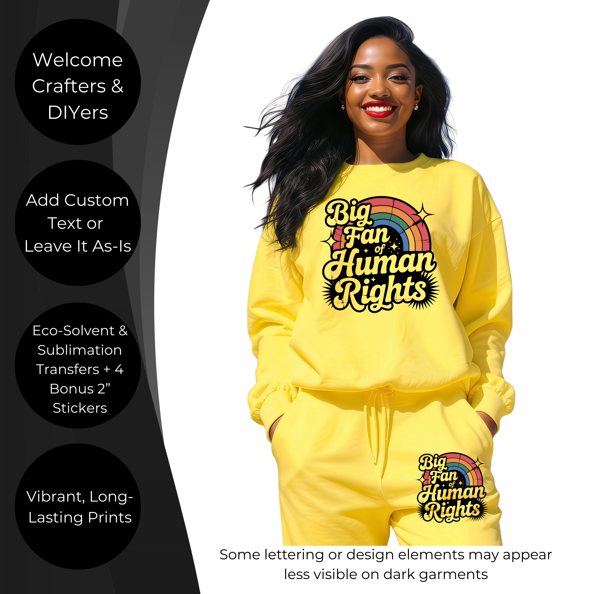 Big Fan of Human Rights 6-Pack Ready-to-Press DIY Bundle – 3 Eco-Solvent + 3 Sublimation Iron-on Heat Transfers with 4 Bonus 2-Inch Stickers