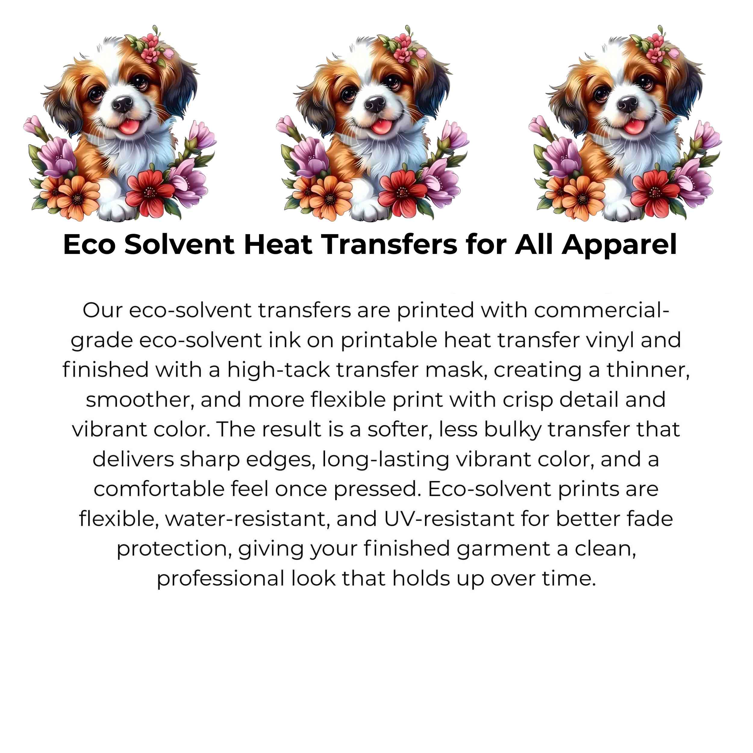 Blossom Pup Joy Heat Transfers 3-Pack, Ready to Press, Vibrant Long-Lasting Prints (Iron-On Transfers Only)
