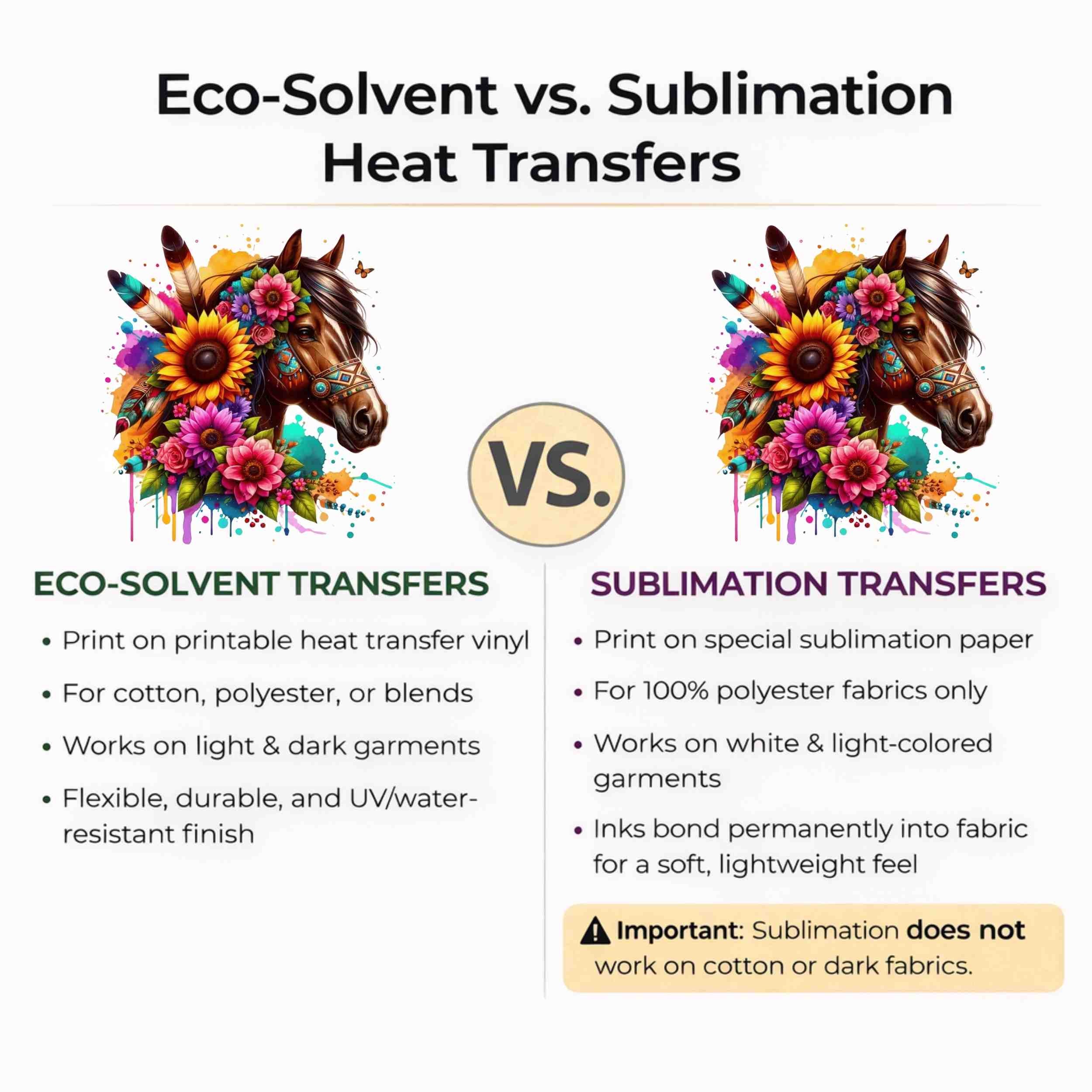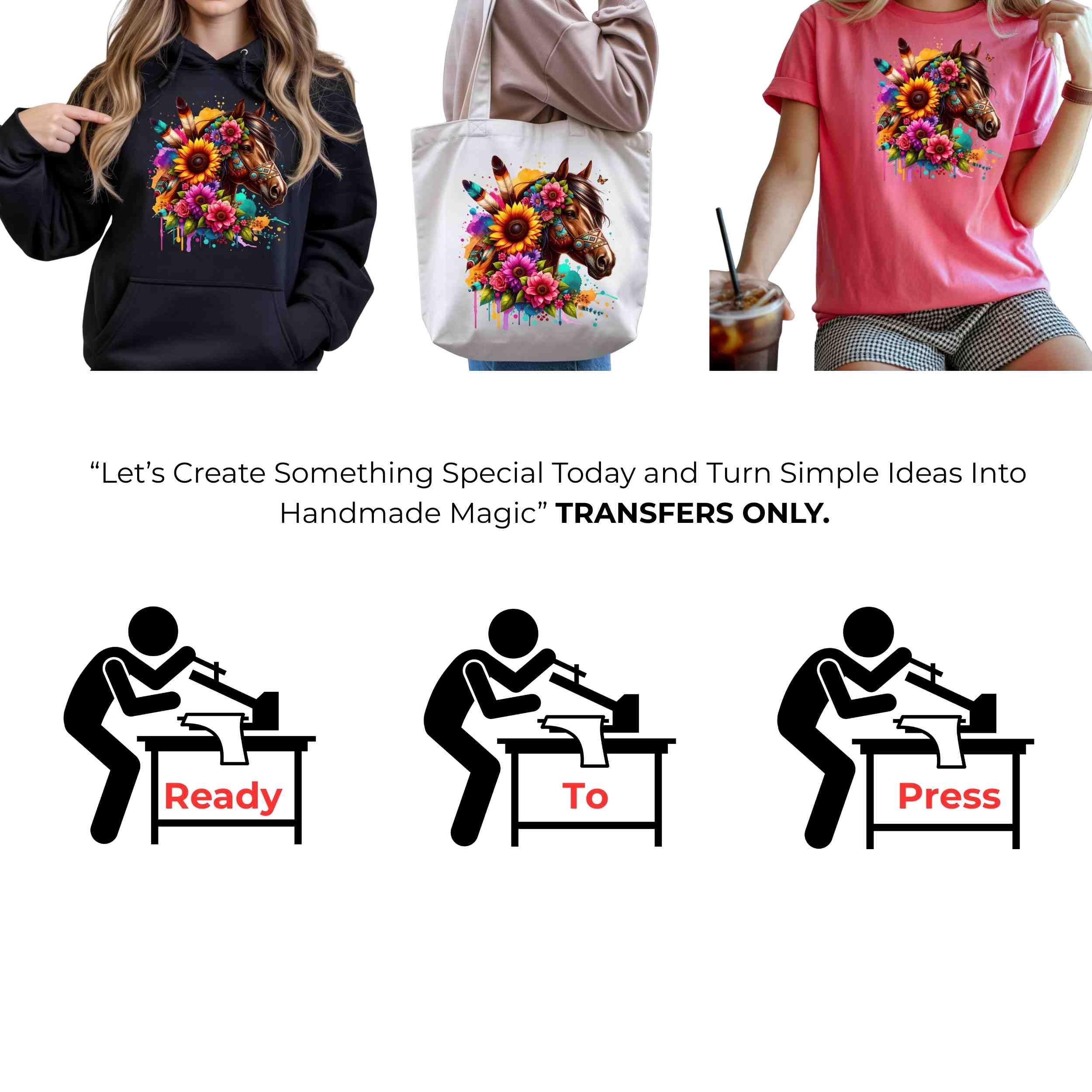 Boho Sunflower Spirit Horse 6-Pack Bundle – 3 Eco-Solvent + 3 Sublimation Iron on Transfers - Ready to Press (Iron on Transfers Only)