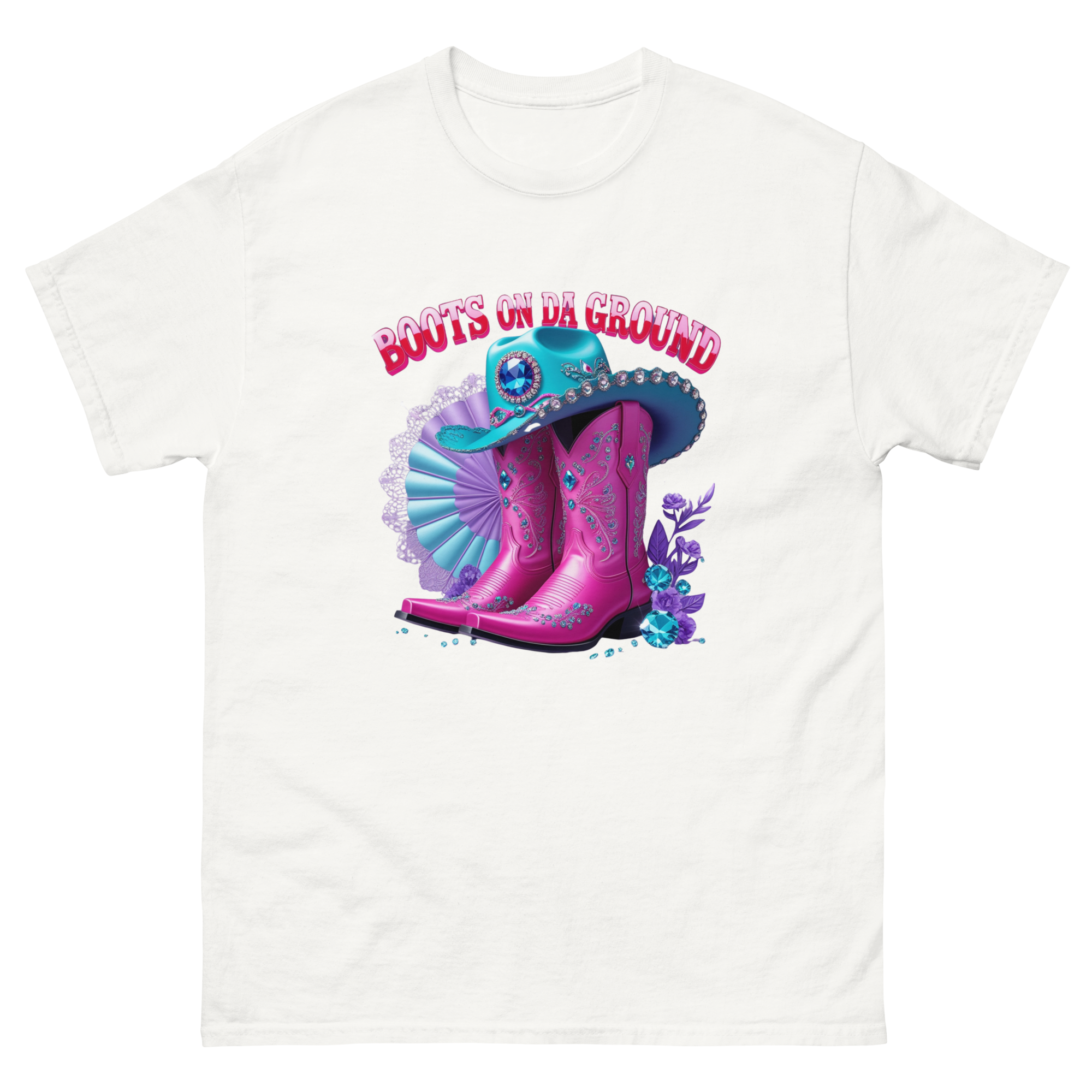 Saddle up in unapologetic pink and rhinestone shine—this Hot Pink Boots on Da Ground tee is built for the bold, the glam, and the girls who never go unnoticed. Designed to pop with color and attitude, it's perfect for slaying the rodeo, brunch with the crew, or just feelin’ yourself any day of the week.