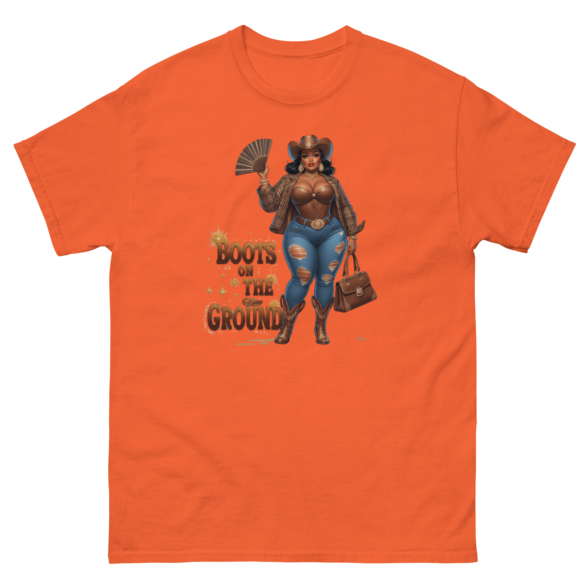 Turn heads and own your style with our “Boots on the Ground” Curvy Cowgirl #2 T-Shirt—where country meets confidence in every stitch. This design isn't just bold—it's unapologetically fierce, crafted for those who like their looks loud, proud, and packed with personality.