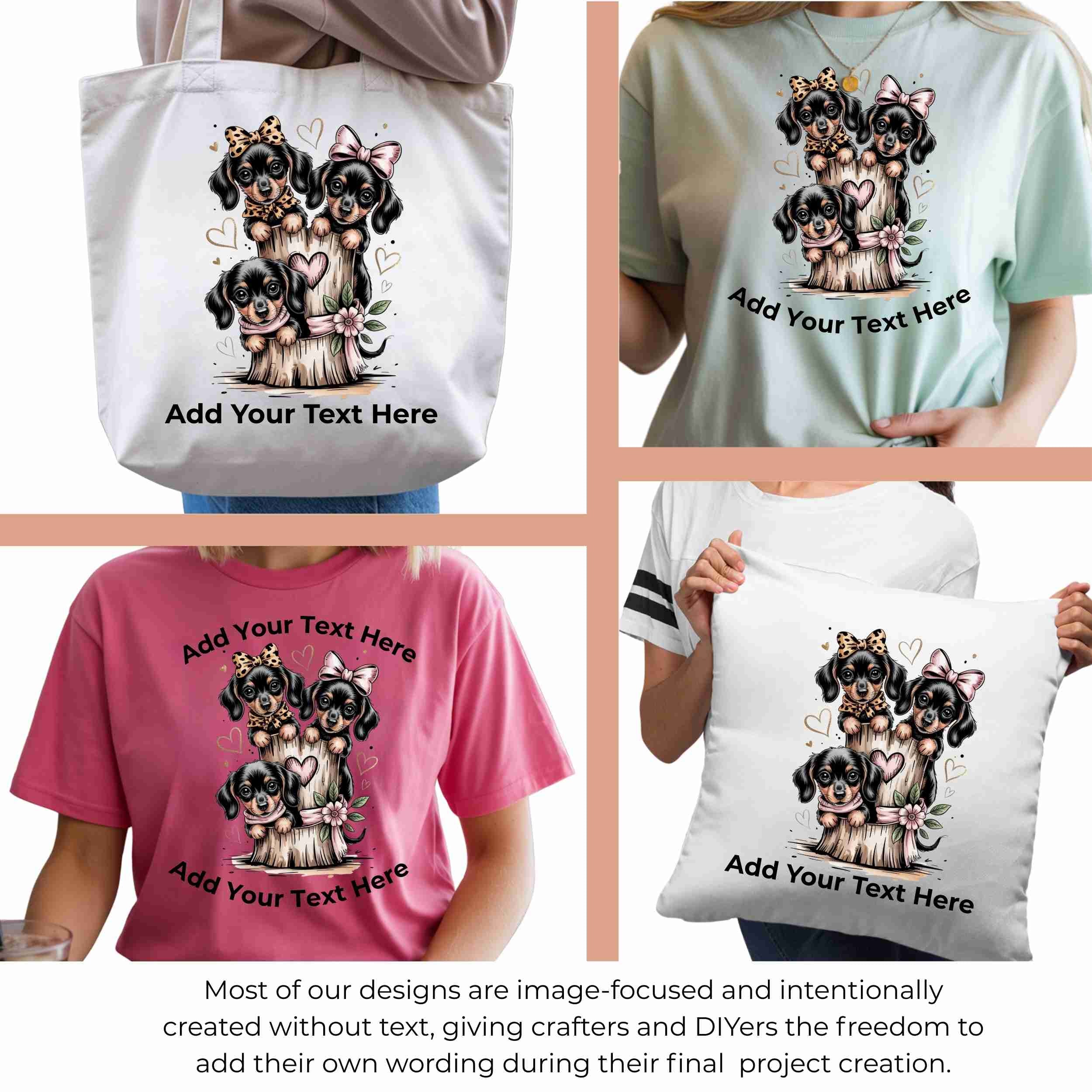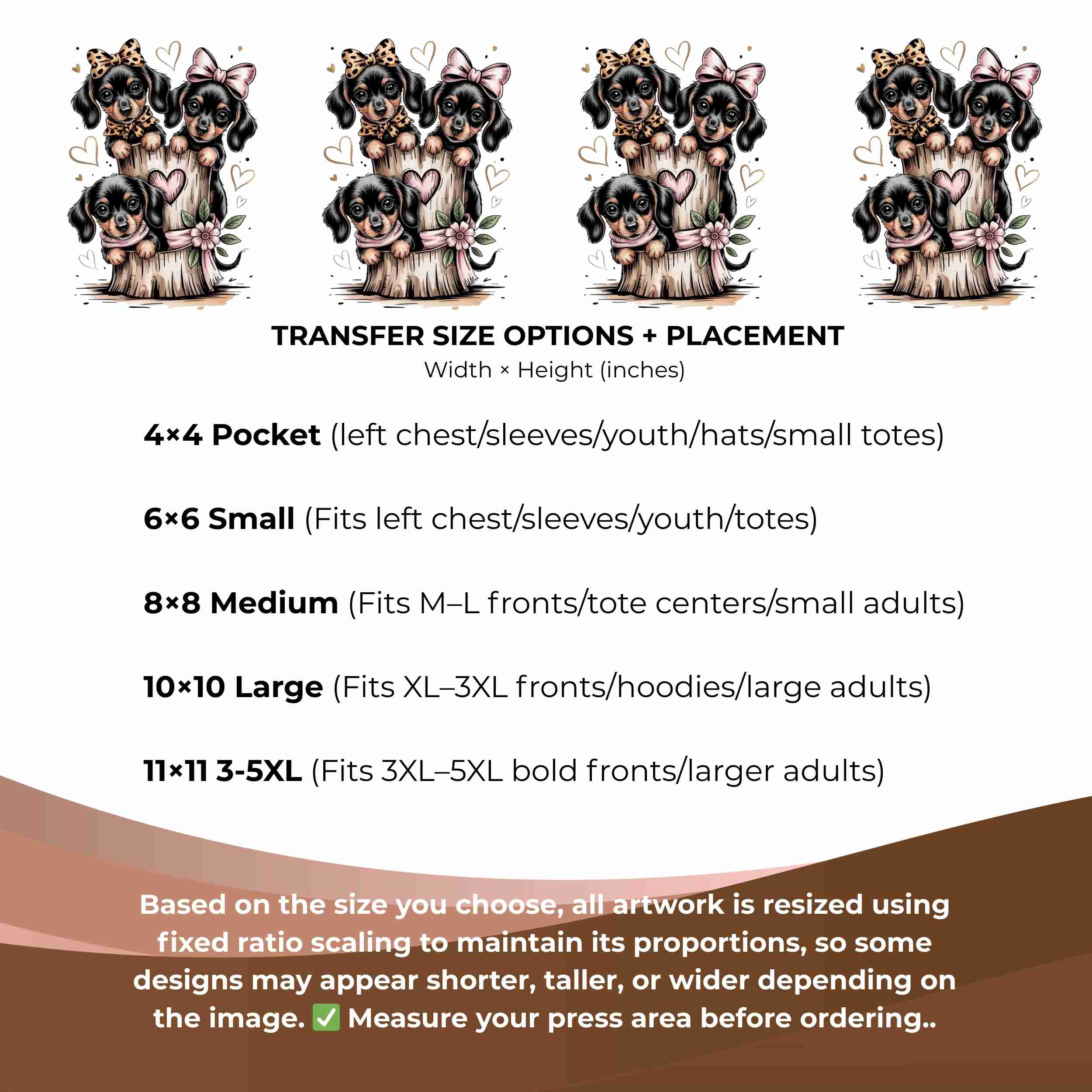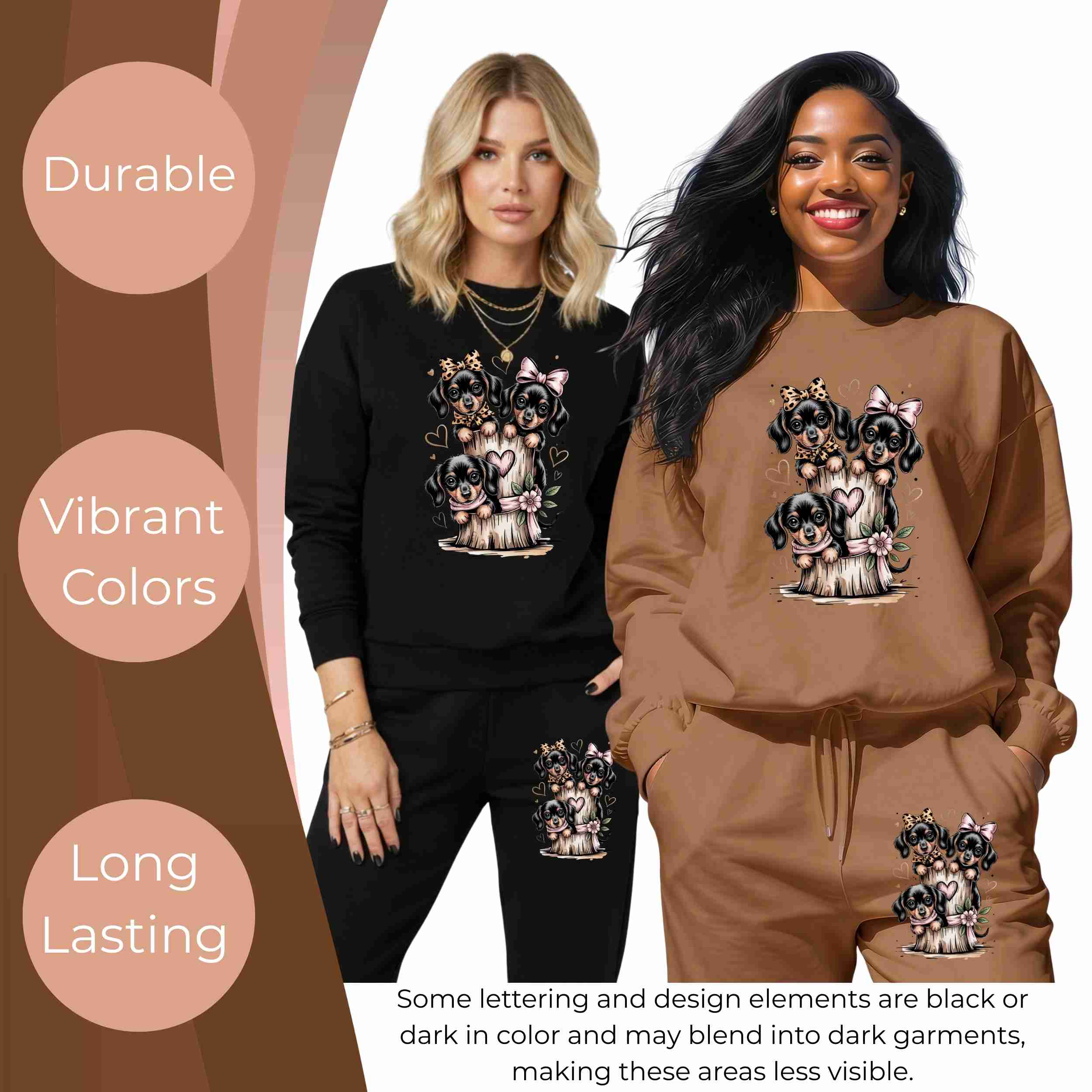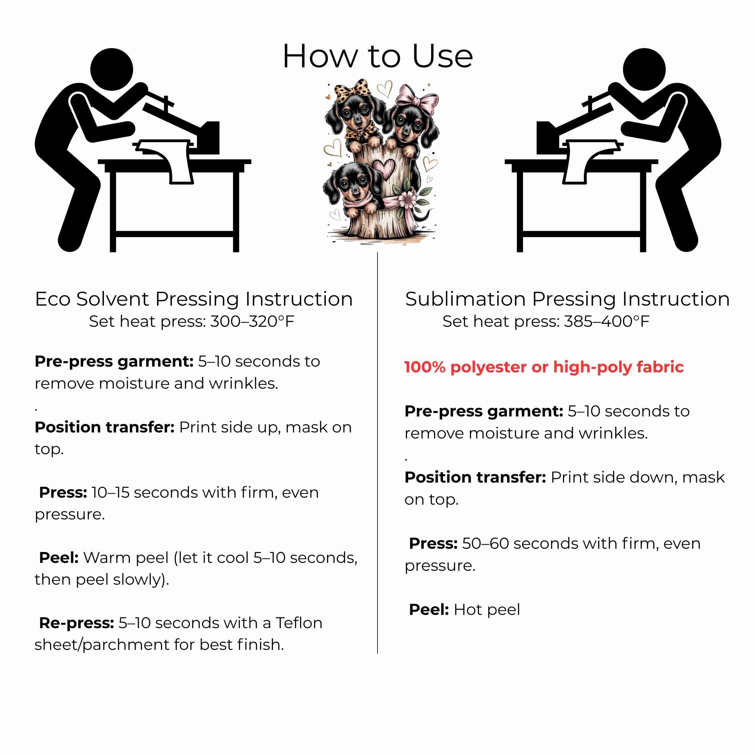 Bow-Tied Puppy Trio 6-Pack DIY Bundle – 3 Eco-Solvent Iron-On Heat Transfers + 3 Sublimation Iron-On Heat Transfers, Ready to Press. Bonus: 4 Matching 2-Inch Stickers