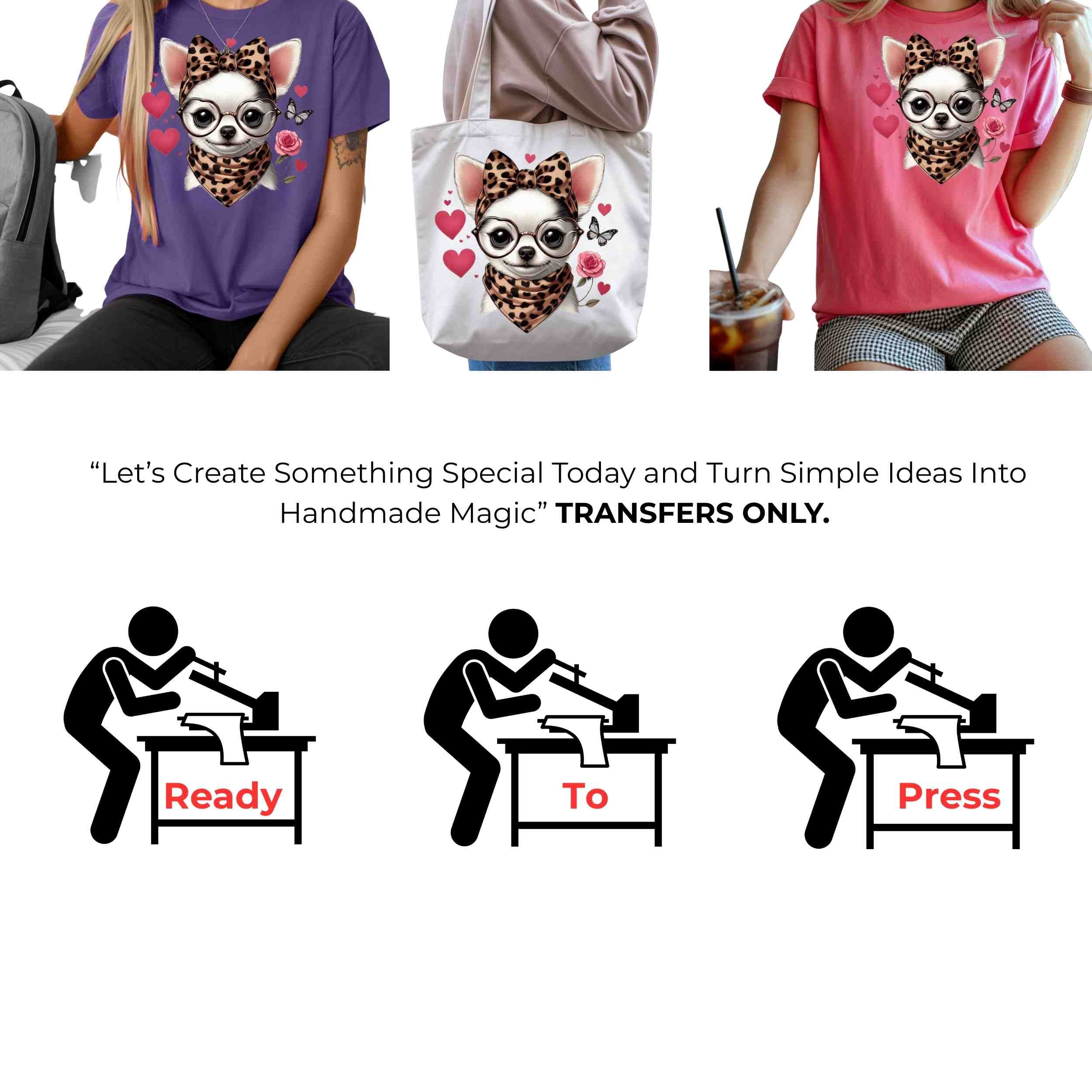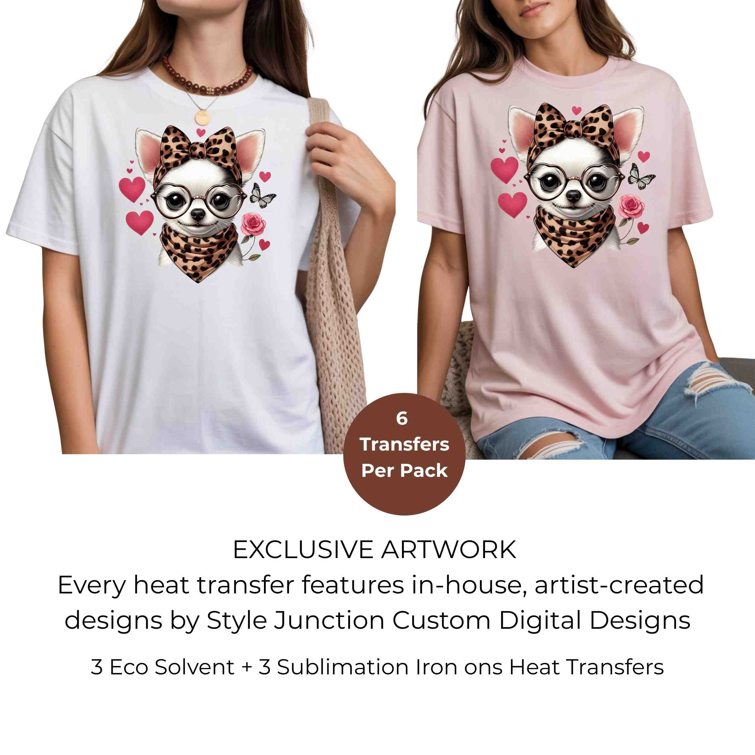 Chihuahua Sweetheart 6-Pack – 3 Eco-Solvent + 3 Sublimation Iron on Transfers - Ready to Press (Iron on Transfers Only)