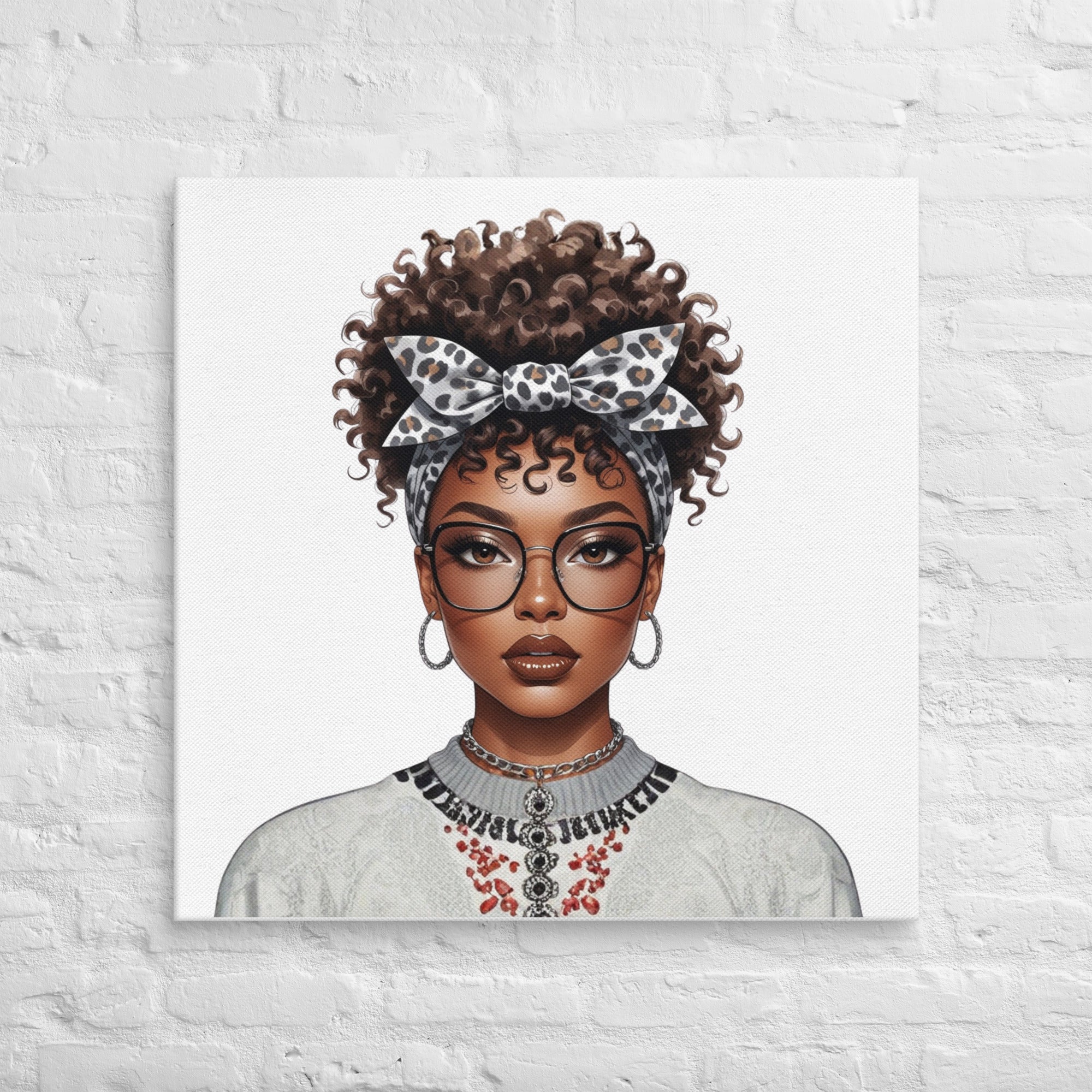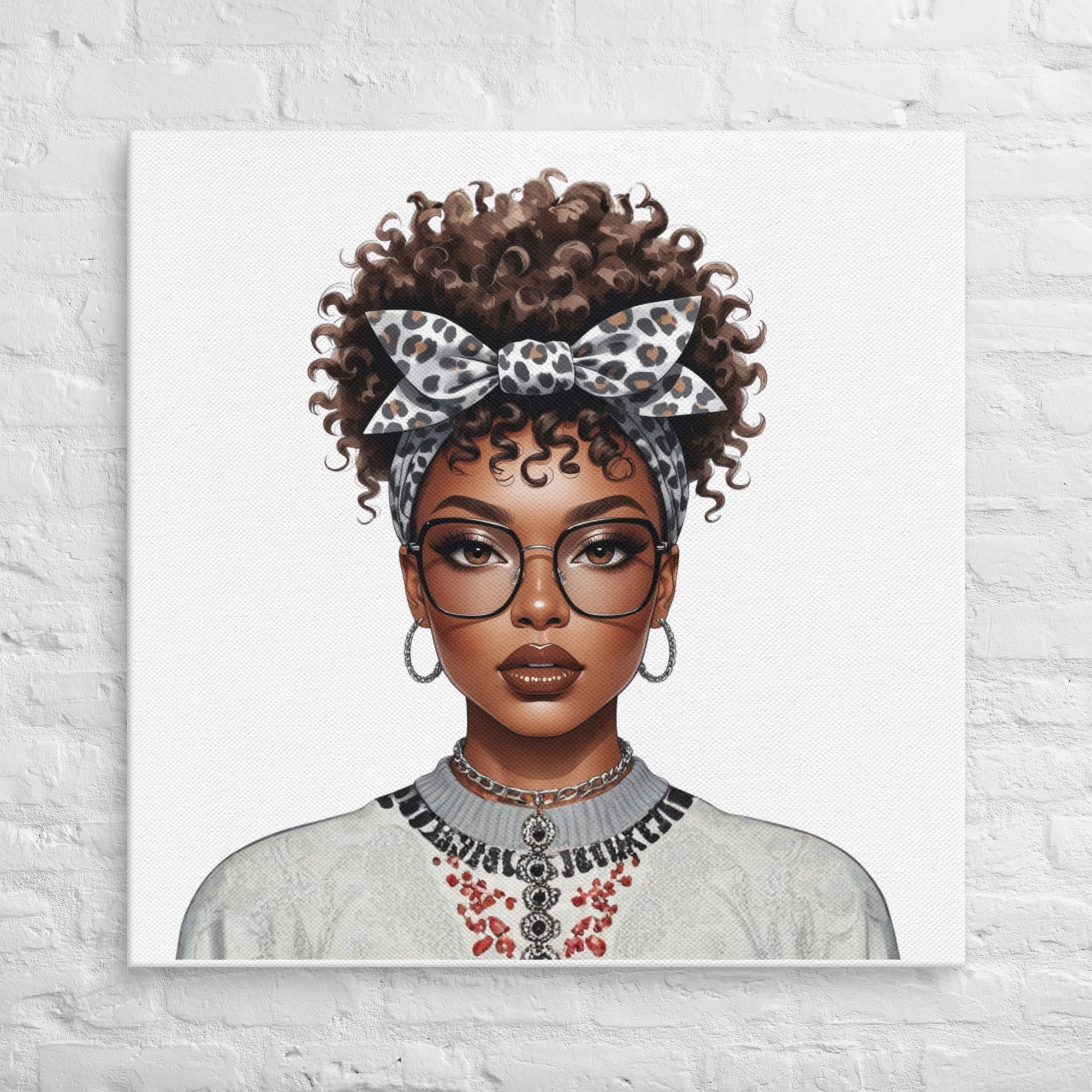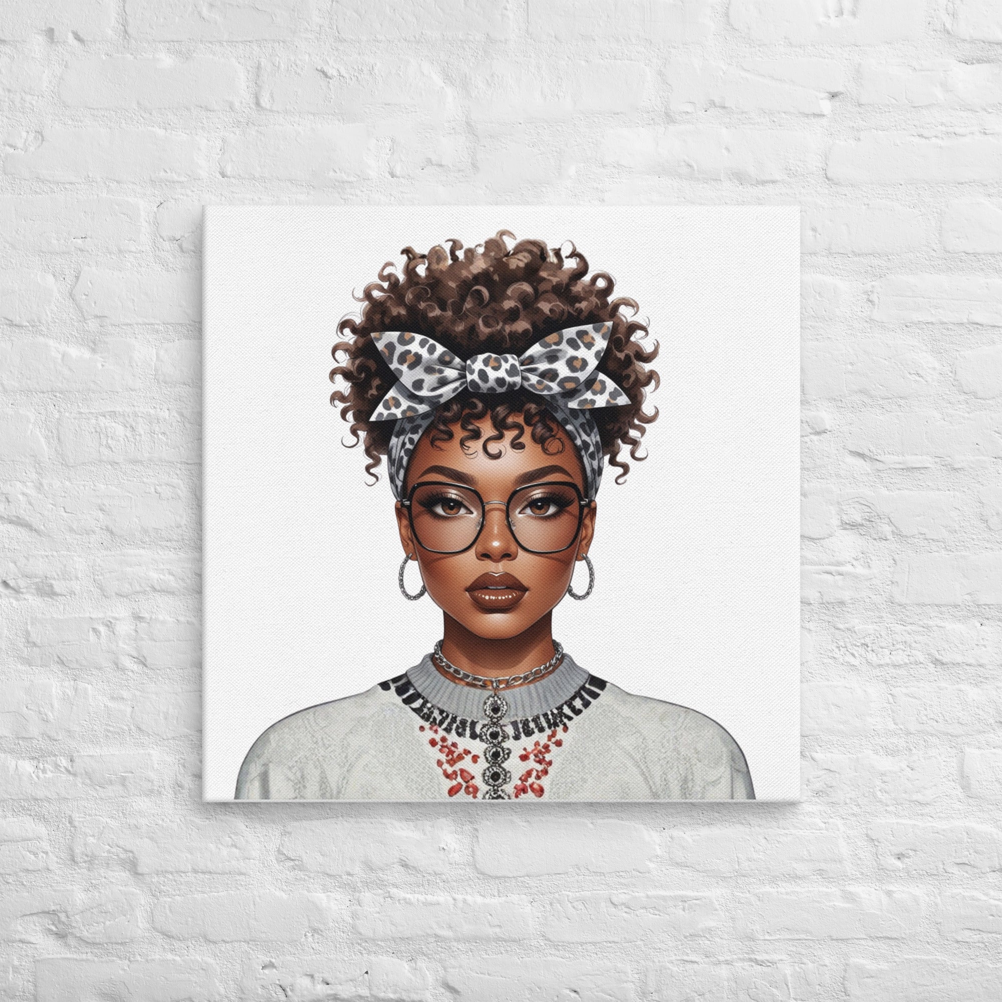 Curly Afro Girl with Leopard Bow – Exclusive Canvas Wall Art