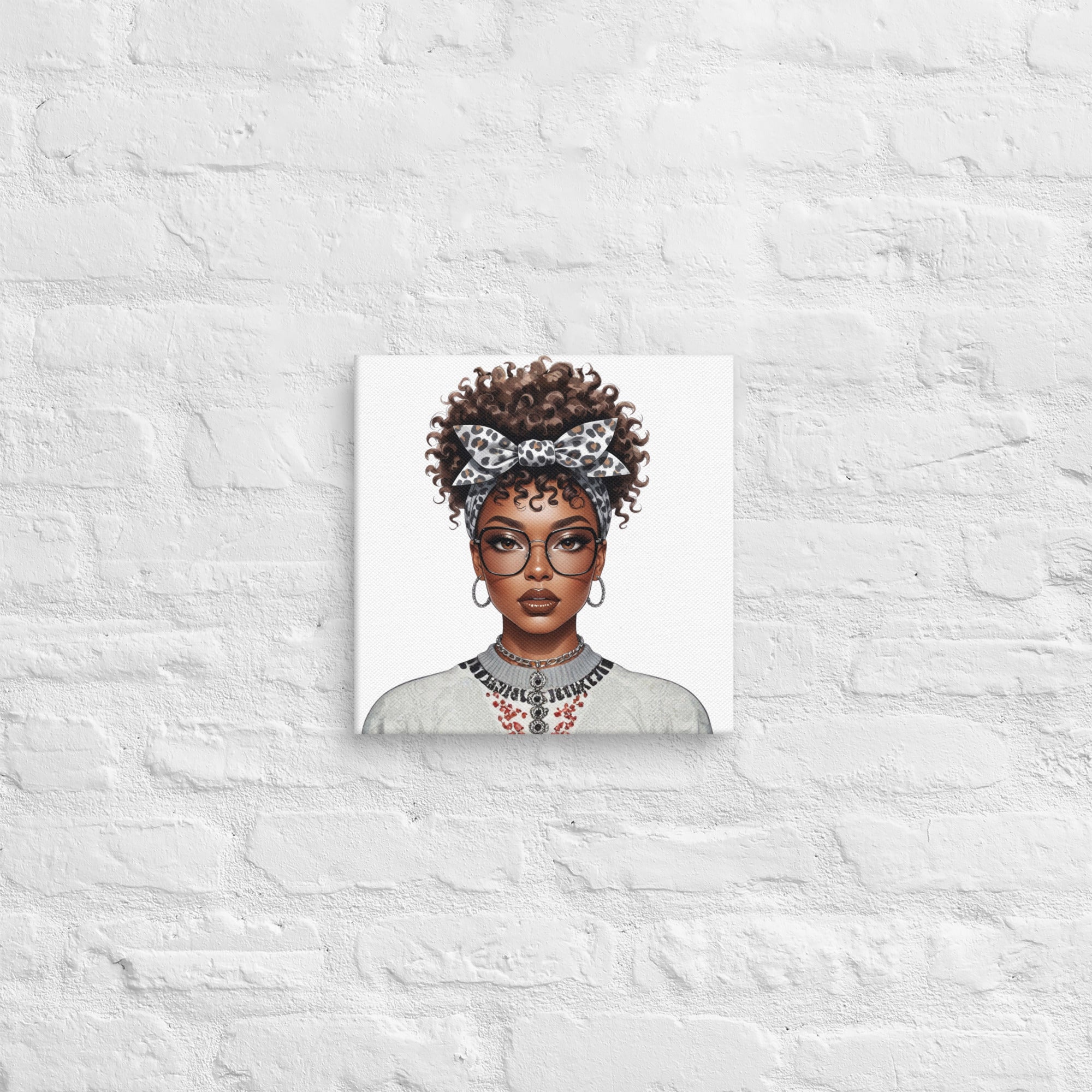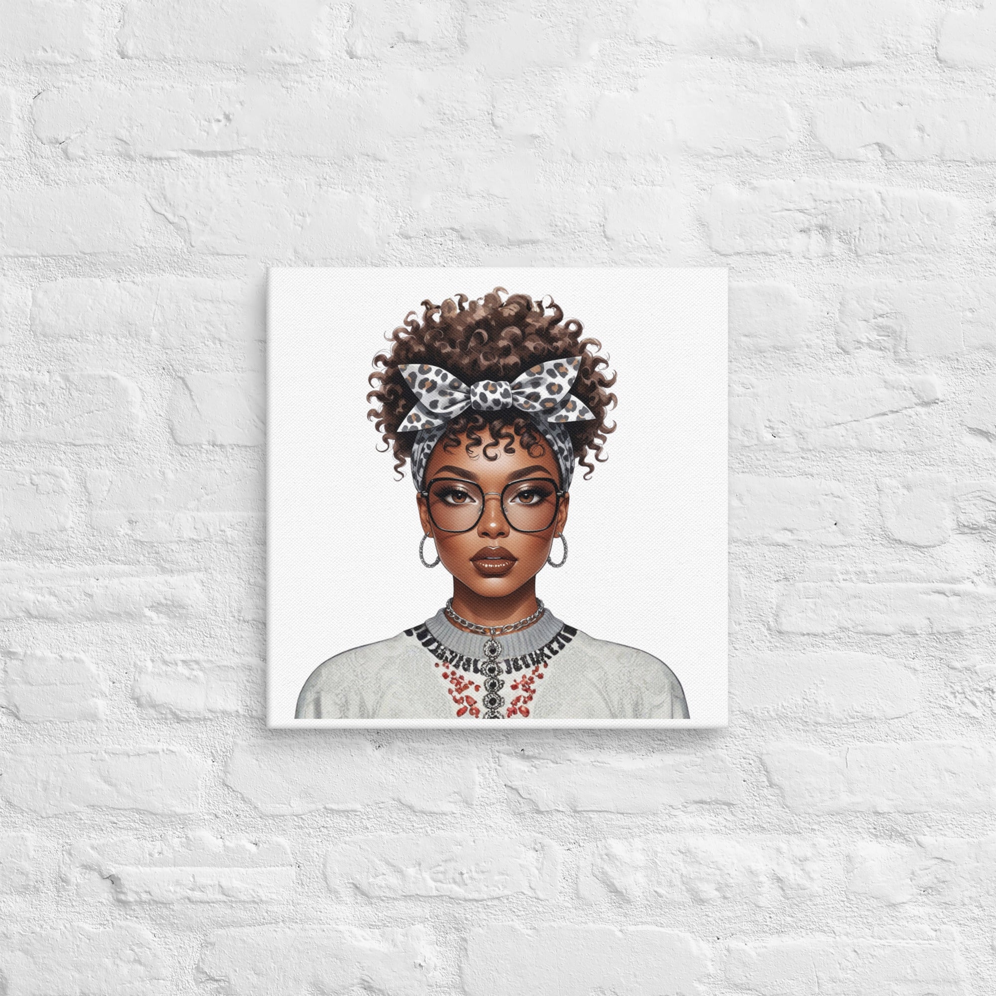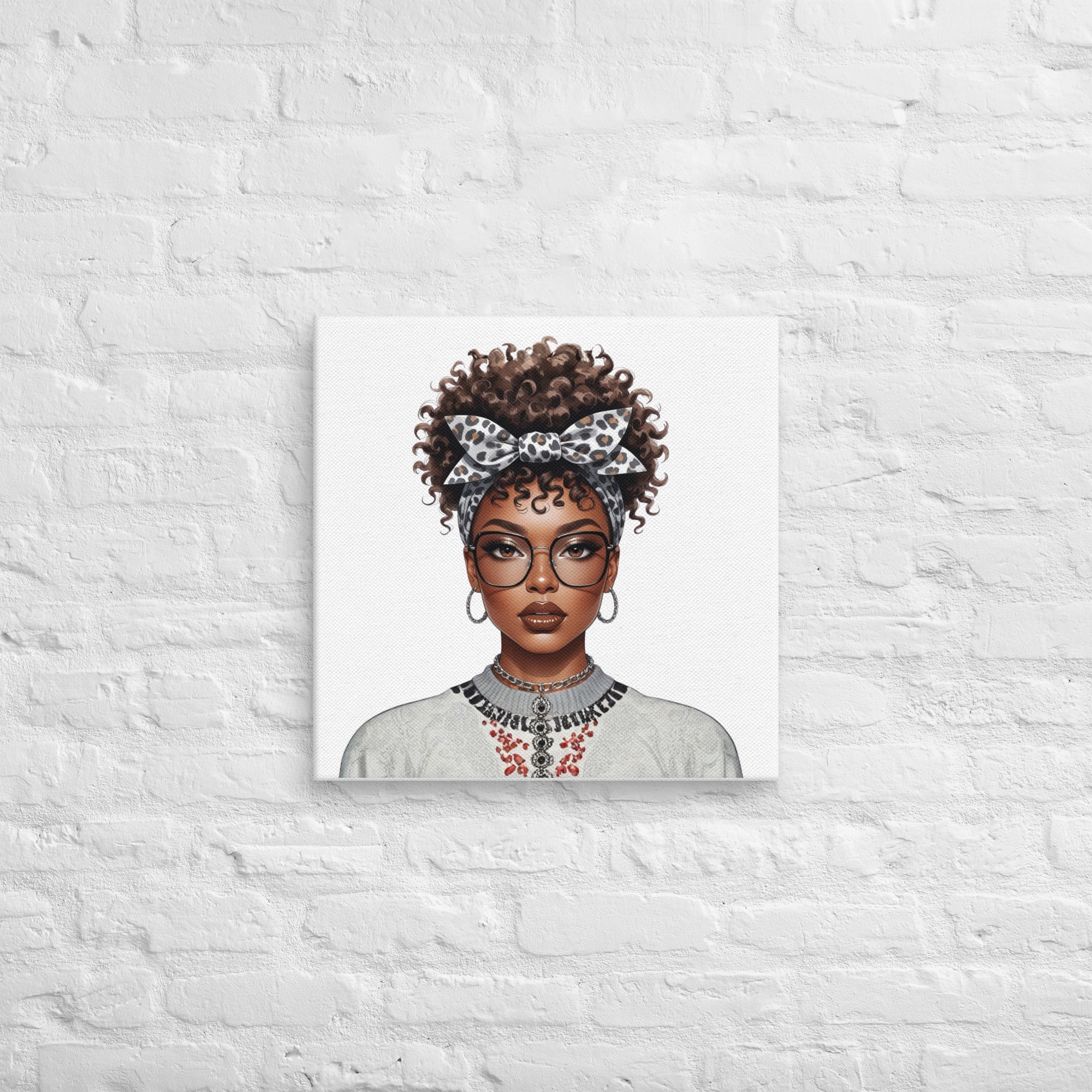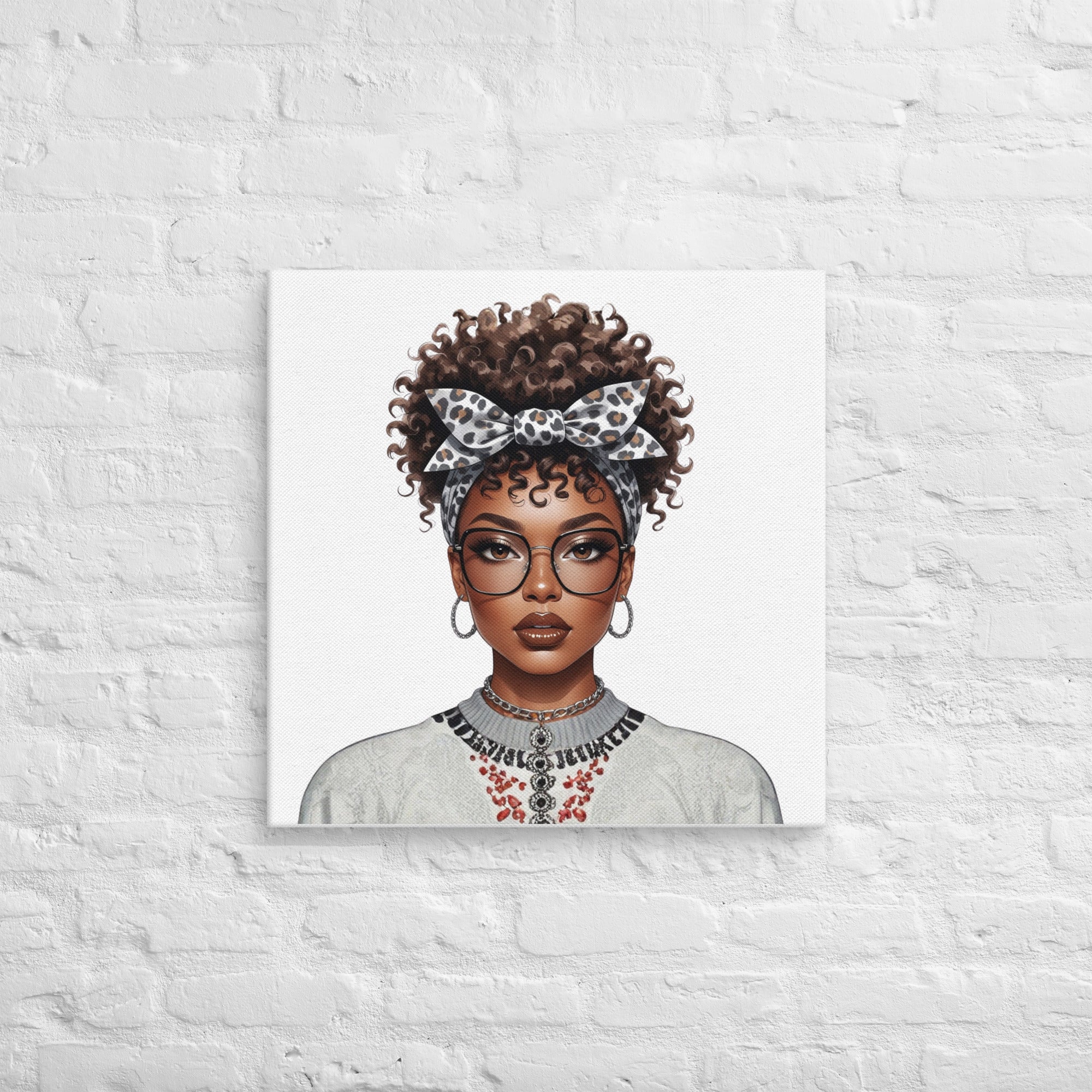 Curly Afro Girl with Leopard Bow – Exclusive Canvas Wall Art
