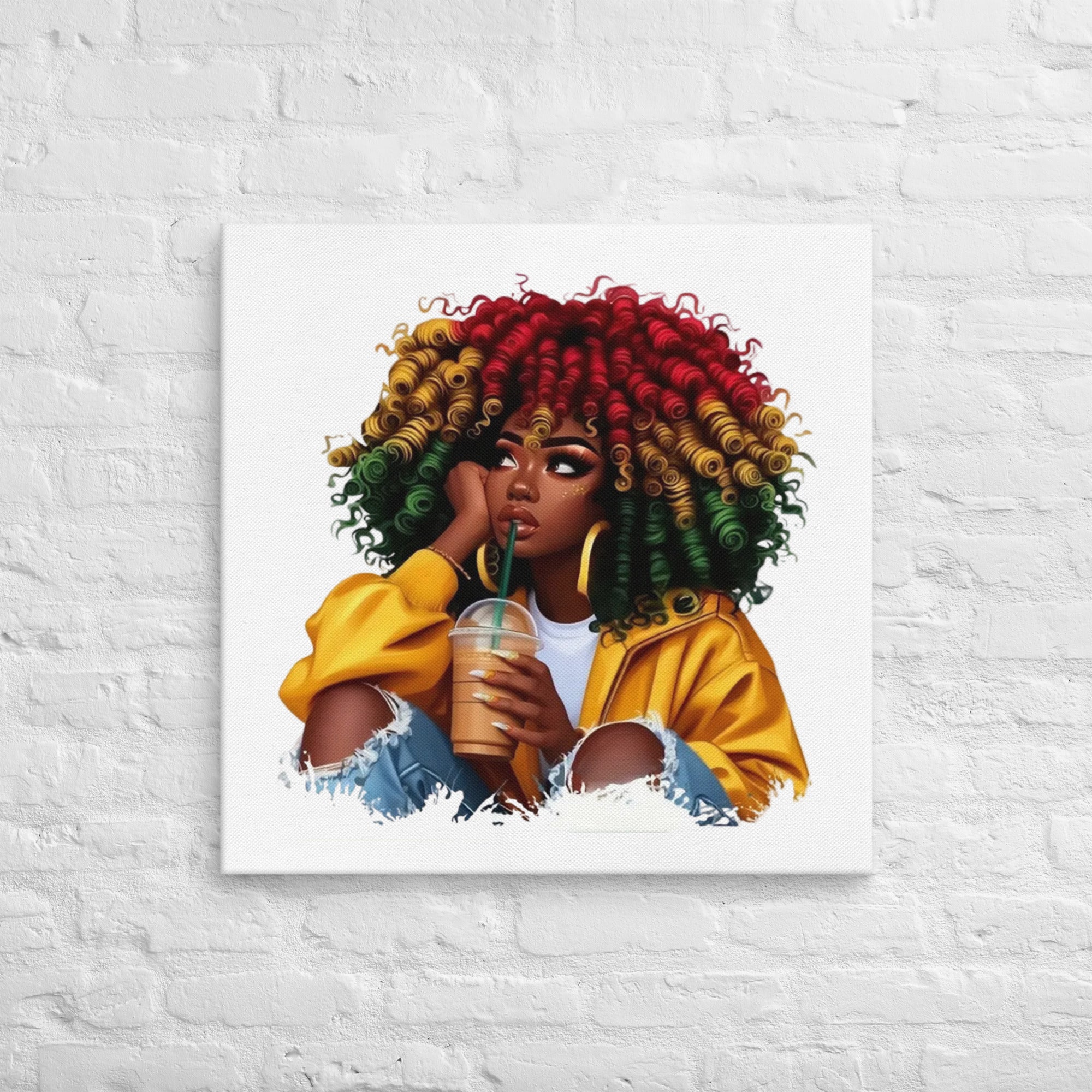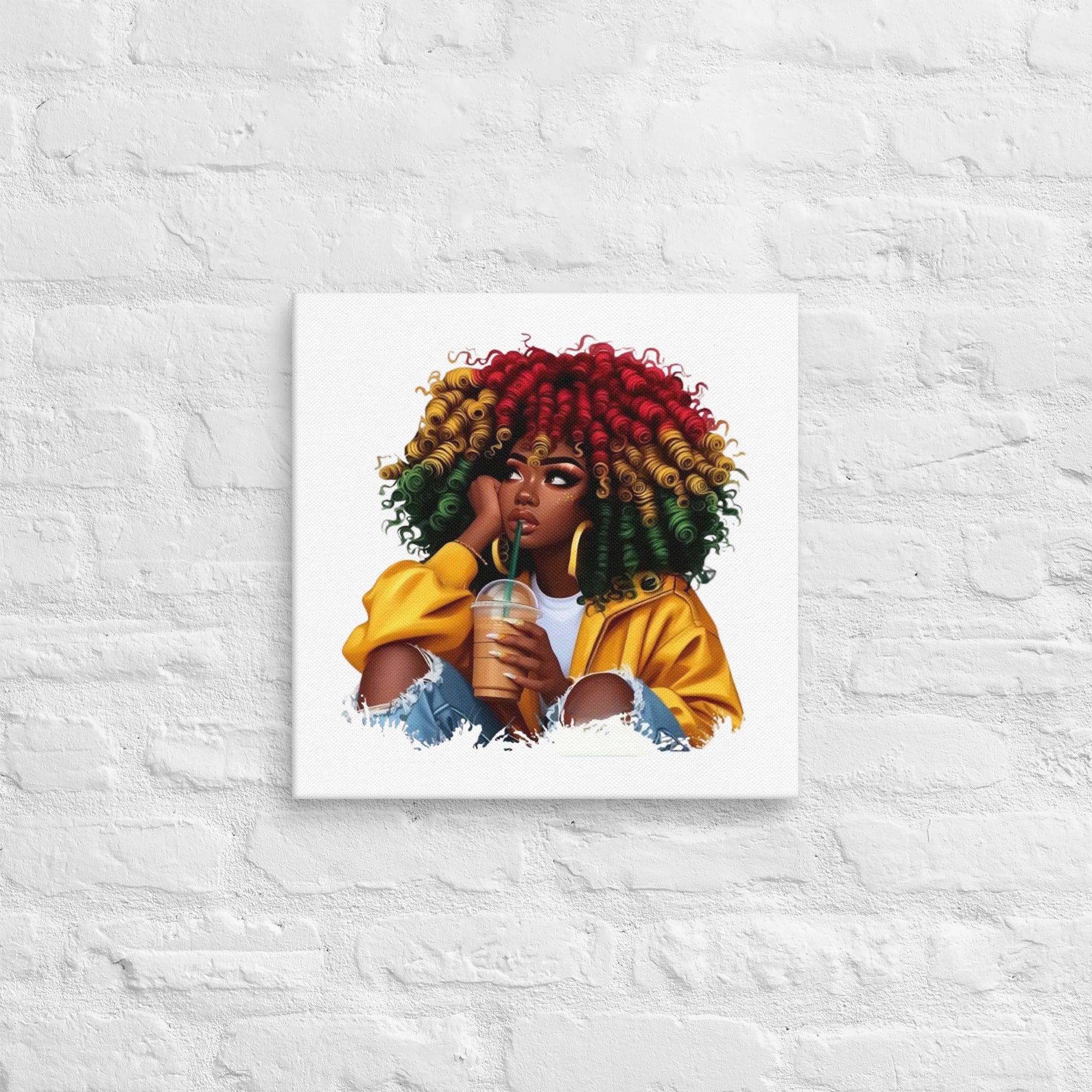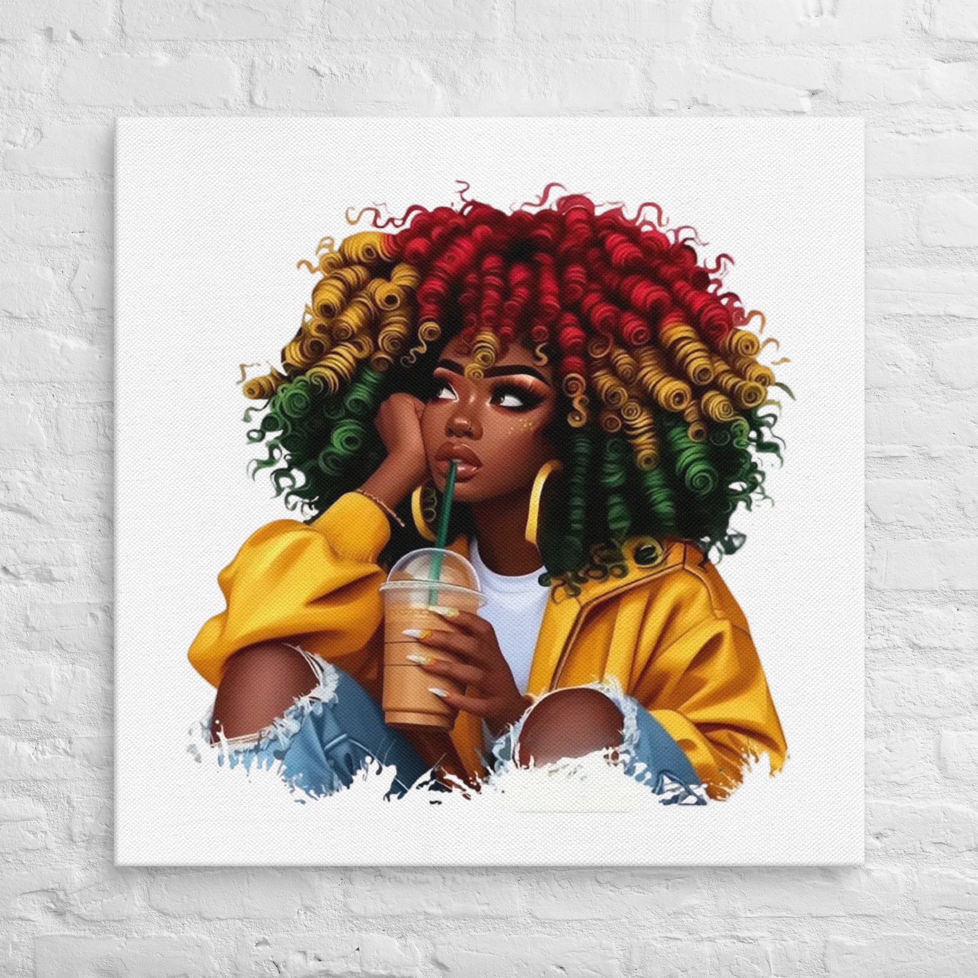 Curly Queen in Gold Jacket – Exclusive Canvas Wall Art