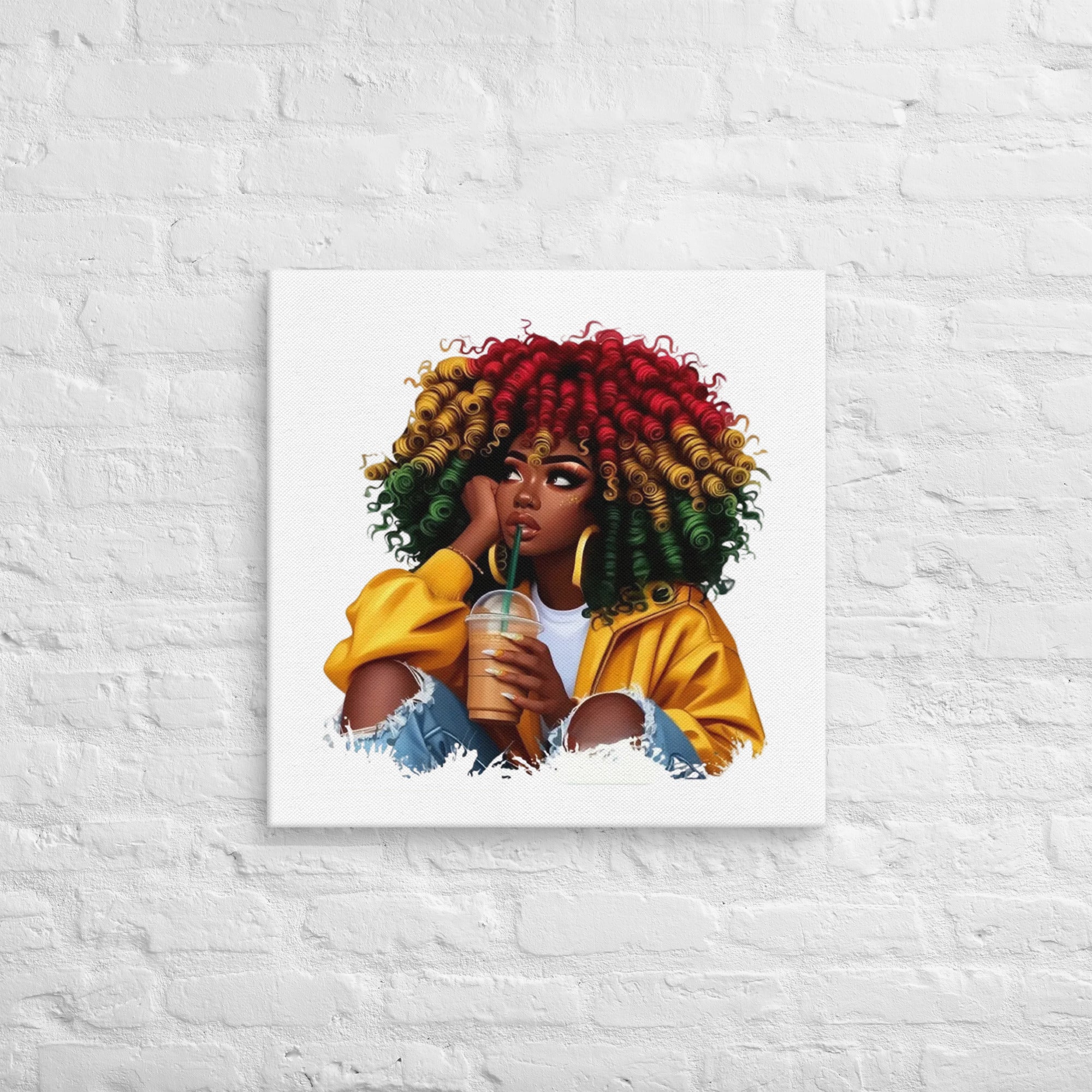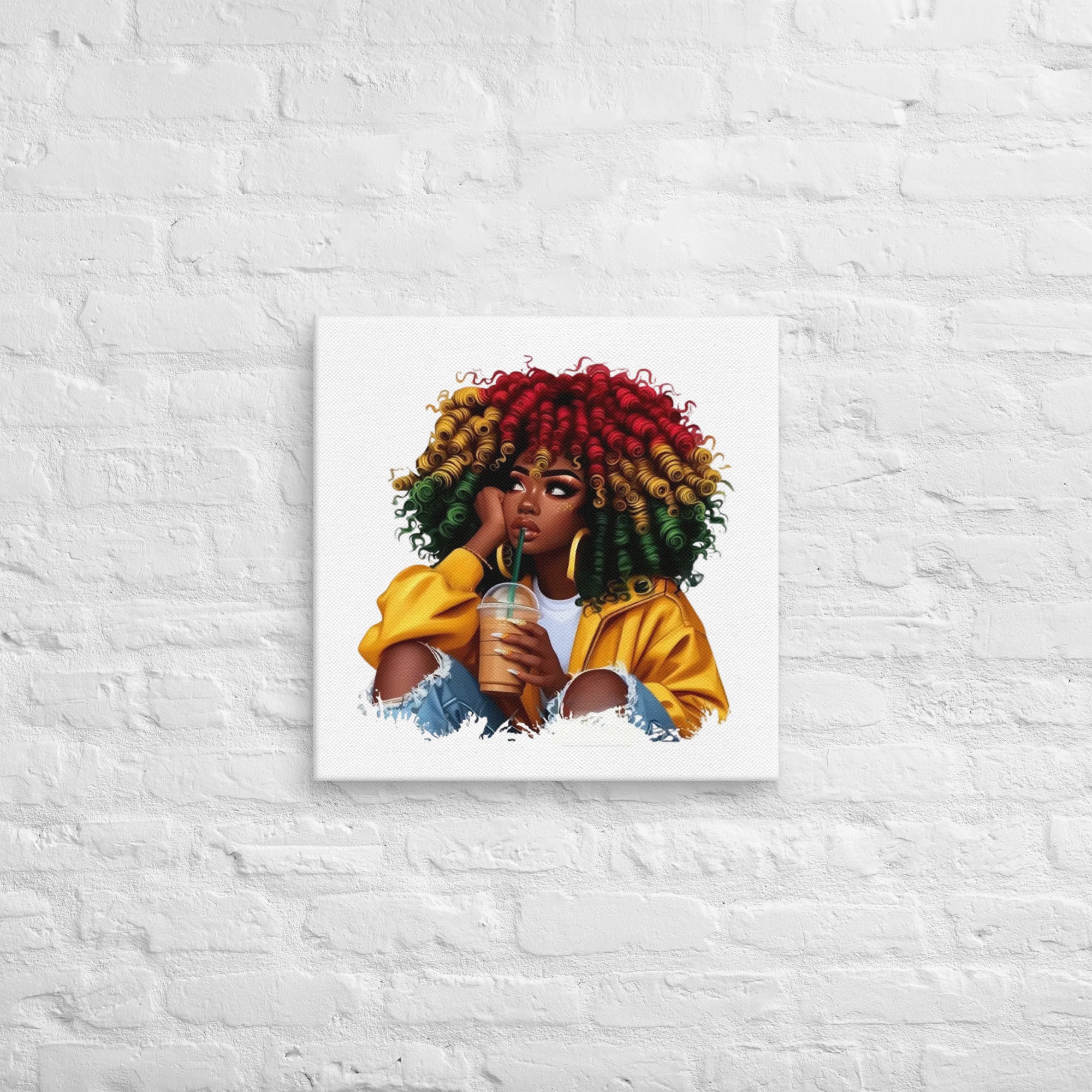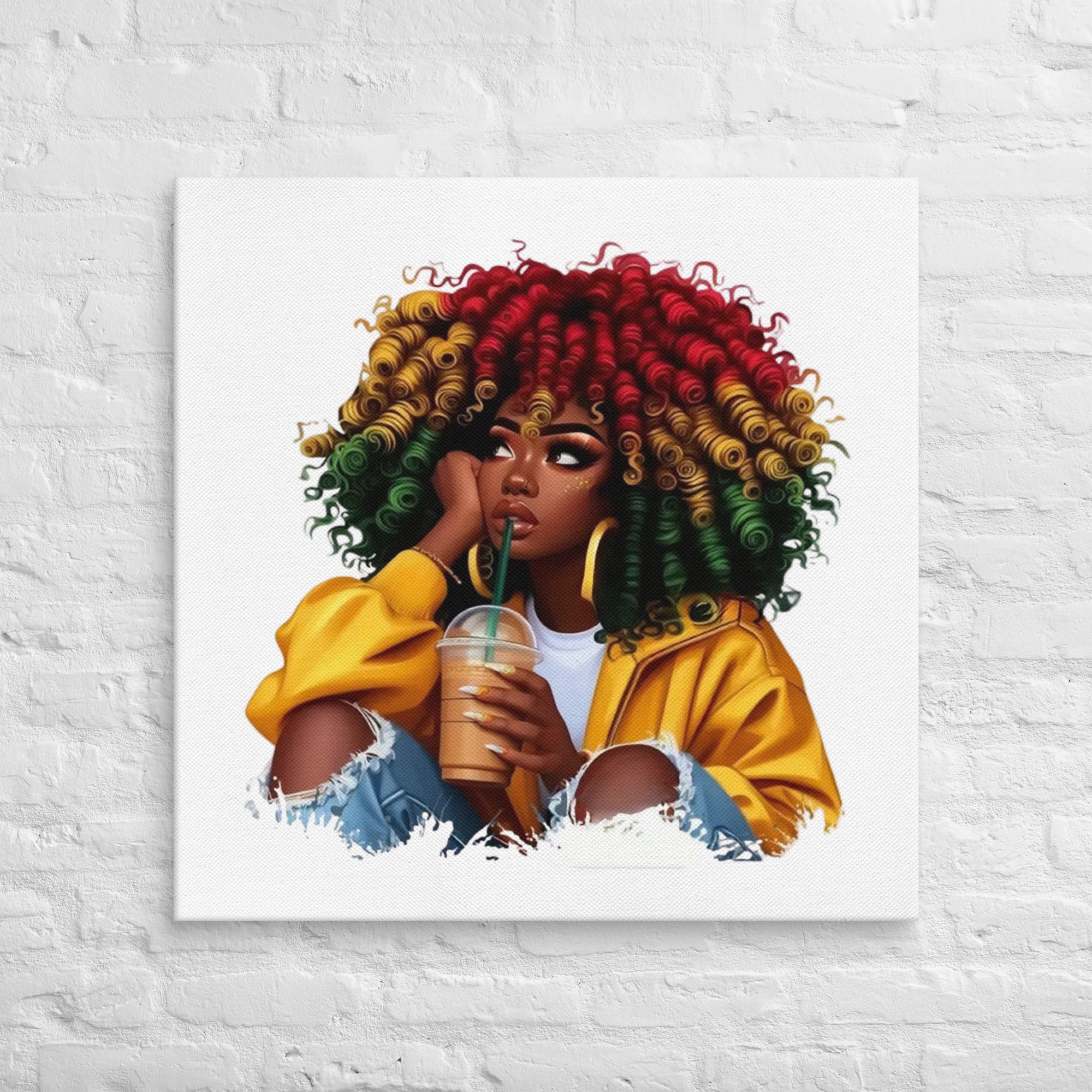 Curly Queen in Gold Jacket – Exclusive Canvas Wall Art