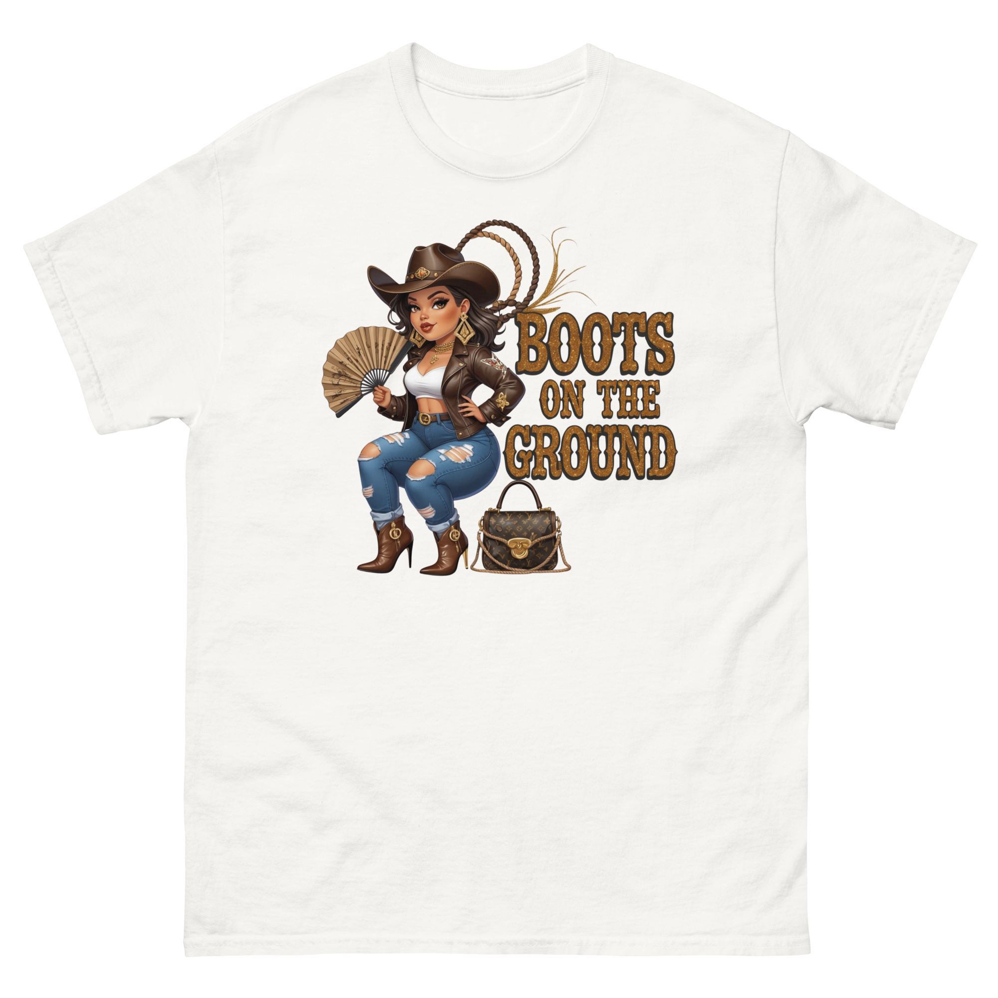 Turn heads and step out in bold, western style with our Curvy Cowgirl "Boots on the Ground" Graphic Tee! 🤎 This design brings together fierce cowgirl vibes, detailed accessories, and ripped denim glam — making it a must-have for western fashion lovers.