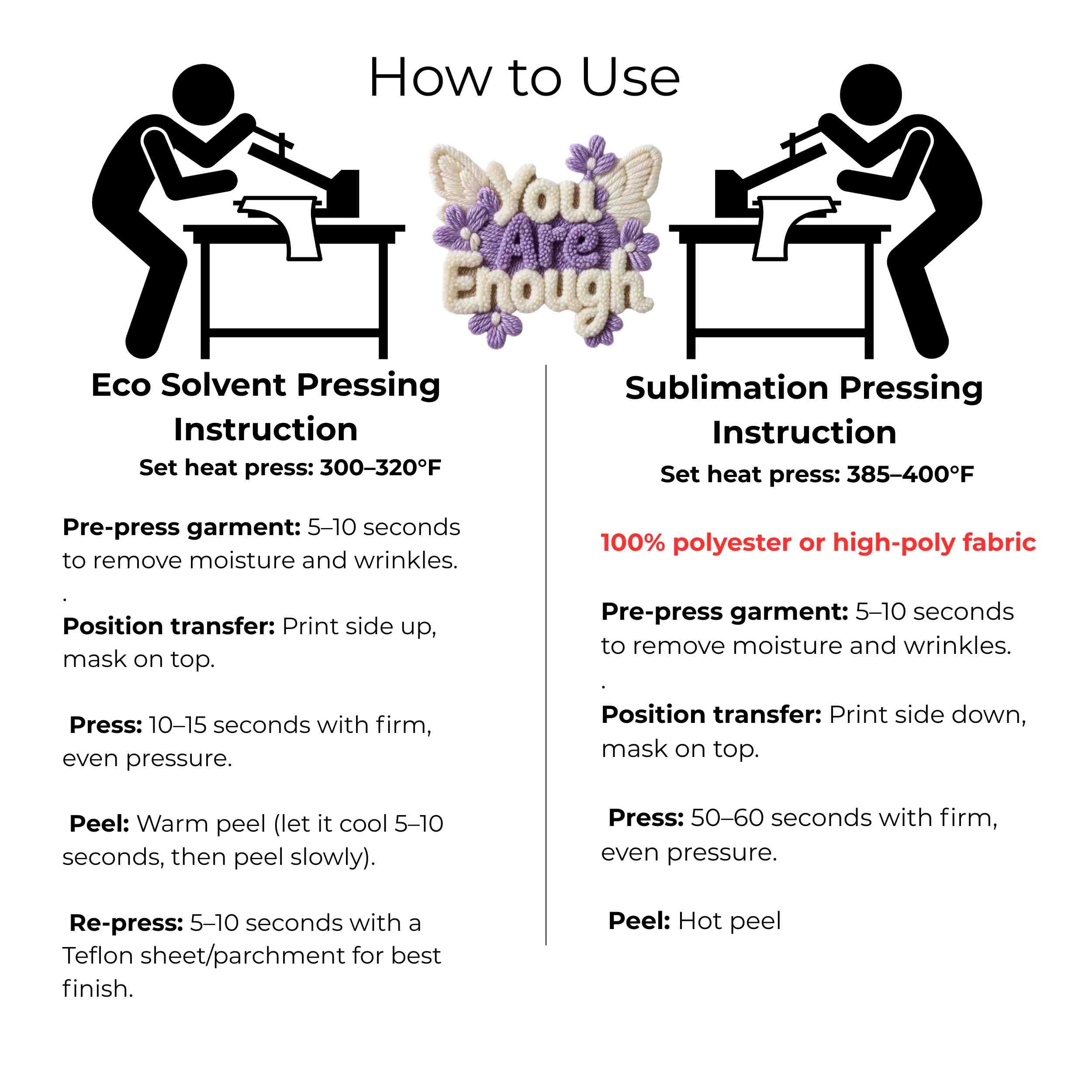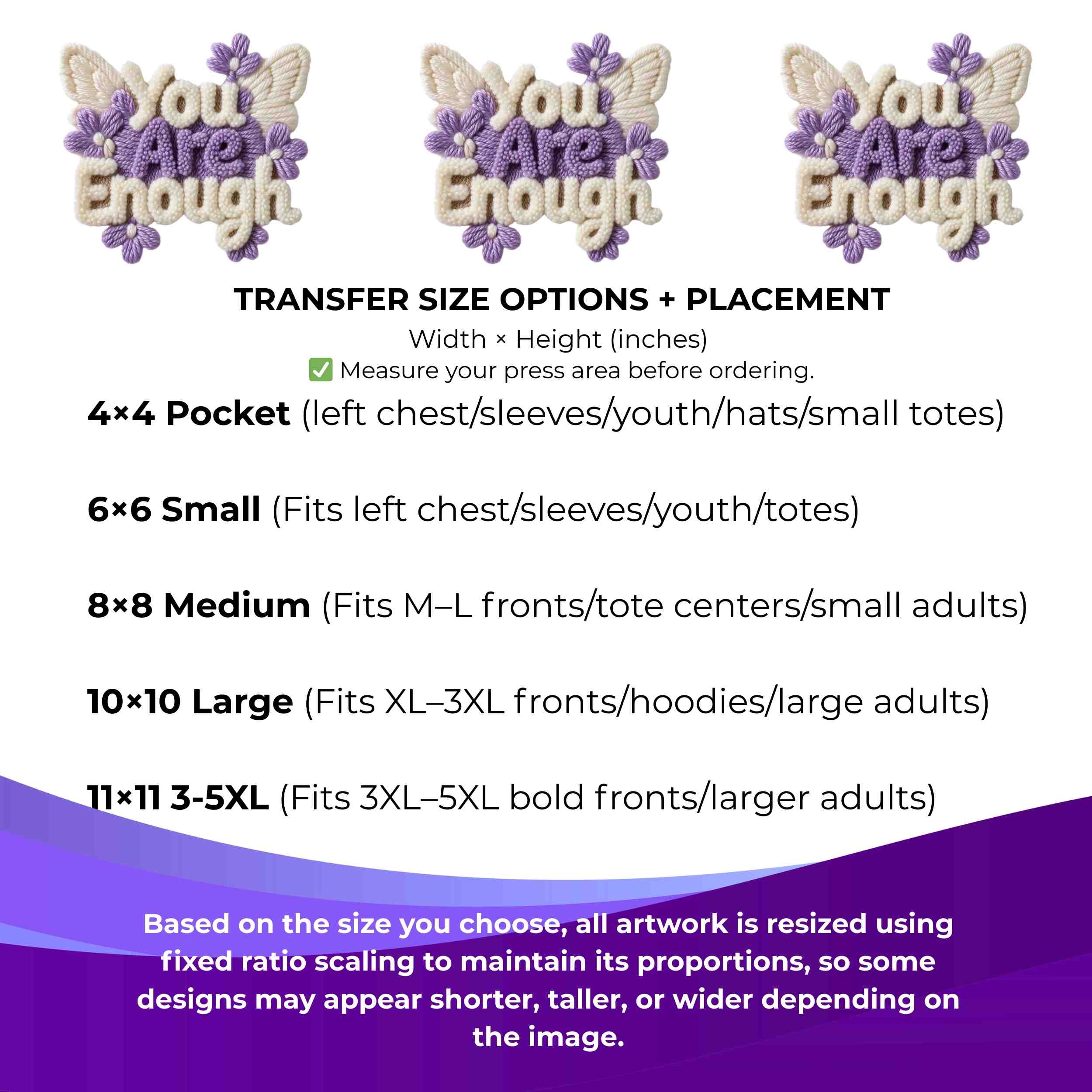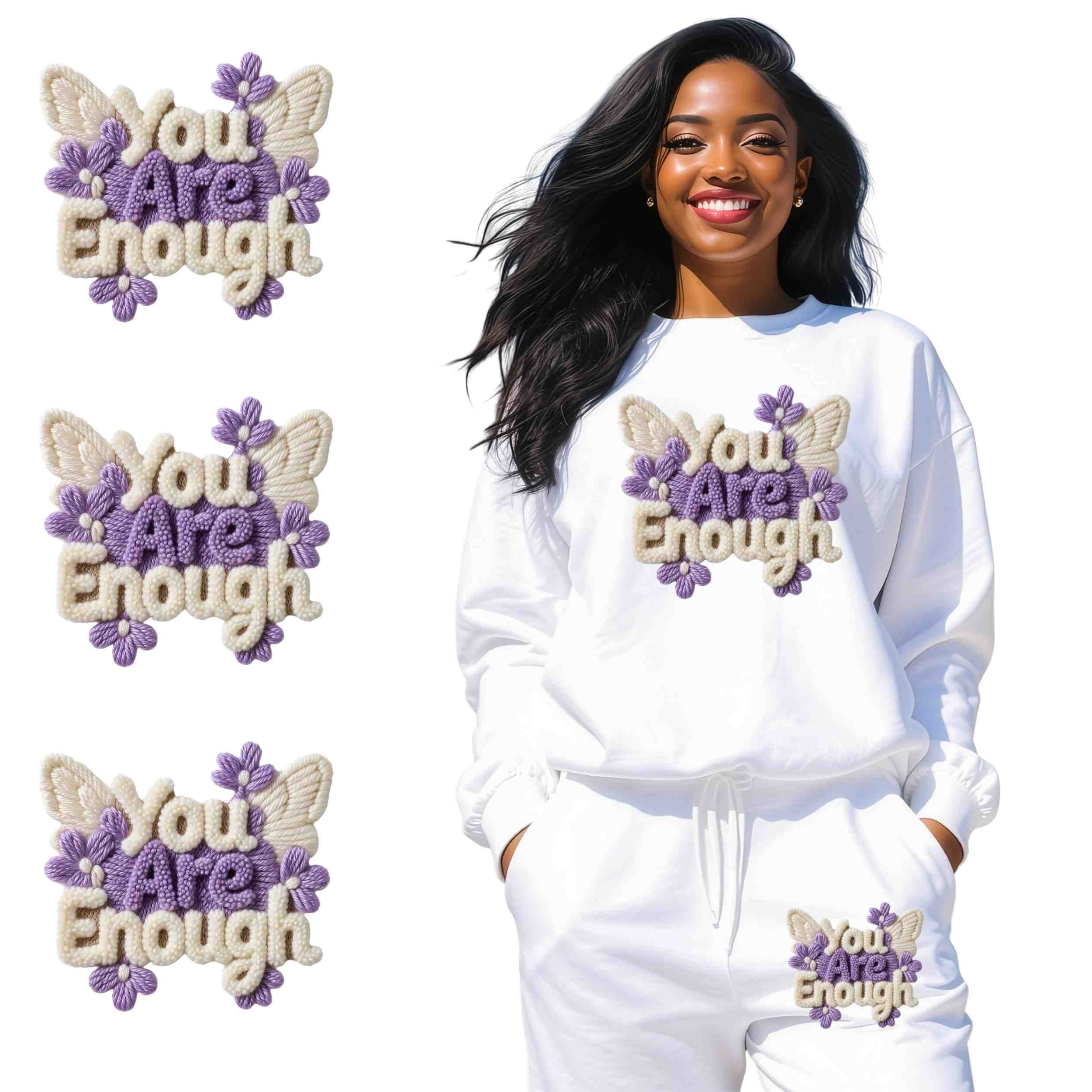 Faux Yarn-You Are Enough 6-Pack Crafter’s & DIY Bundle – 3 Eco-Solvent + 3 Sublimation Iron-On Heat Transfers, Ready to Press, for T-Shirts & More (Includes 4 Bonus Matching 2” inch Stickers).