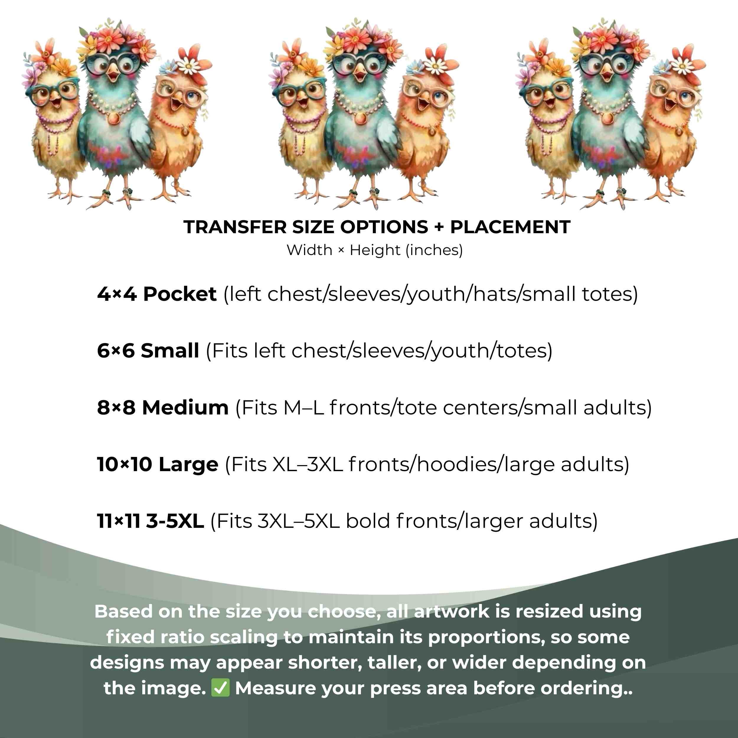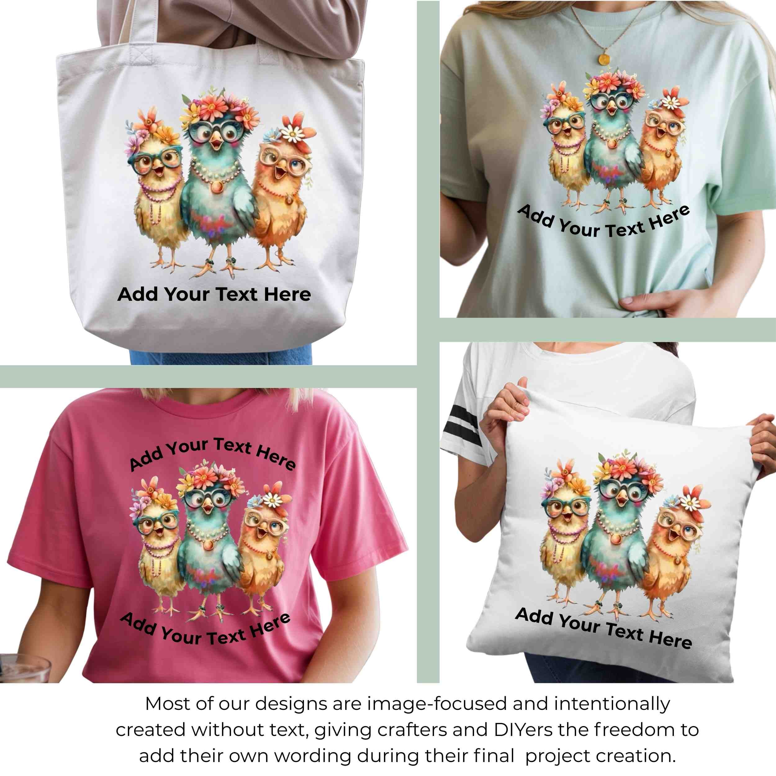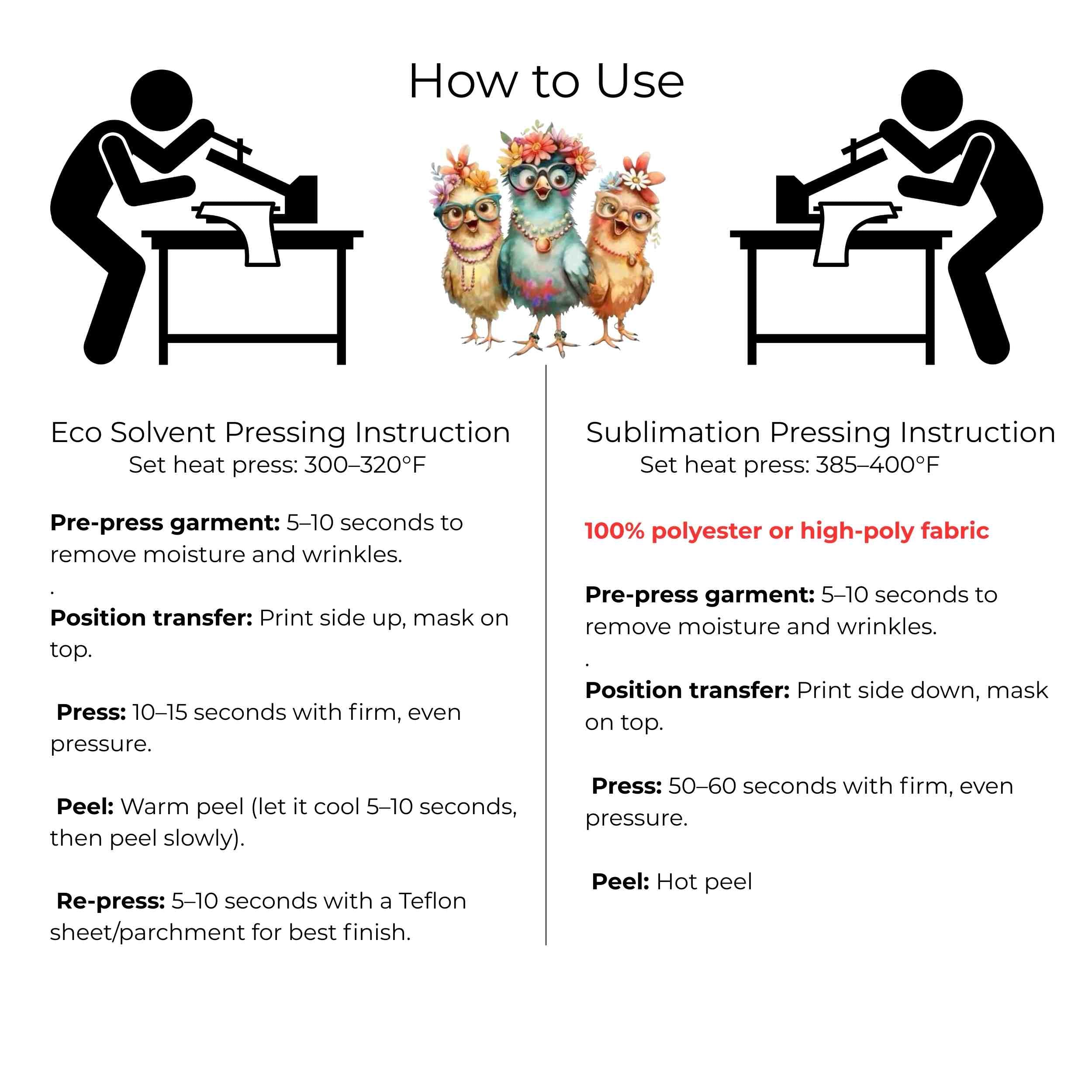Floral Glasses Chick Trio 6-Pack DIY Bundle – 3 Eco-Solvent Iron-On Heat Transfers + 3 Sublimation Iron-On Heat Transfers, Ready to Press. Bonus: 4 Matching 2-Inch Stickers
