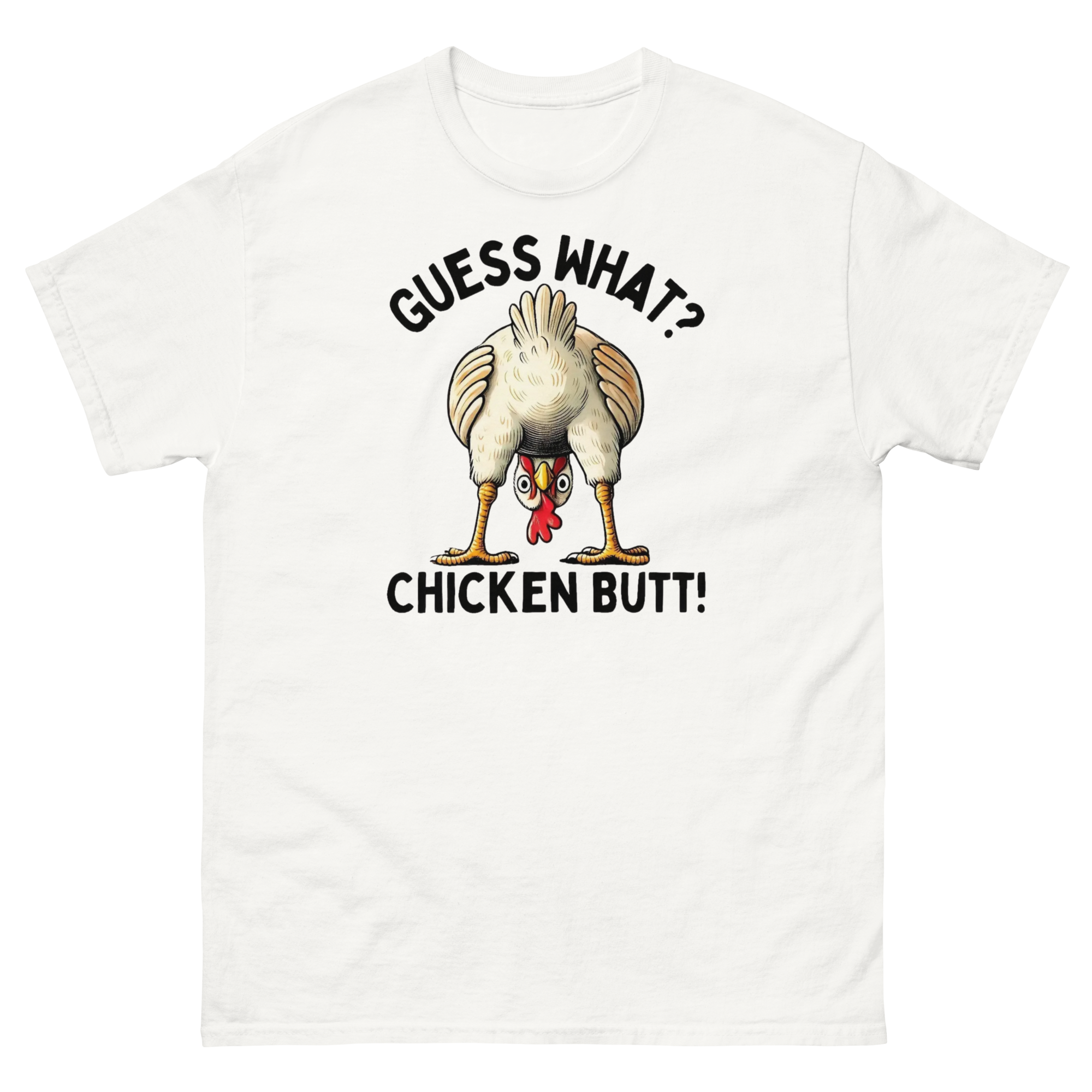 Get ready to turn heads and spark smiles with our hilarious "Guess What? Chicken Butt!" graphic T-shirt! 🐔🎉