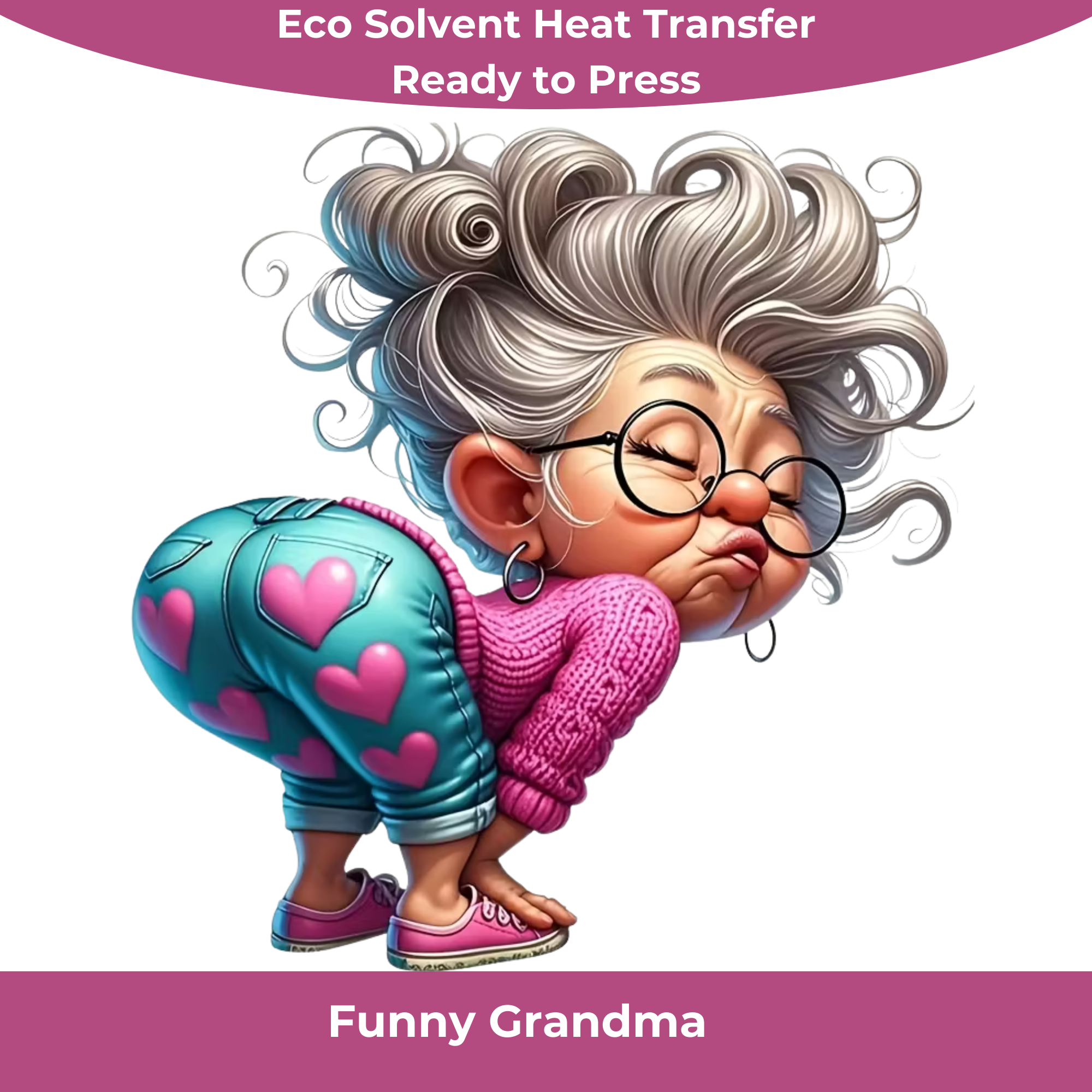 Funny Grandma Cartoon Eco Solvent Heat Transfer for T-Shirts, Hoodies & Apparel