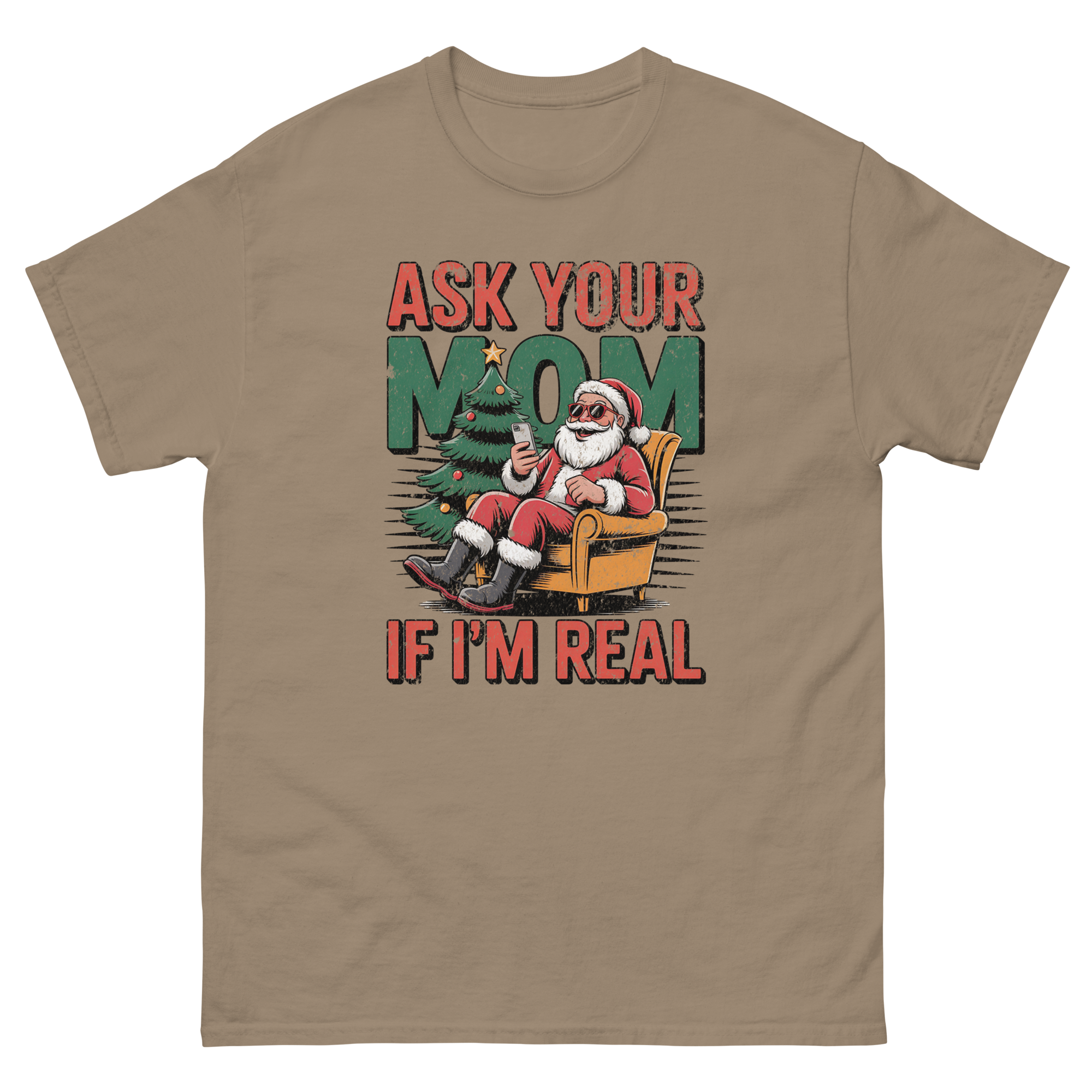 Our Ask Your Mom If I’m Real tee blends vintage humor with vibrant holiday style—perfect for cozy days, gift exchanges, or festive nights out.