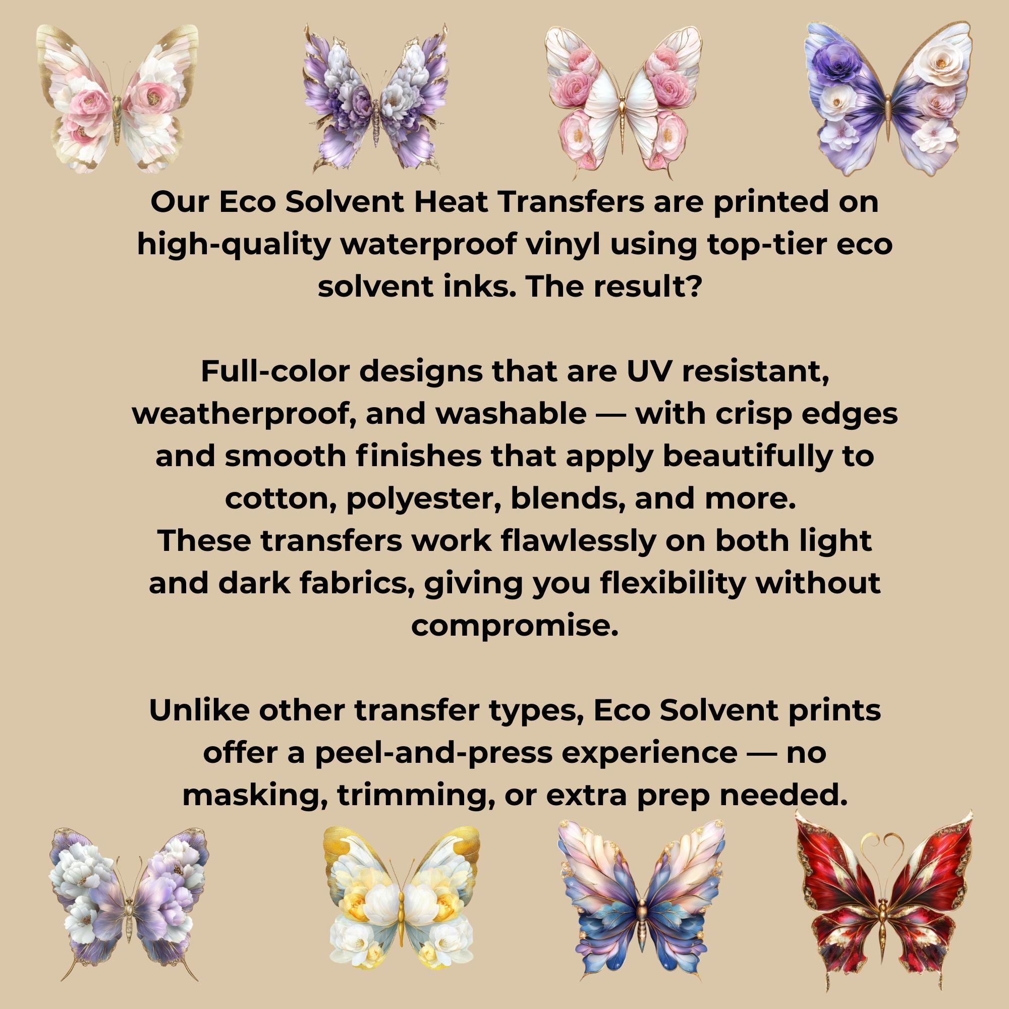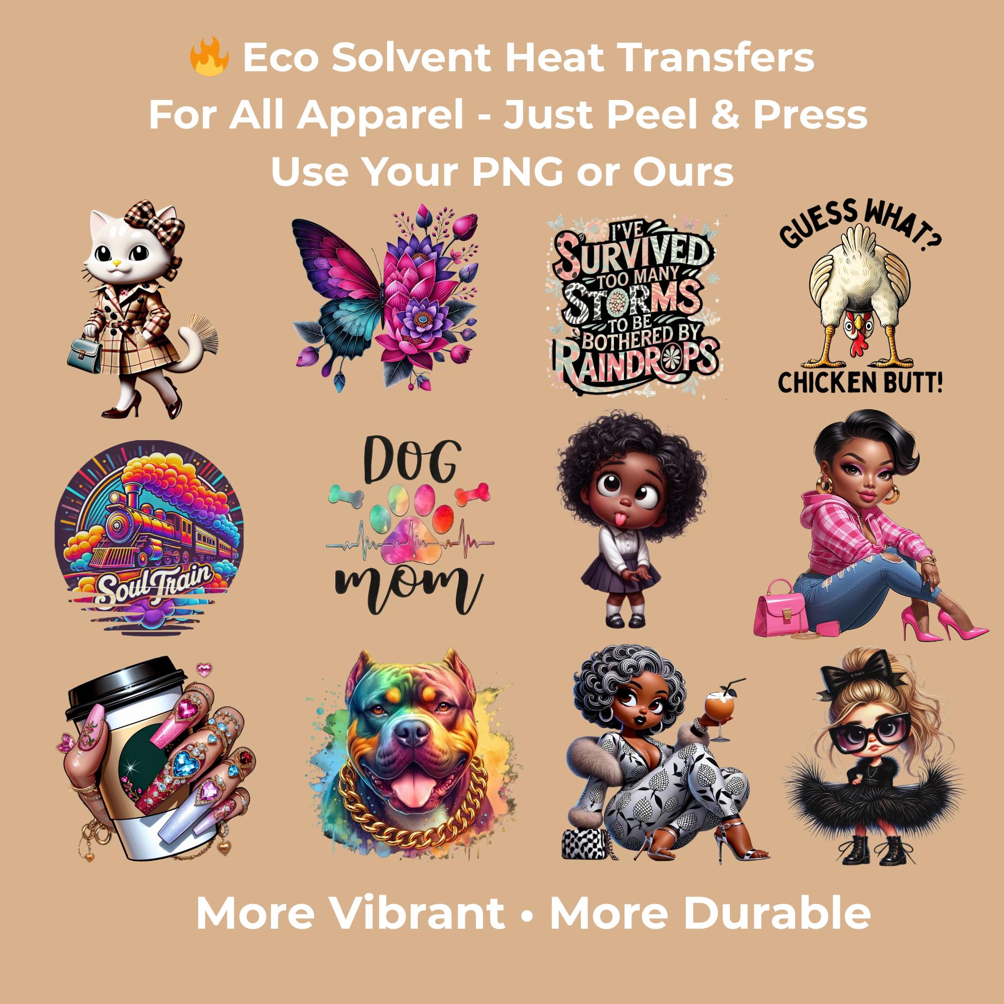 Experience professional-grade results with Eco-Solvent and Sublimation Heat Transfers, crafted for makers, small businesses, and creators who demand precision, vibrancy, and reliability.
