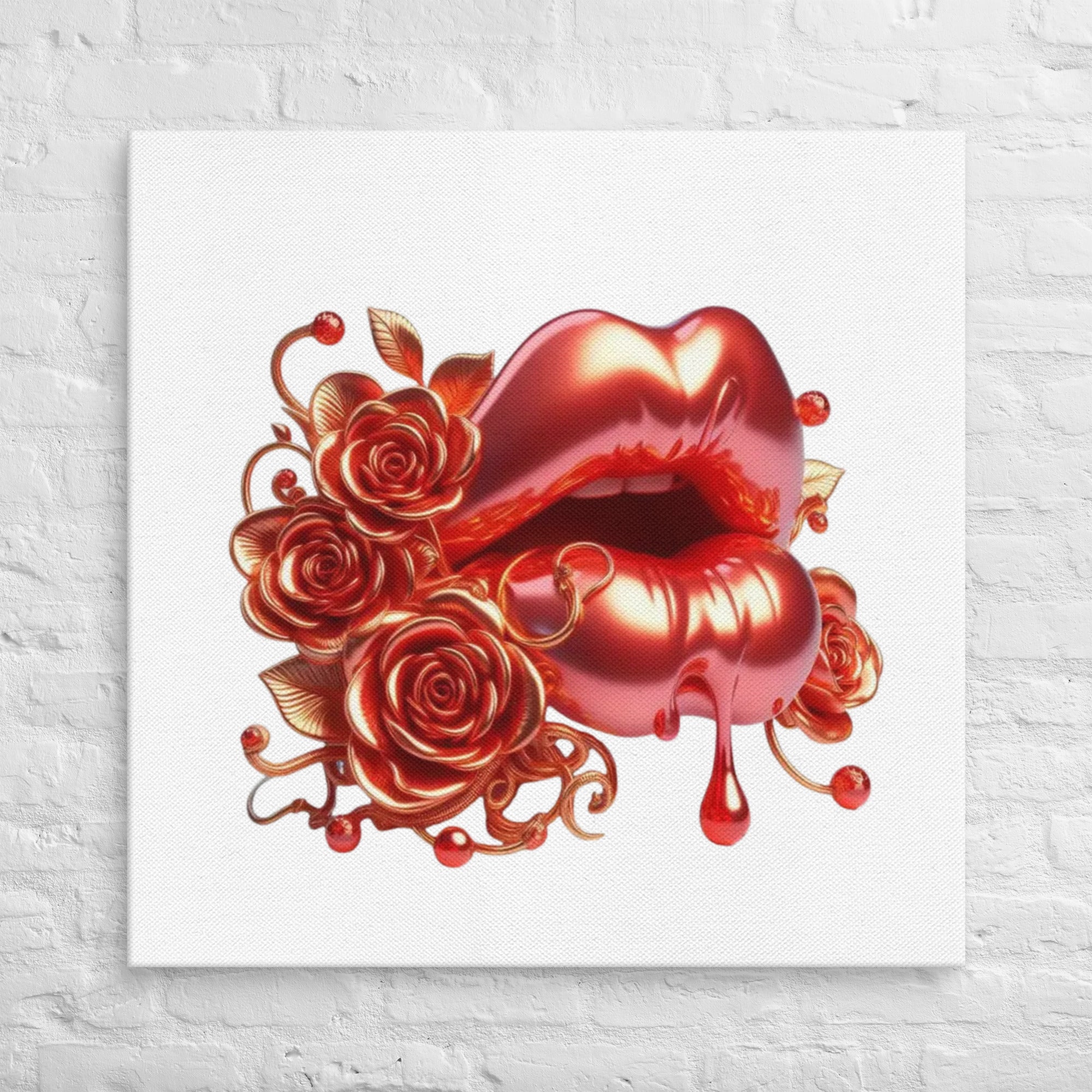 Glossy Red Lips & Roses – Exclusive Canvas Wall Art