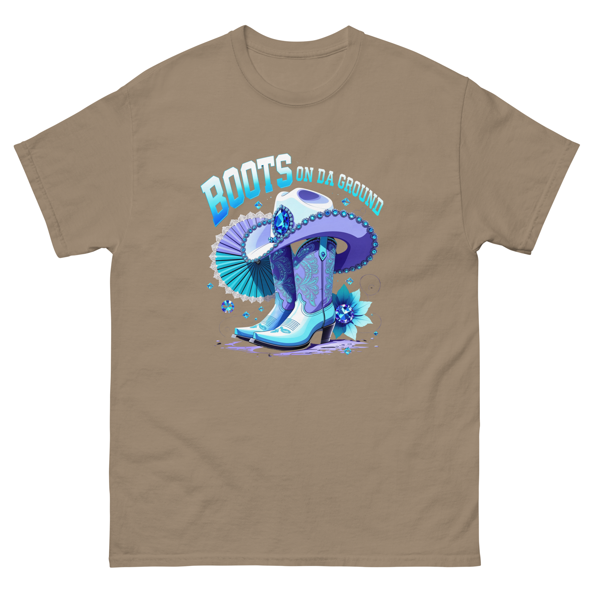 This Light Blue “Boots on Da Ground” tee is made for the cowgirl who keeps it cool but commands attention. Blending soft hues with statement-making sparkle, it's perfect for everything from rodeo days to downtown strolls. It’s chill in tone—but bold in style.