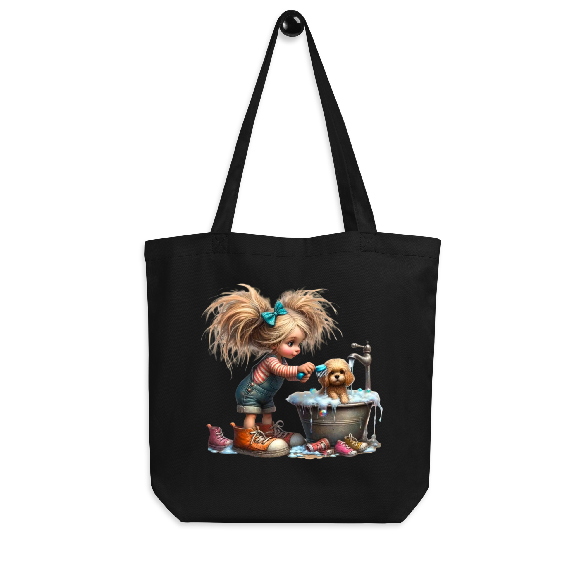 Little Girl Bathing Puppy - Custom Design Eco Tote Bag
