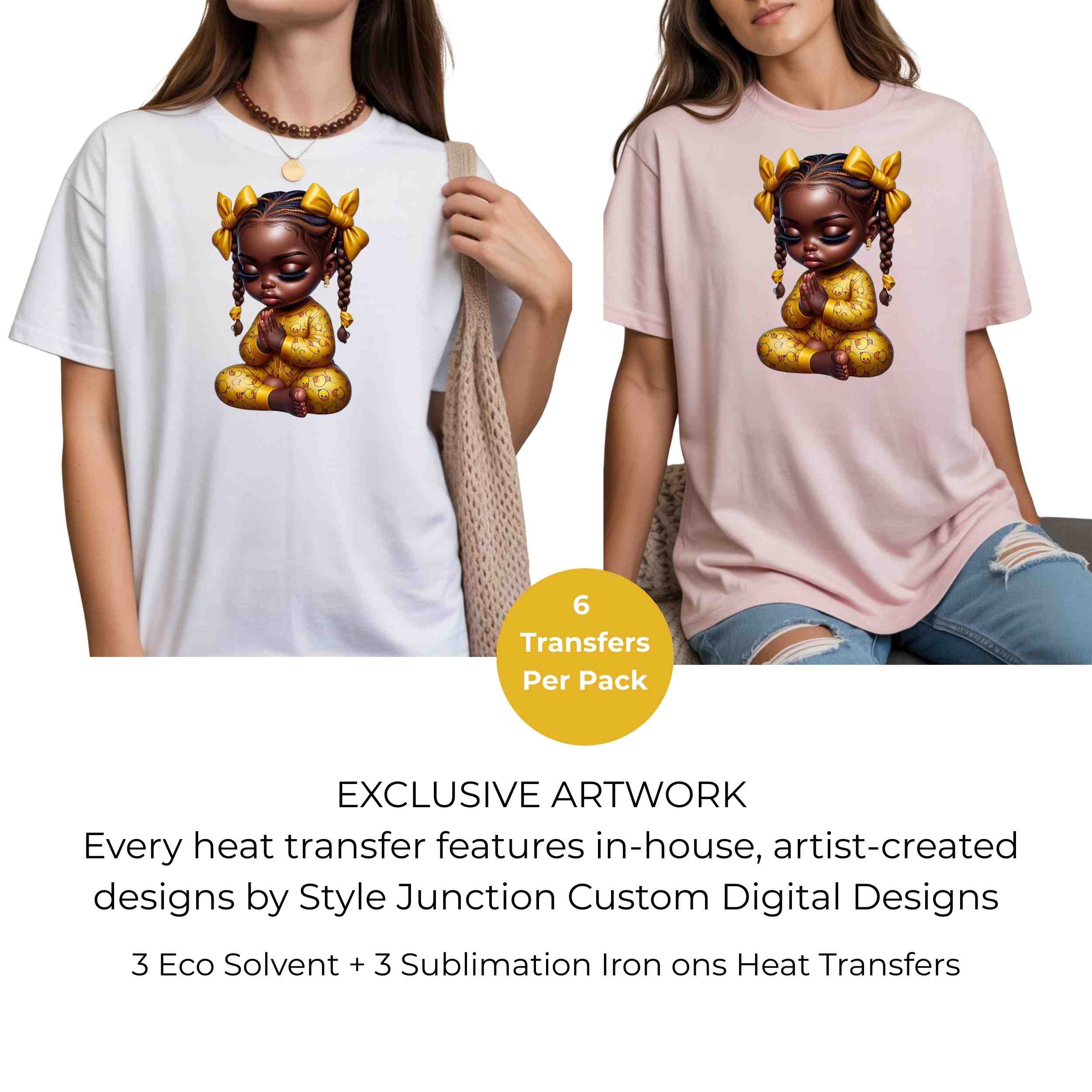 Little Prayer Princess 6-Pack Bundle – 3 Eco-Solvent + 3 Sublimation Iron on Transfers - Ready to Press (Iron on Transfers Only)