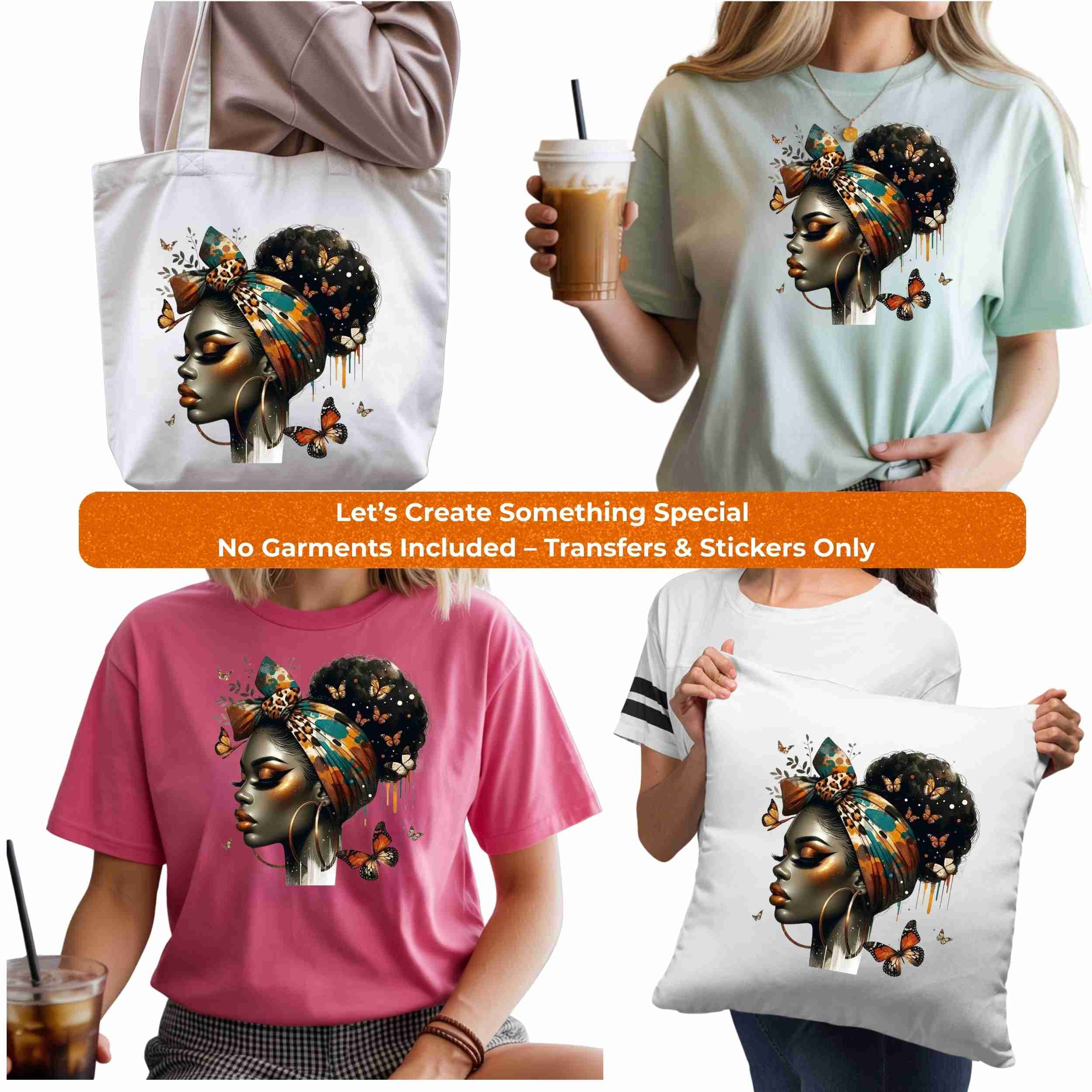 Metamorphosis Queen 6-Pack Crafter’s & DIY Bundle – 3 Eco-Solvent + 3 Sublimation Iron-On Heat Transfers, Ready to Press, for T-Shirts & More. Bonus: Matching 2” inch Stickers.
