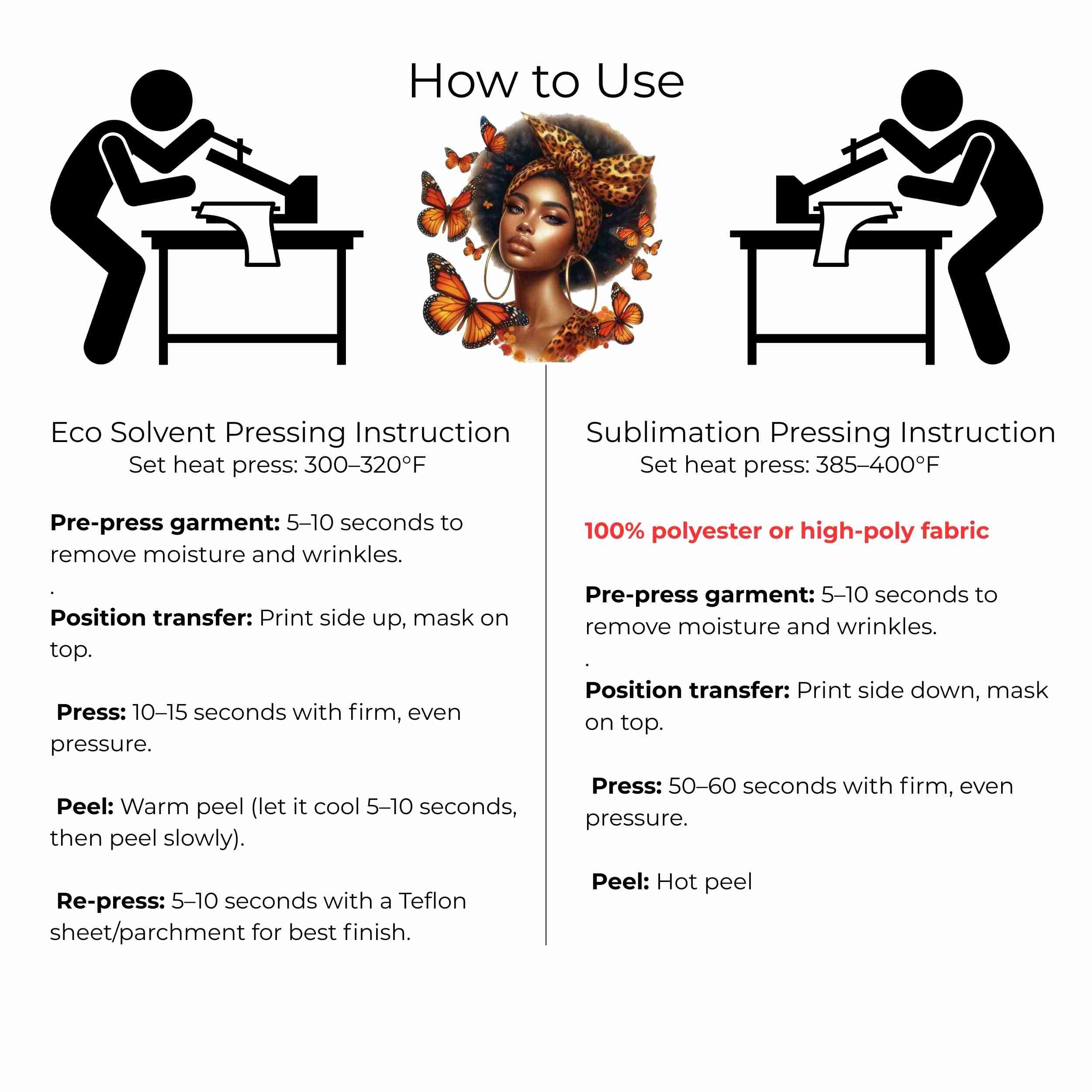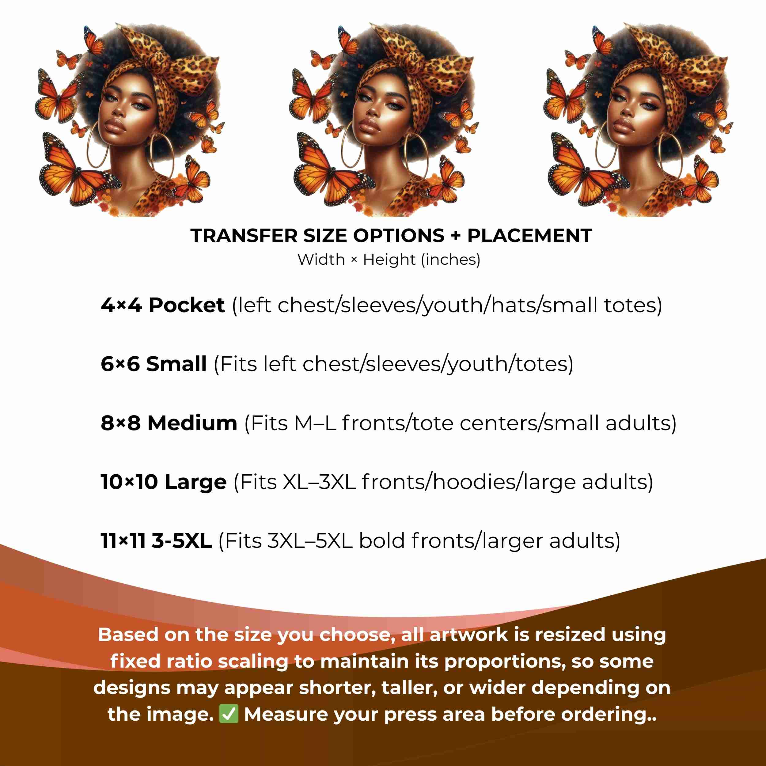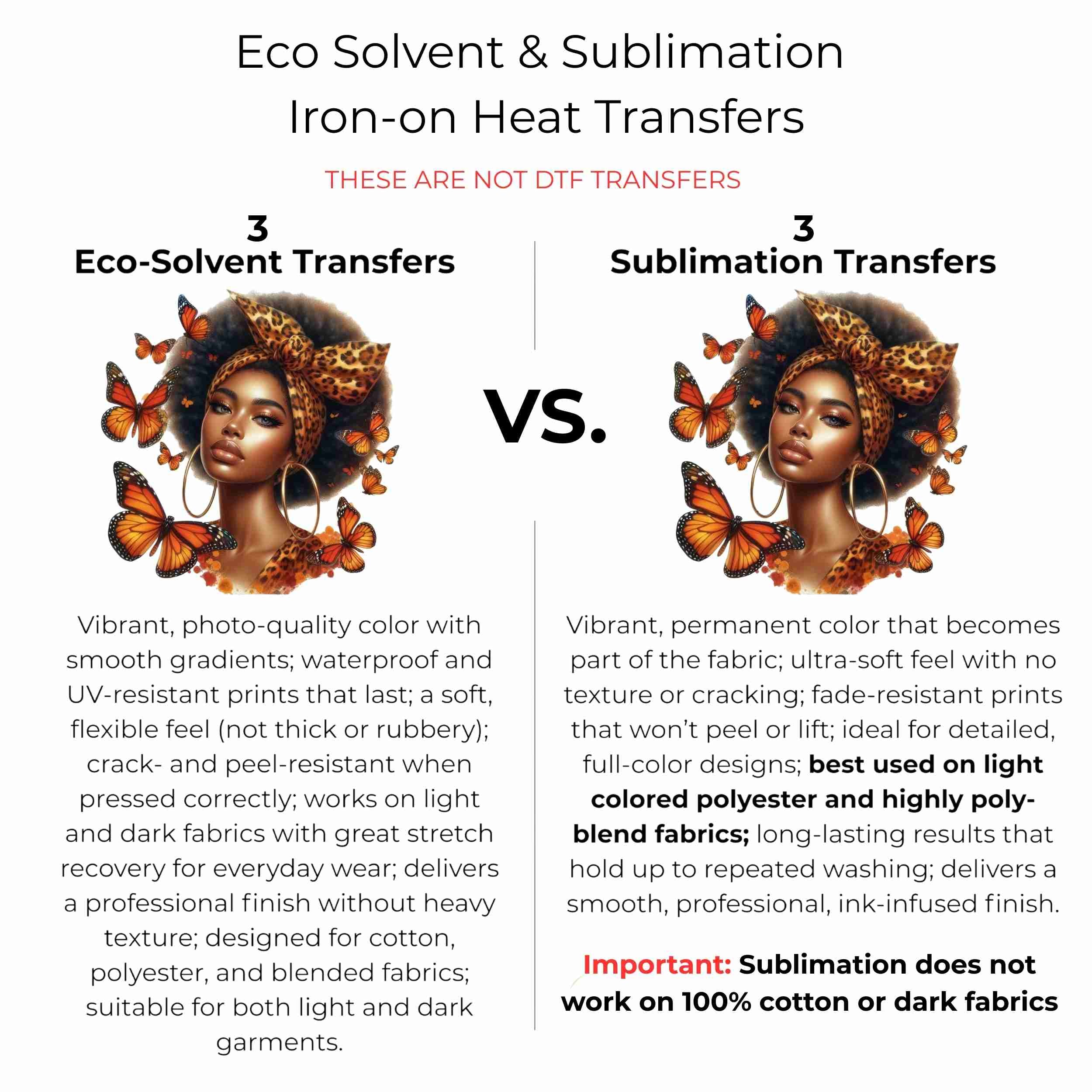 Monarch Queen Beauty 6-Pack DIY Bundle – 3 Eco-Solvent Iron-On Heat Transfers + 3 Sublimation Iron-On Heat Transfers, Ready-to-Press. Bonus: 4 Matching 2-Inch Stickers