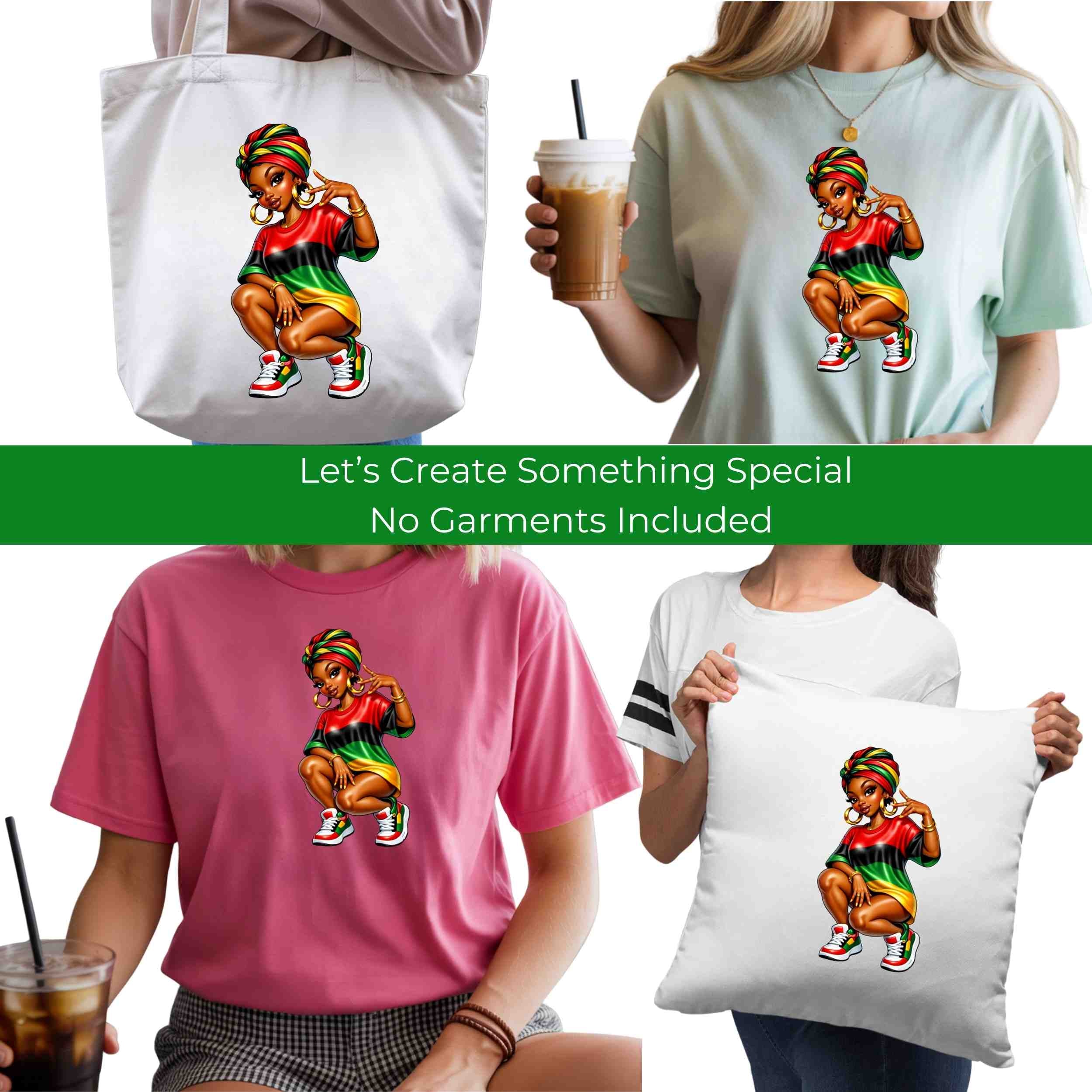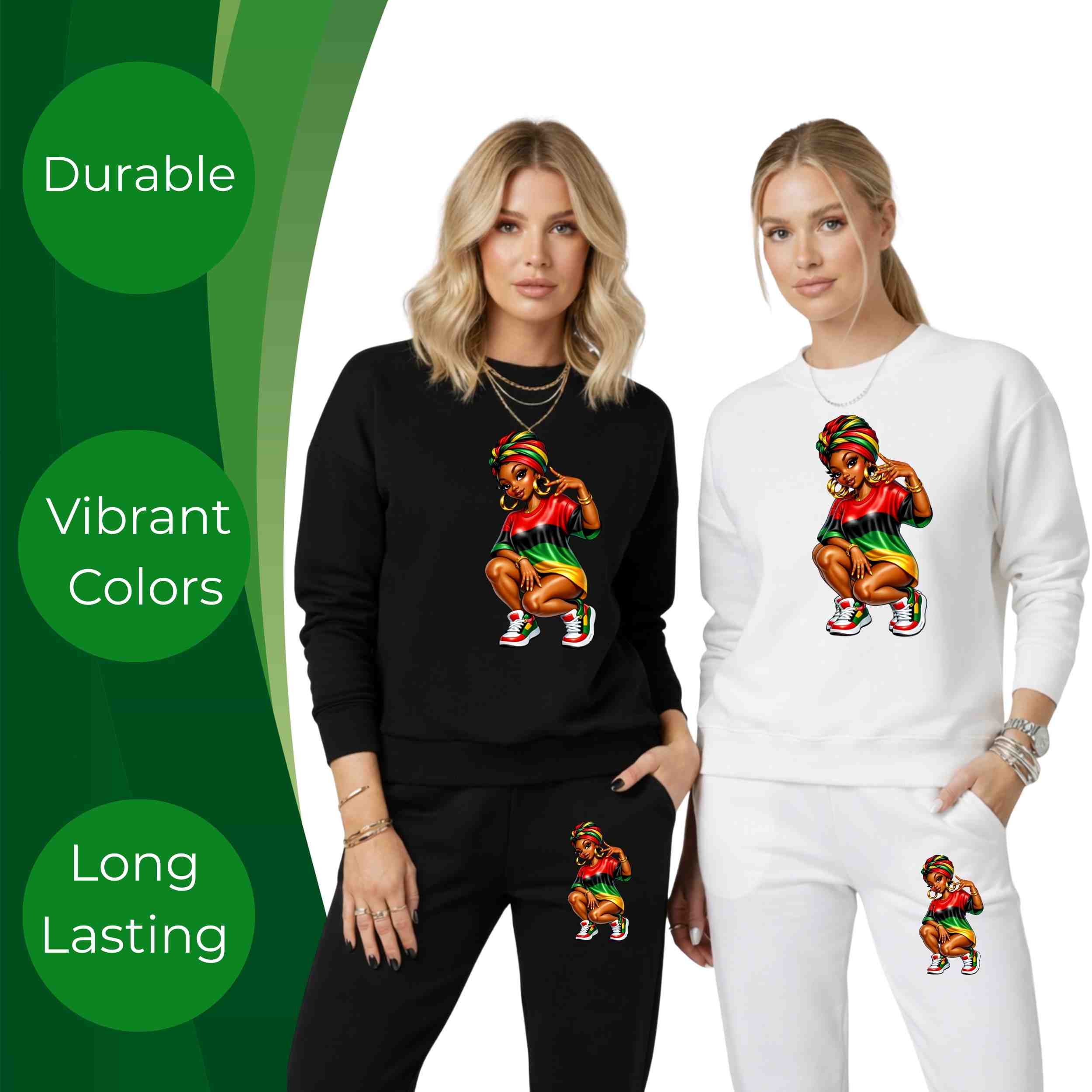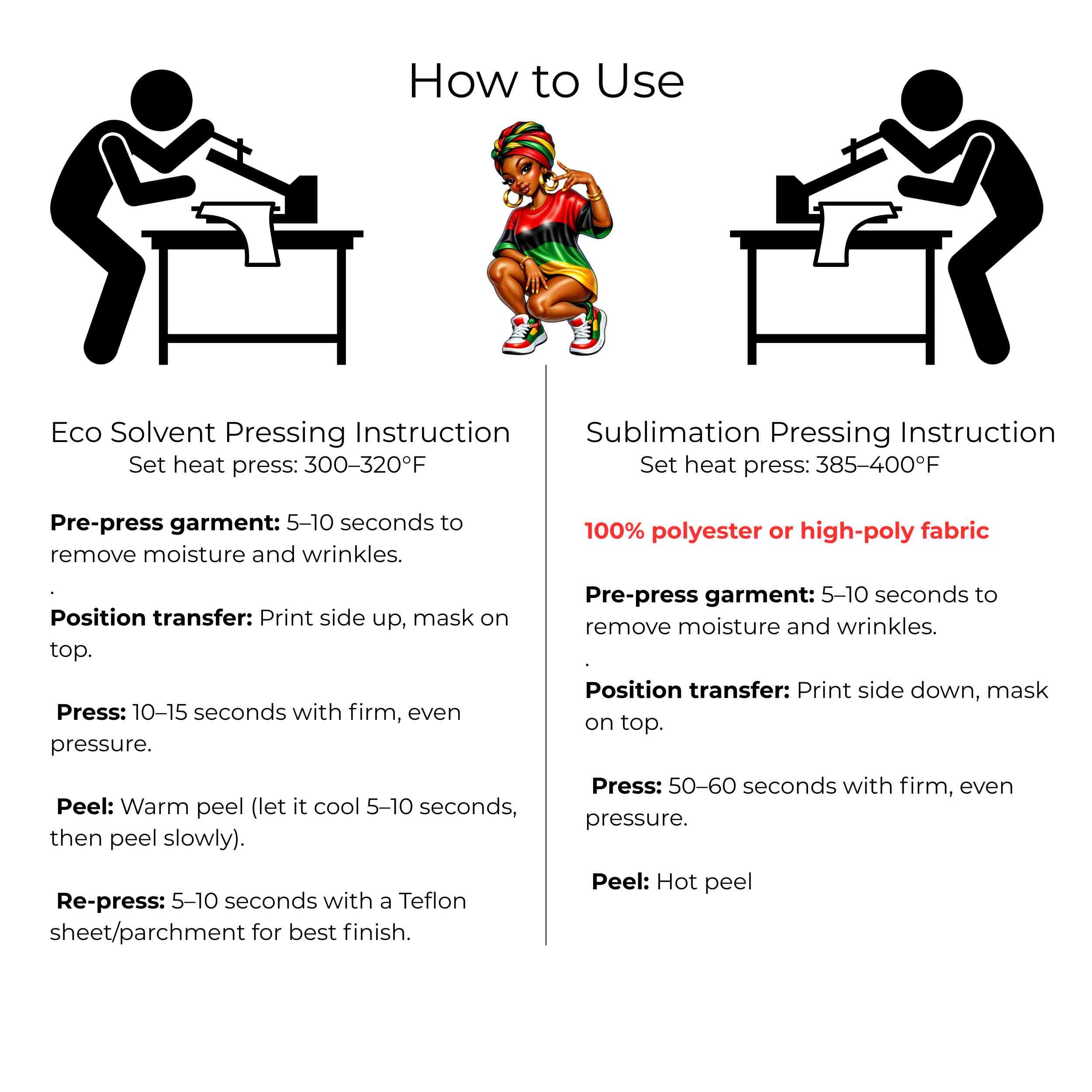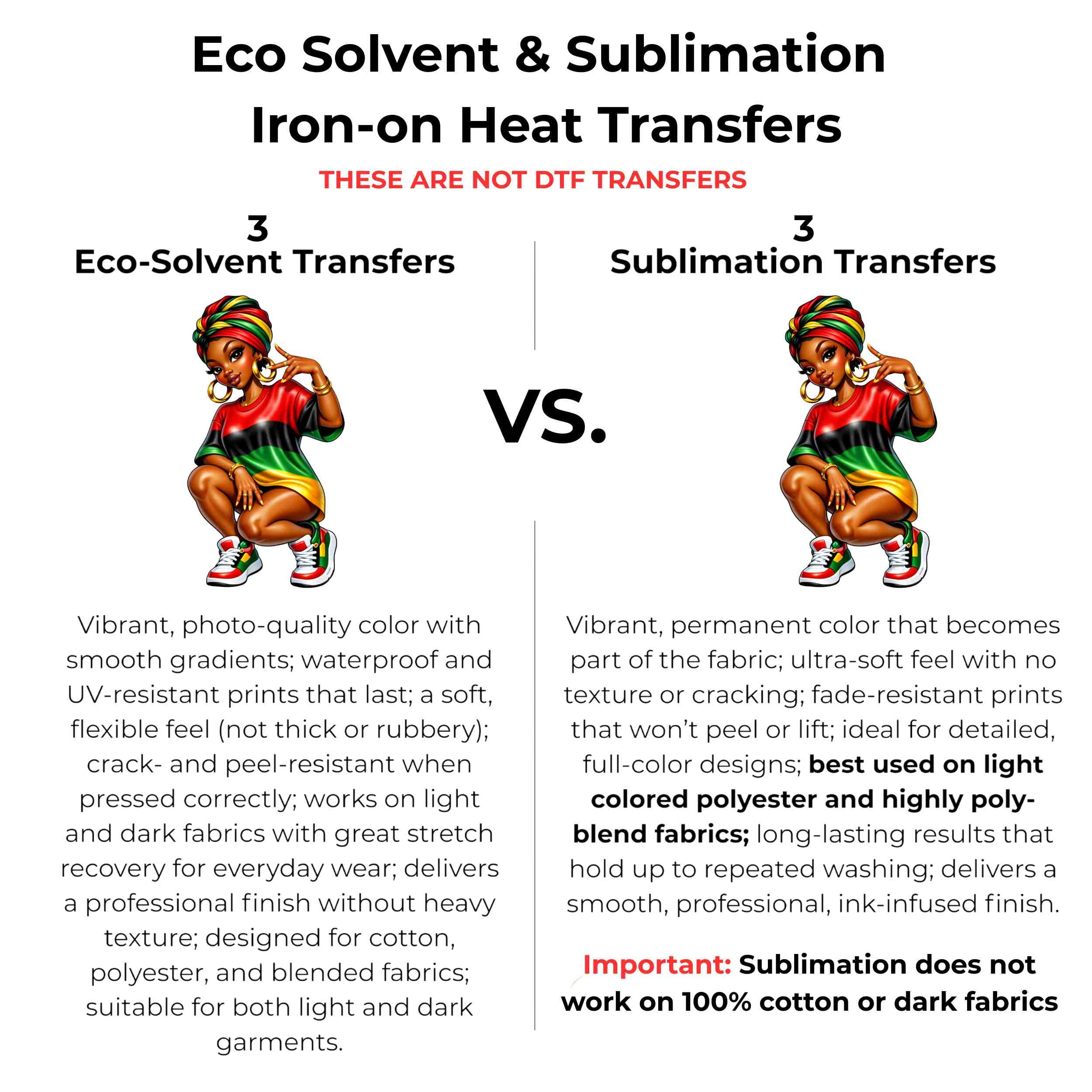 Pan-African Power Cutie 6-Pack Crafter’s & DIY Bundle – 3 Eco-Solvent Iron-On Heat Transfers + 3 Sublimation Iron-On Heat Transfers, Ready to Press. Bonus: 4 Matching 2-Inch Stickers