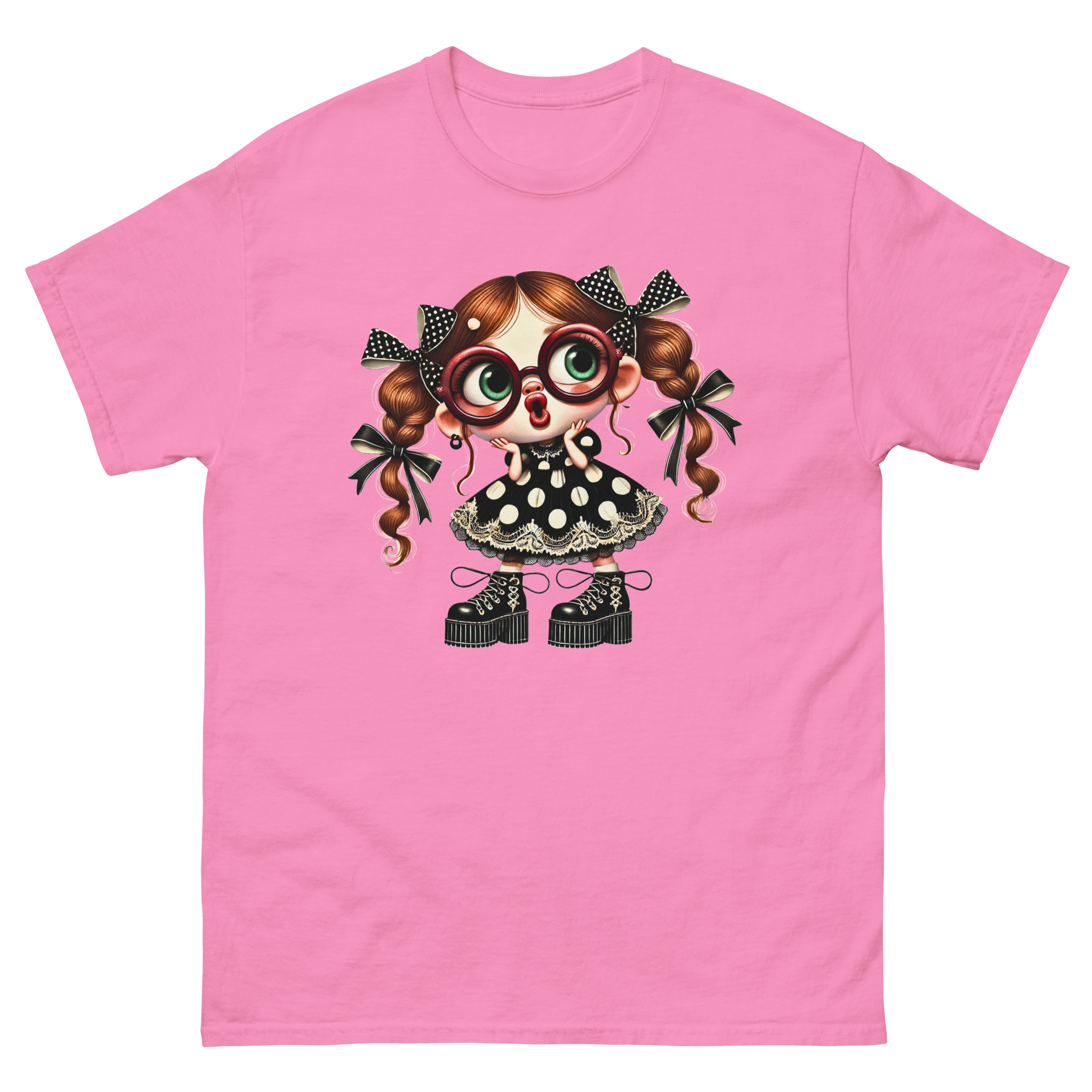 Polka Dot Girl with Red Glasses Unisex Classic Tee – Cute Retro Art