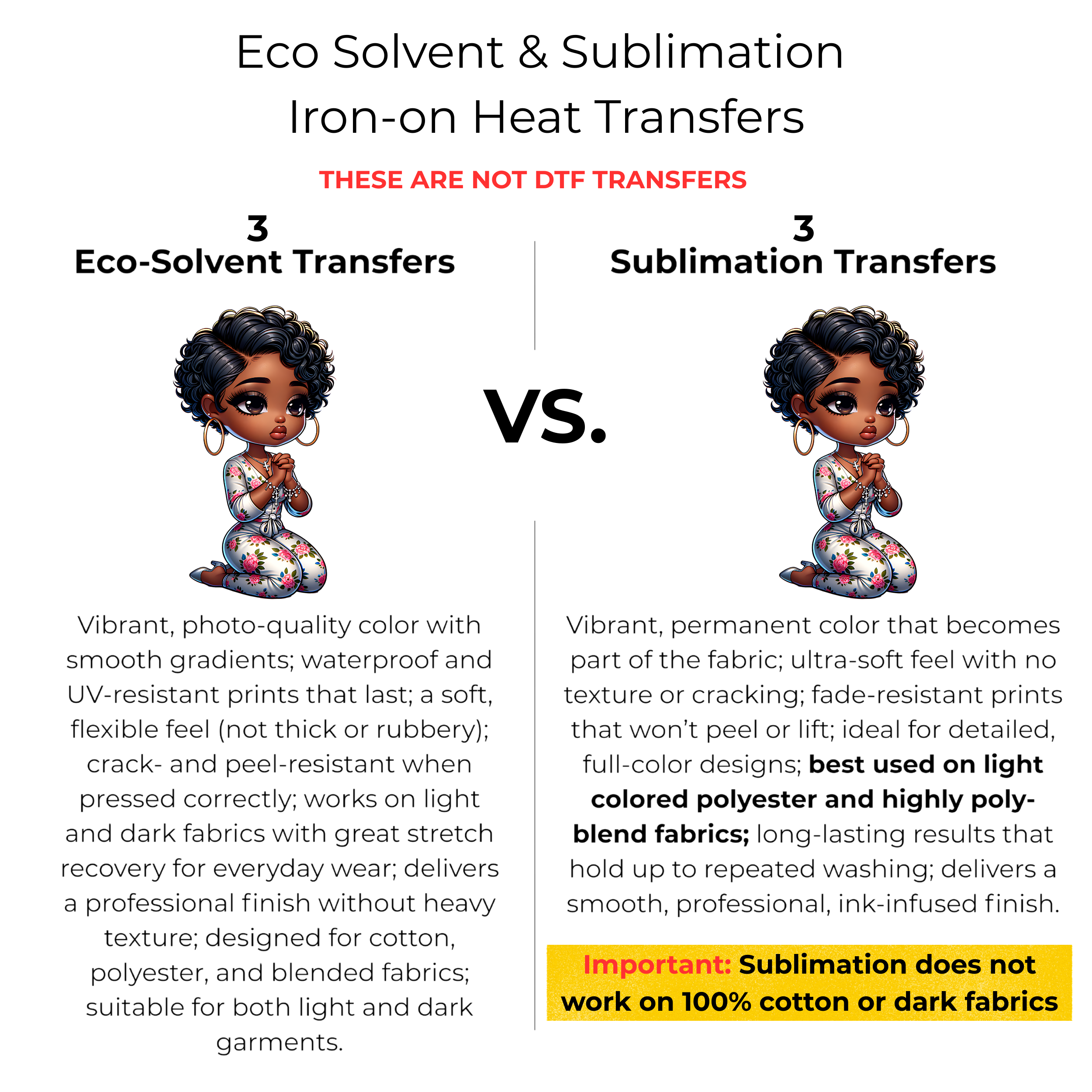 • 3 Eco-Solvent Iron-On Heat Transfers