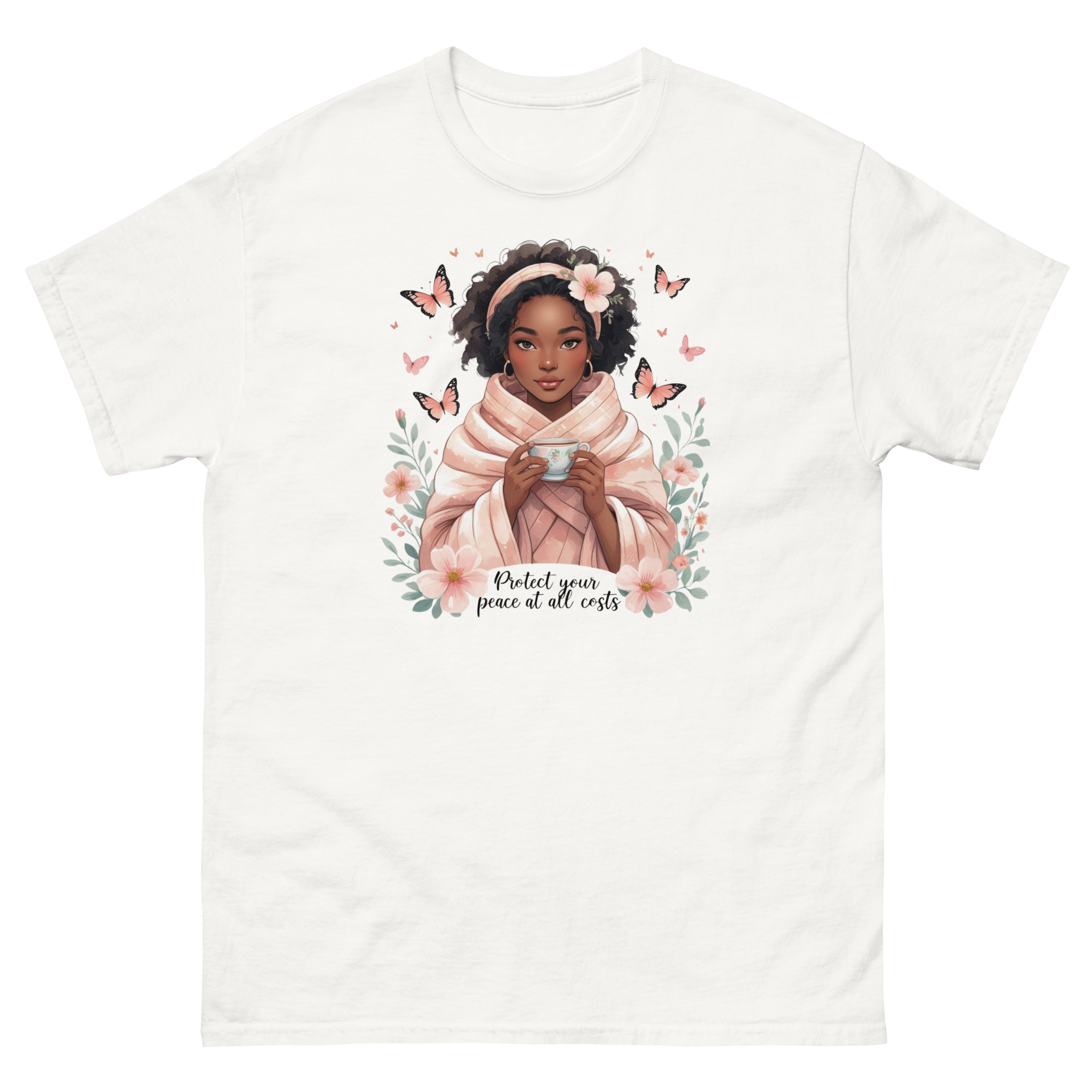 Protect Your Peace Tee – Floral Afro Soft Aesthetic Design #1