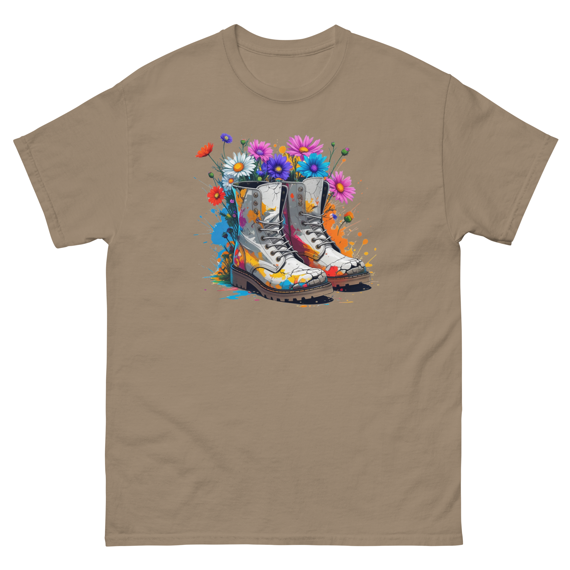Lace up your bold side with this Rainbow Combat Boots Tee, where splattered color meets flower-powered rebellion. Perfect for music lovers, creatives, and anyone who walks their own path, this design captures both edge and bloom — all in one statement tee.