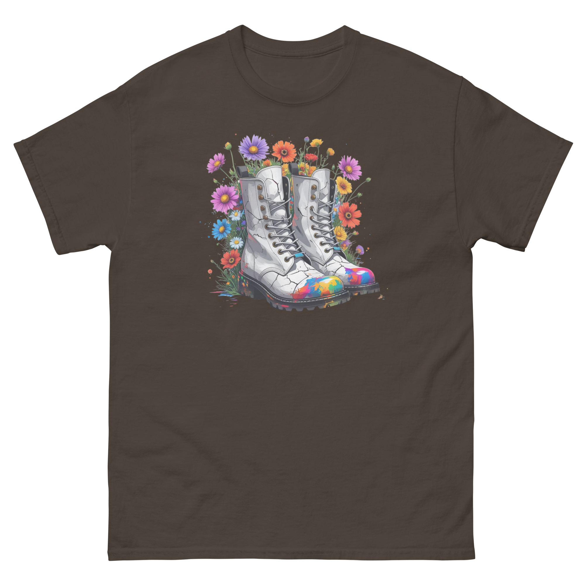 Lace up your bold side with this Rainbow Combat Boots Tee, where splattered color meets flower-powered rebellion. Perfect for music lovers, creatives, and anyone who walks their own path, this design captures both edge and bloom — all in one statement tee.