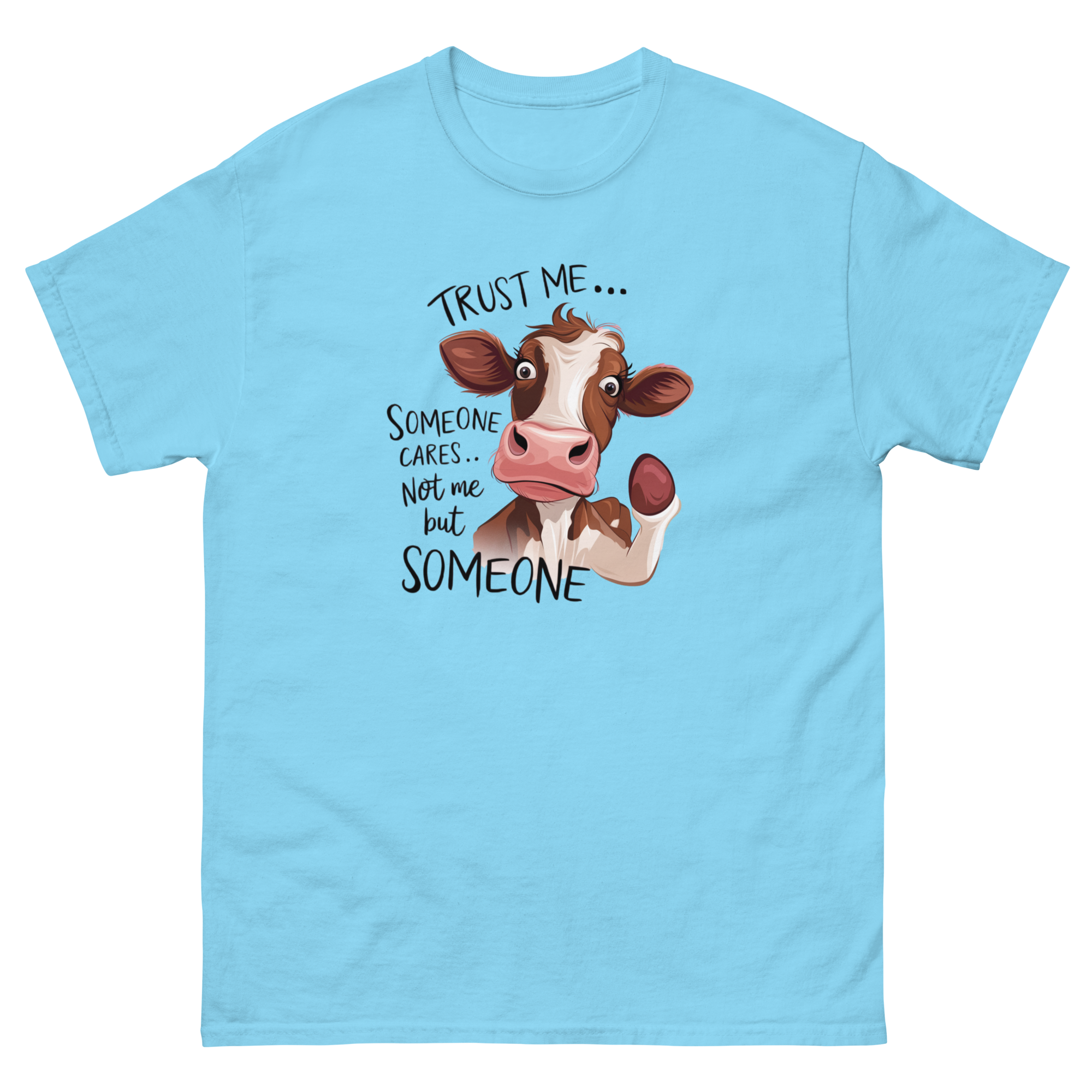 Serve sass with a side of sarcasm. This Sarcastic Cow Tee features a hilarious wide-eyed cow holding up a hoof like it's had enough—paired with the quote: “Trust me… Someone cares. Not me, but someone.” It's perfect for those who live unapologetically and aren't afraid to wear their blunt personality on their chest.