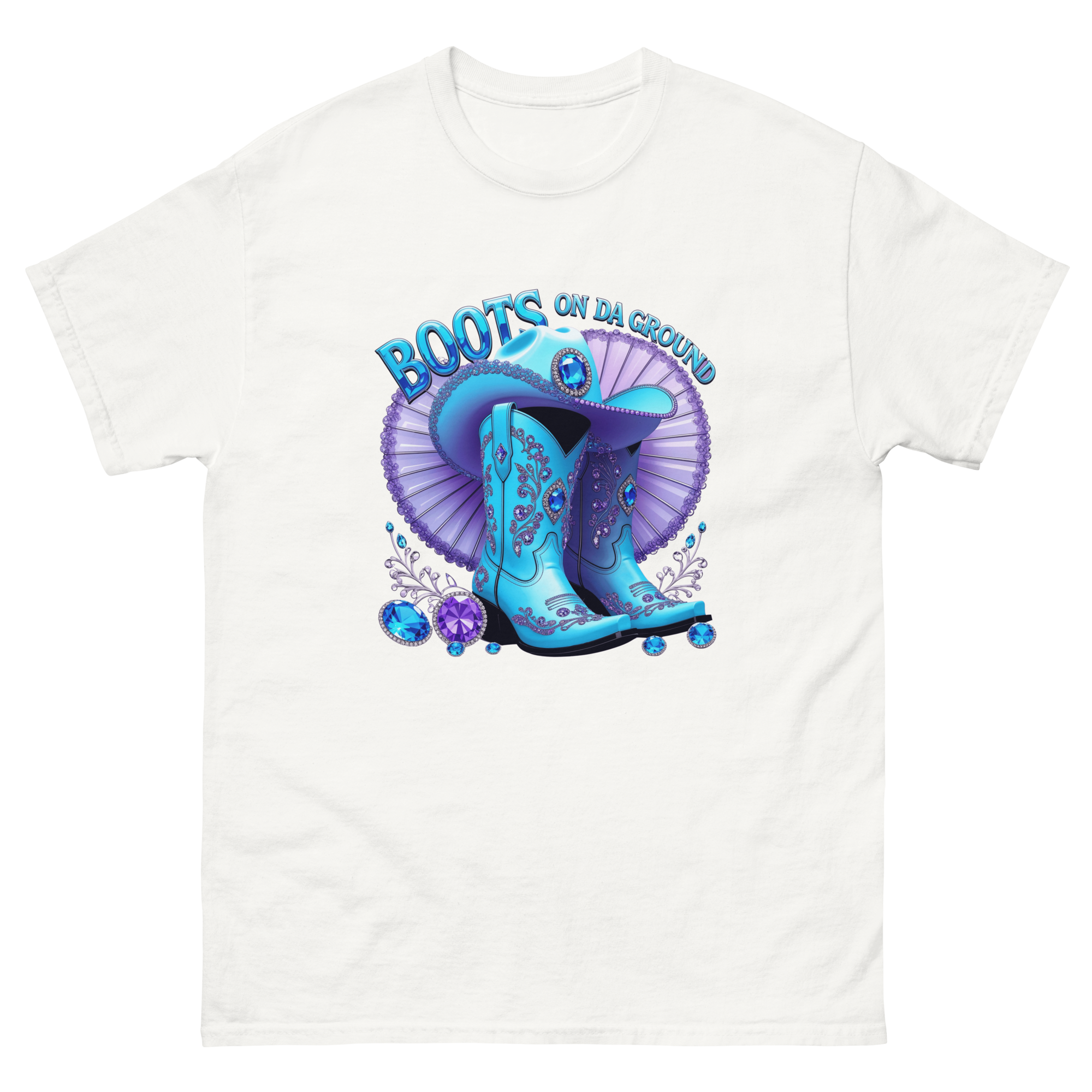 This Light Blue “Boots on Da Ground” tee is made for the cowgirl who keeps it cool but commands attention. Blending soft hues with statement-making sparkle, it's perfect for everything from rodeo days to downtown strolls. It’s chill in tone—but bold in style.