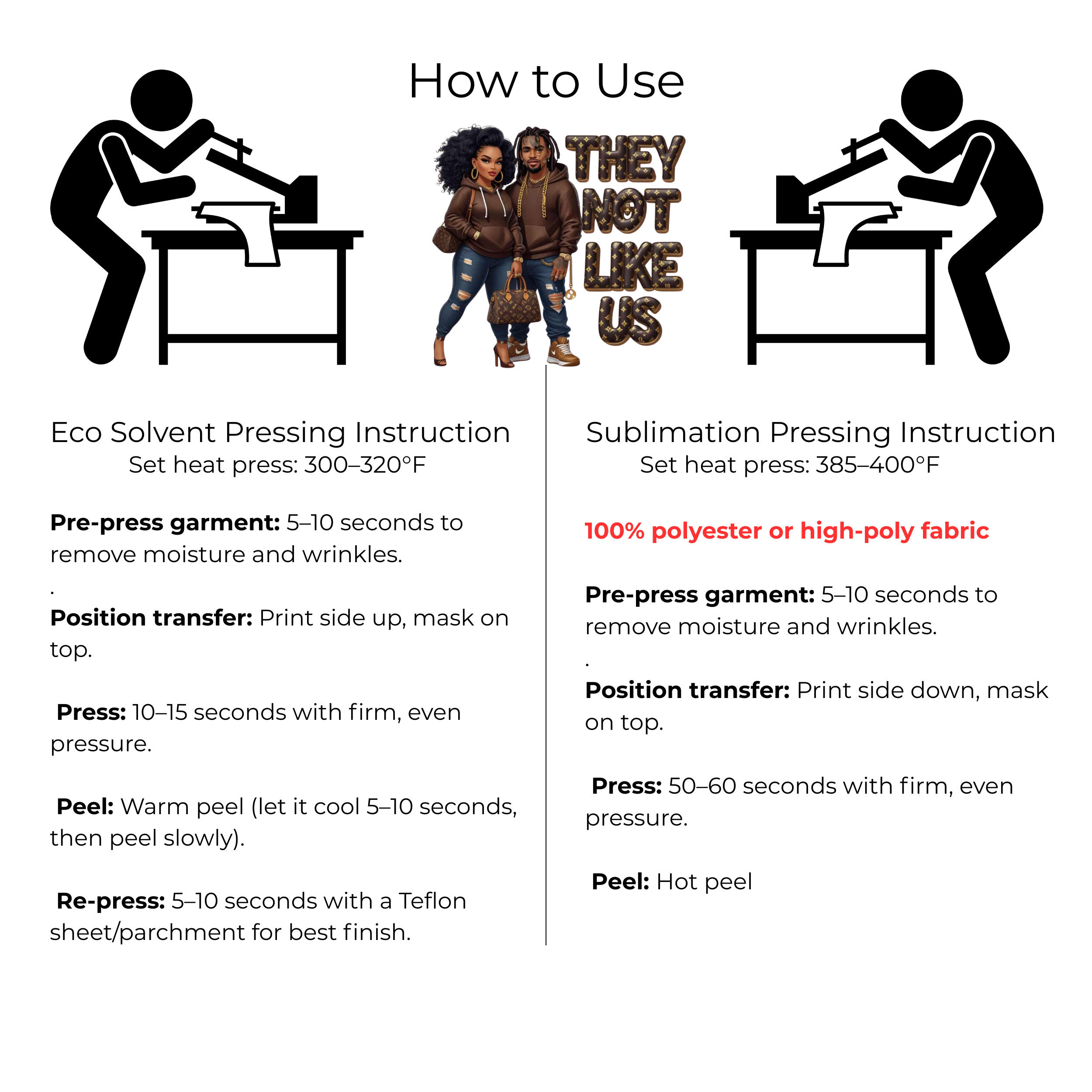 They Not Like Us 3 Eco-Solvent Iron-On Heat Transfers + 3 Sublimation Iron-On Heat Transfers, Ready to Press. Bonus: 4 Matching 2-Inch Stickers