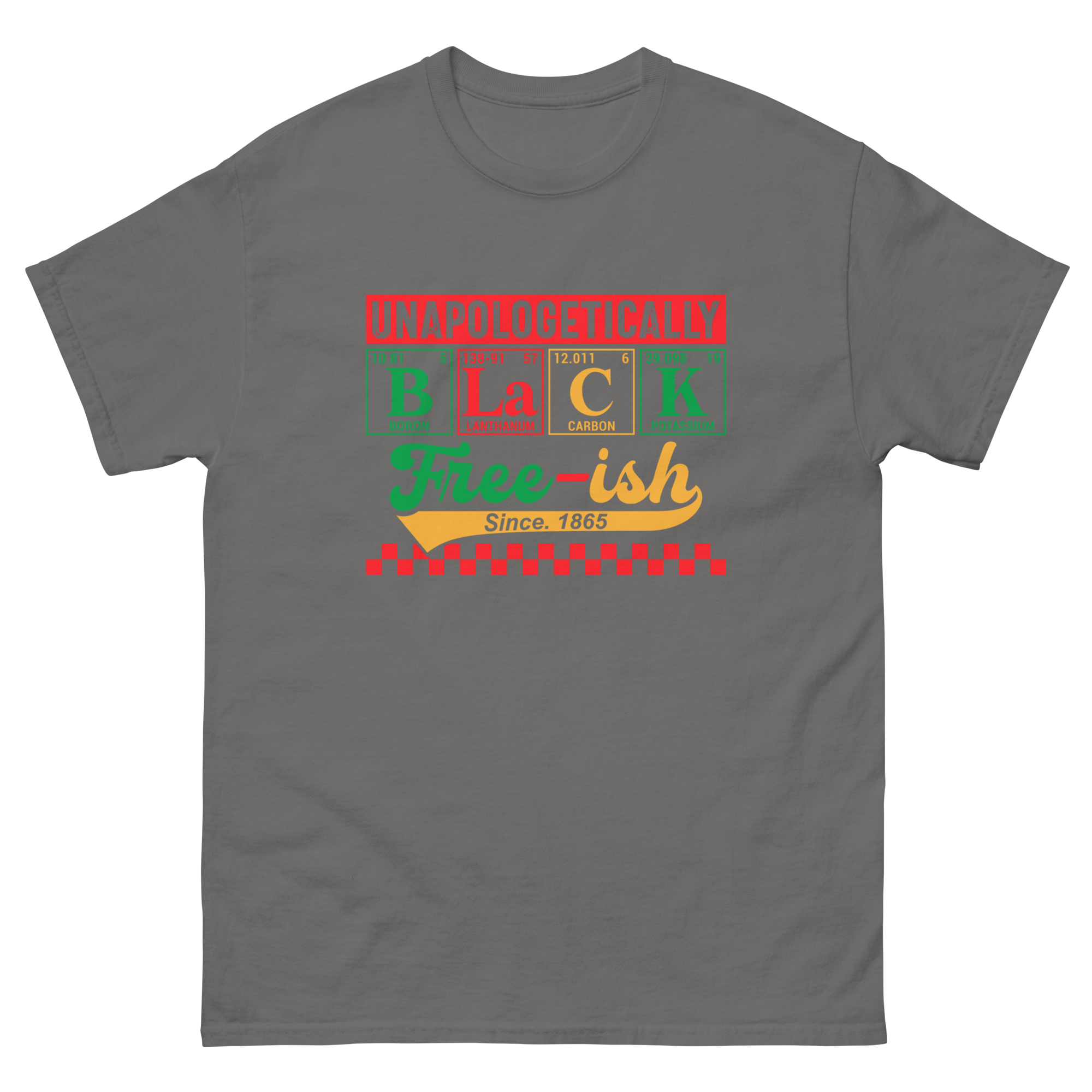 Celebrate freedom and identity with power and pride. This unapologetically bold tee uses colorful periodic elements to spell out “Black” and honors the historical message: “Free-ish Since 1865.” A vibrant cultural statement designed to uplift, educate, and stand out in any room.