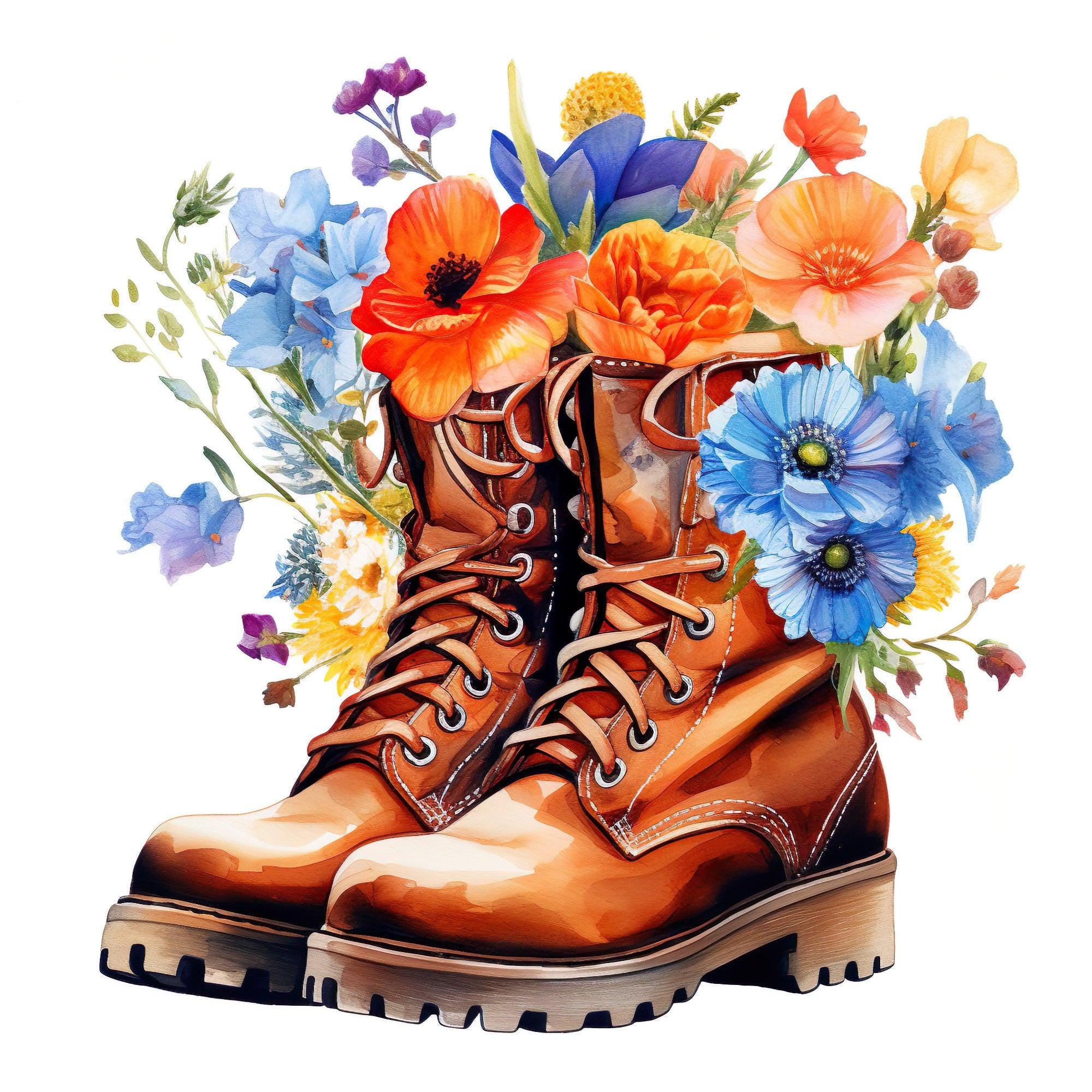 Watercolor Combat Boots with Flowers DTF Heat Transfers #6