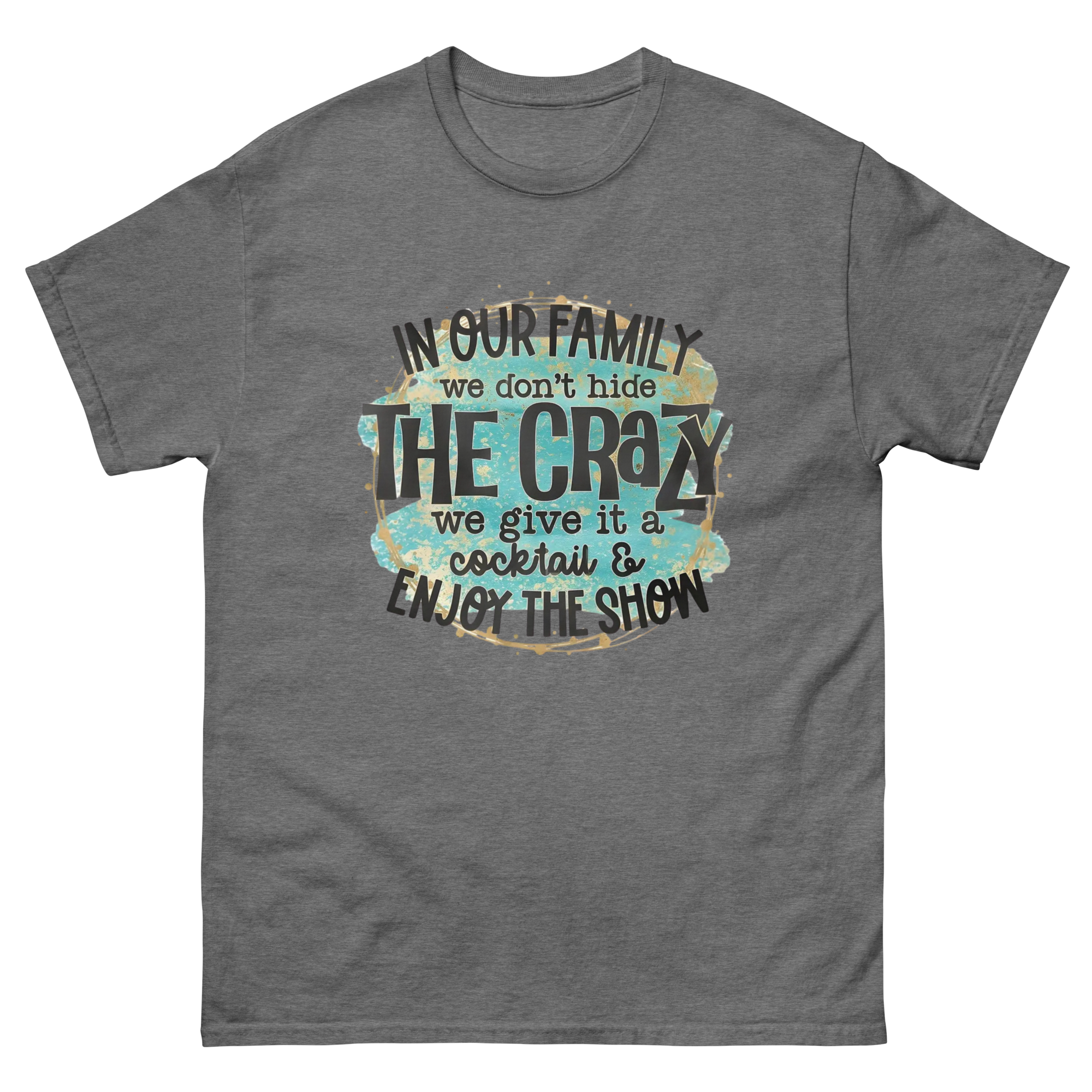 Designed with bold fonts, playful gold specks, and a splash of attitude—it’s the perfect shirt for family gatherings, casual days, or anytime you feel a little extra.