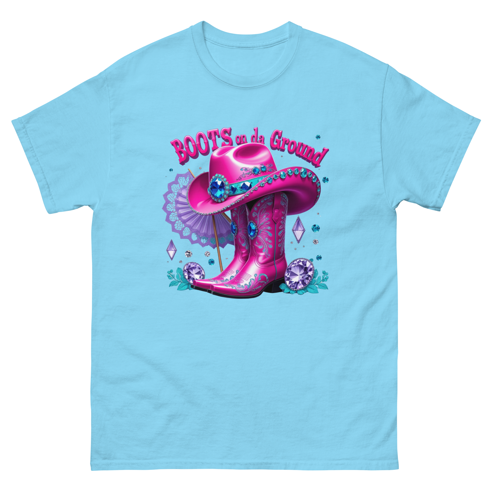 Saddle up in unapologetic pink and rhinestone shine—this Hot Pink Boots on Da Ground tee is built for the bold, the glam, and the girls who never go unnoticed. Designed to pop with color and attitude, it's perfect for slaying the rodeo, brunch with the crew, or just feelin’ yourself any day of the week.