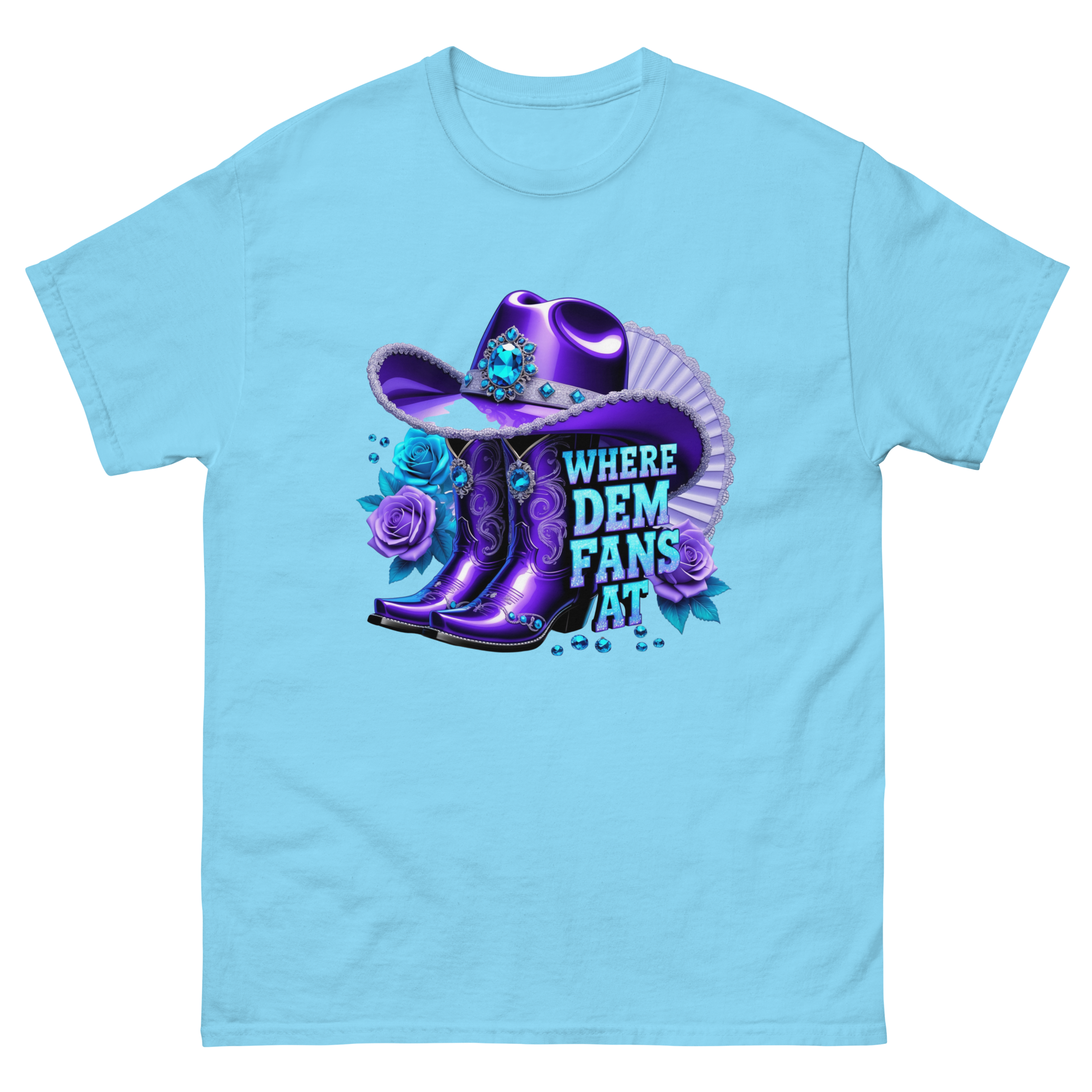 Where Dem Fans At Tee – Luxe Blue & Violet Fan Vibe