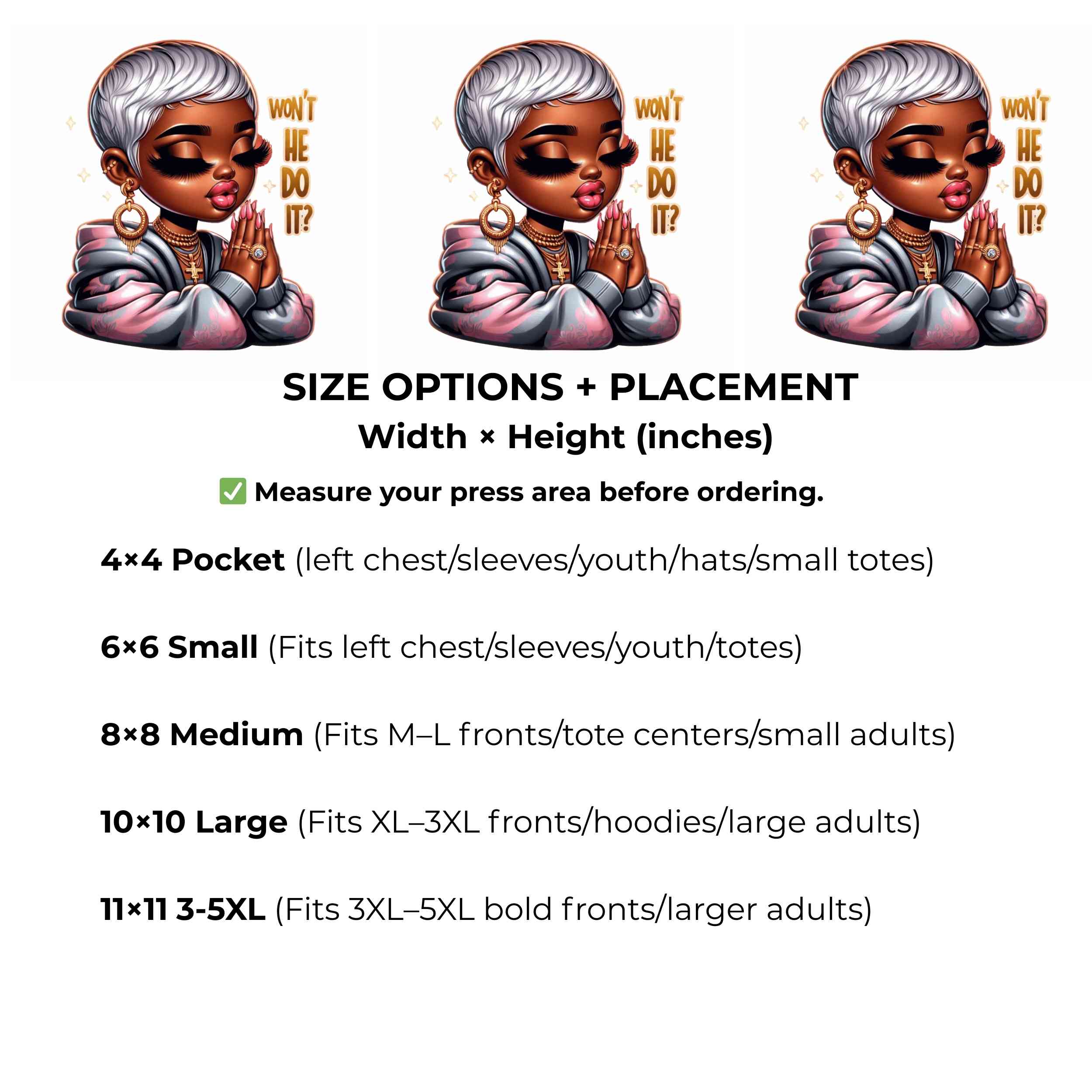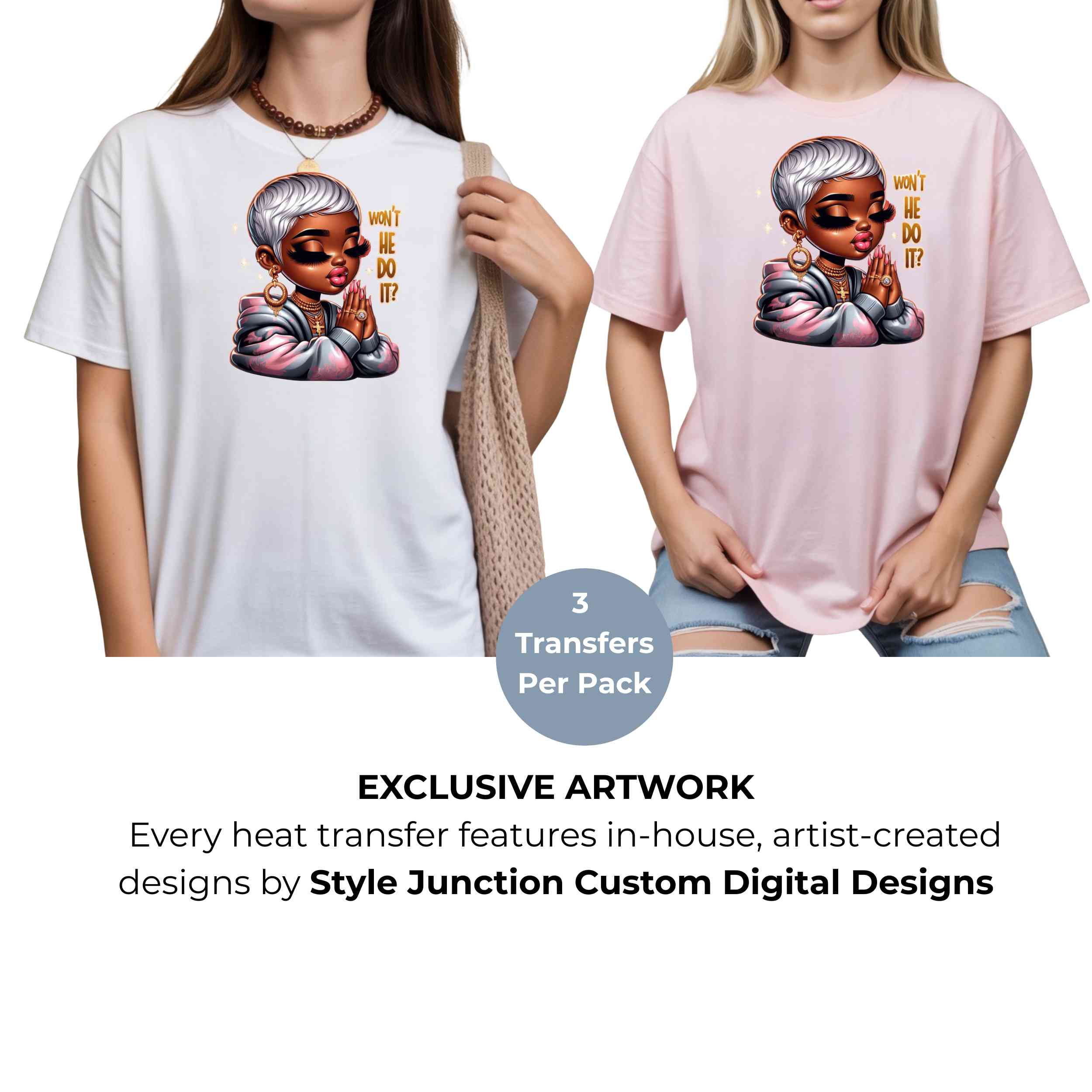 Won't He Do It? Heat Transfers 3-Pack, Ready to Press, Vibrant Long-Lasting Prints (Iron-On Transfers Only)
