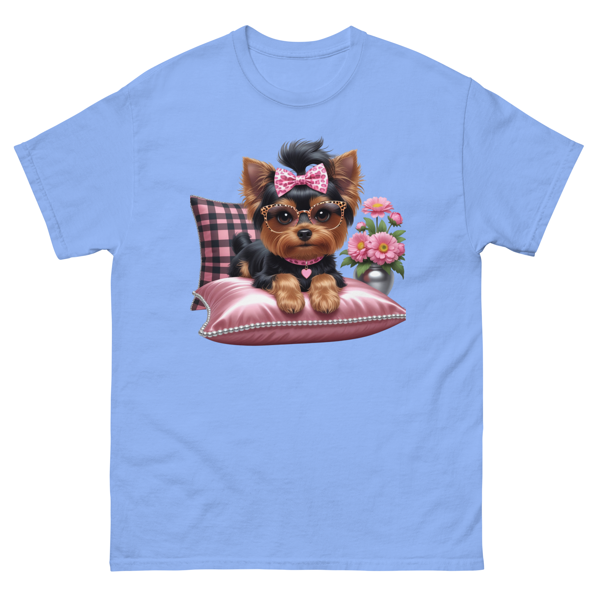 Brighten up your day with this irresistibly cute Yorkie Glam Tee, featuring a pink leopard bow, chic glasses, and all the personality of your favorite furry fashionista. Whether you’re into dogs, sparkle, or just playful statement pieces, this one’s got your vibe written all over it.